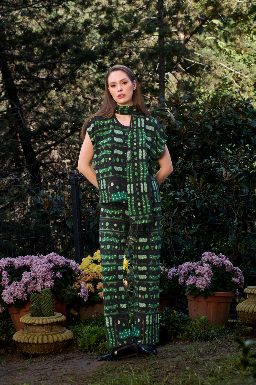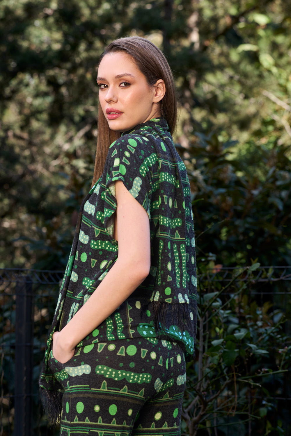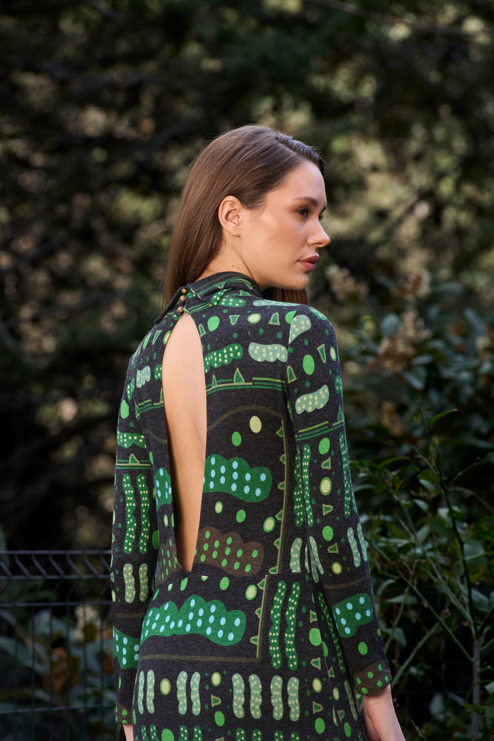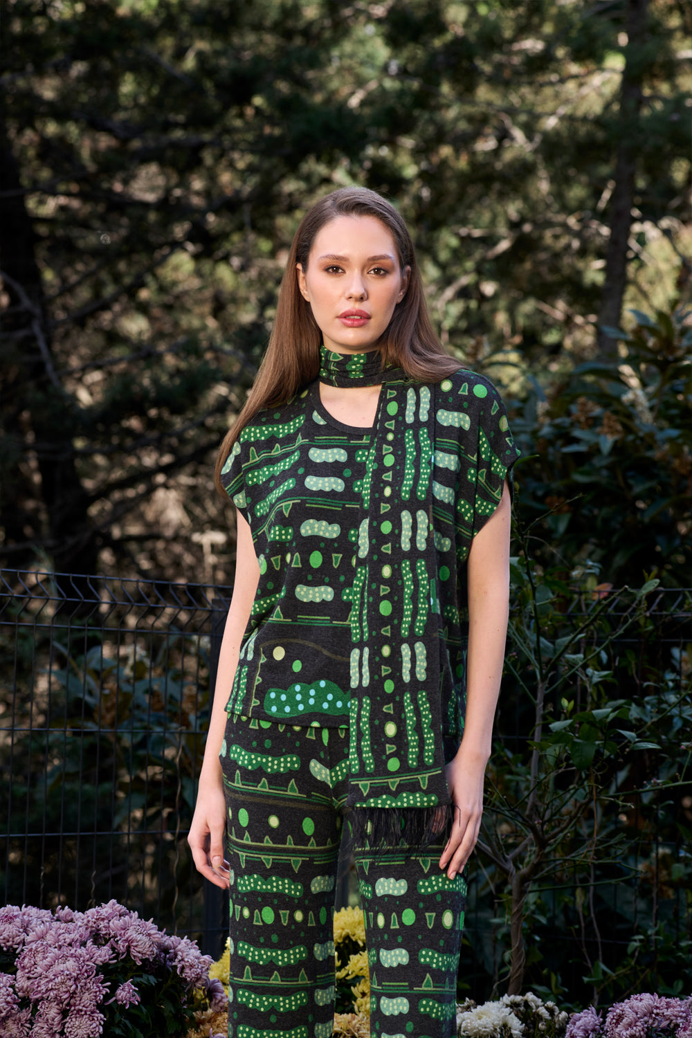 Siyah Balık Desenli Sırt Detaylı Bluz