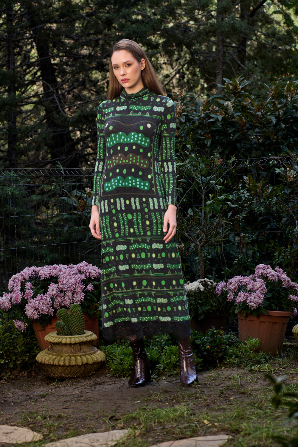 Çift Su Taşı Detaylı Siyah Uzun Kolsuz Elbise
