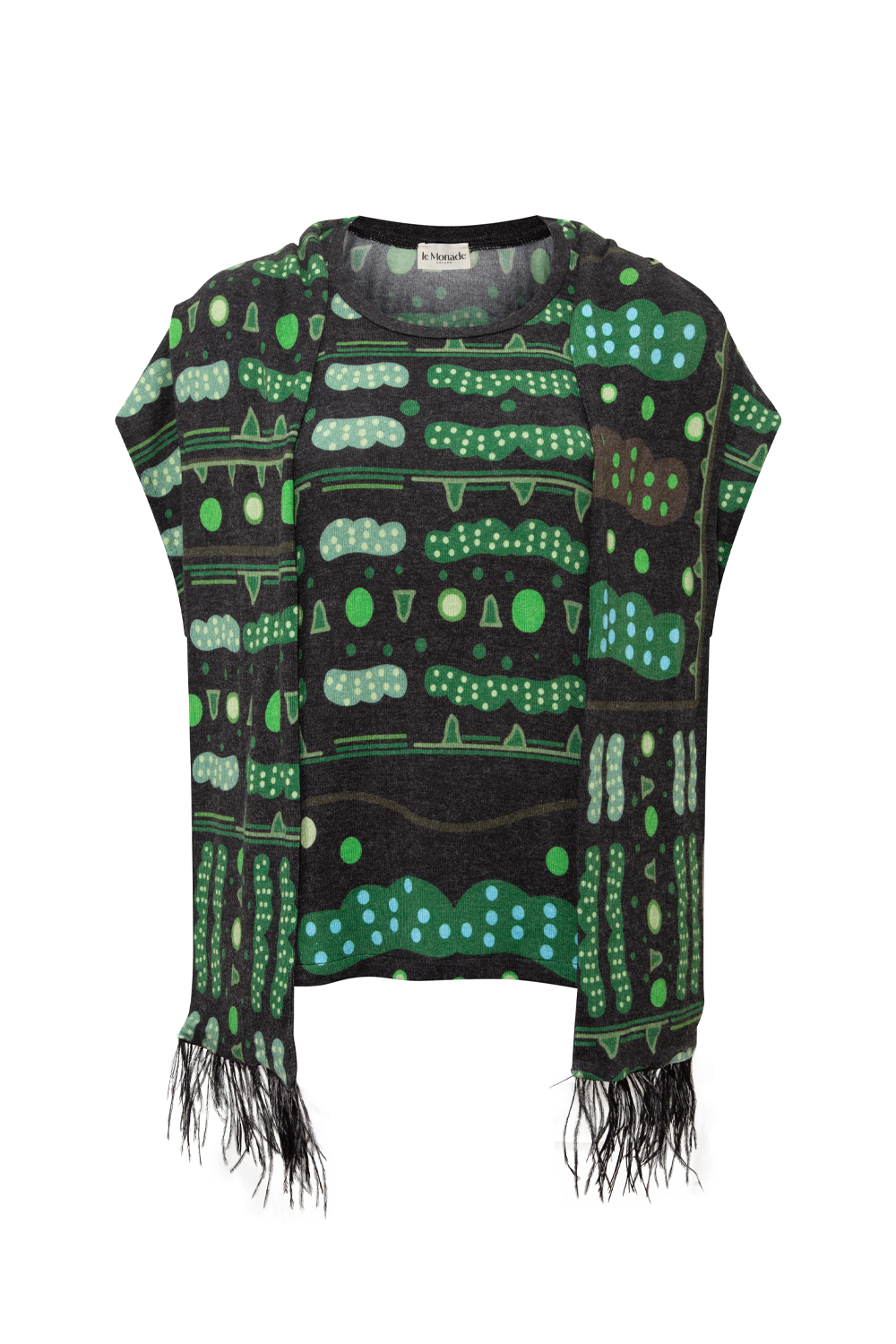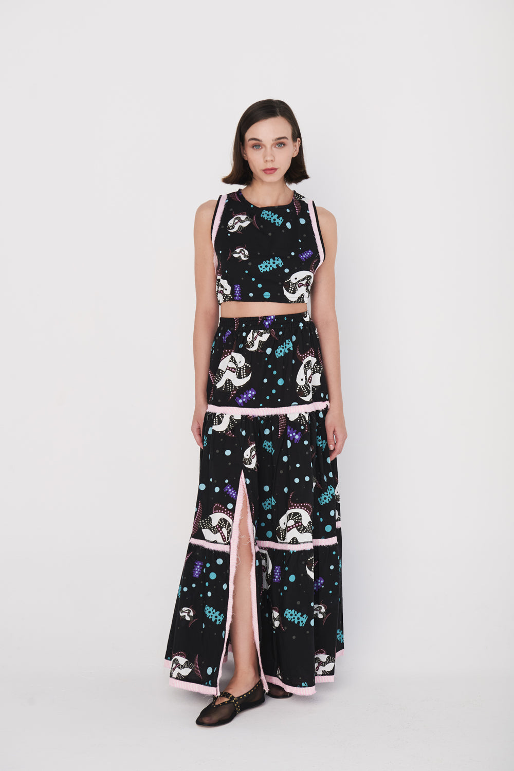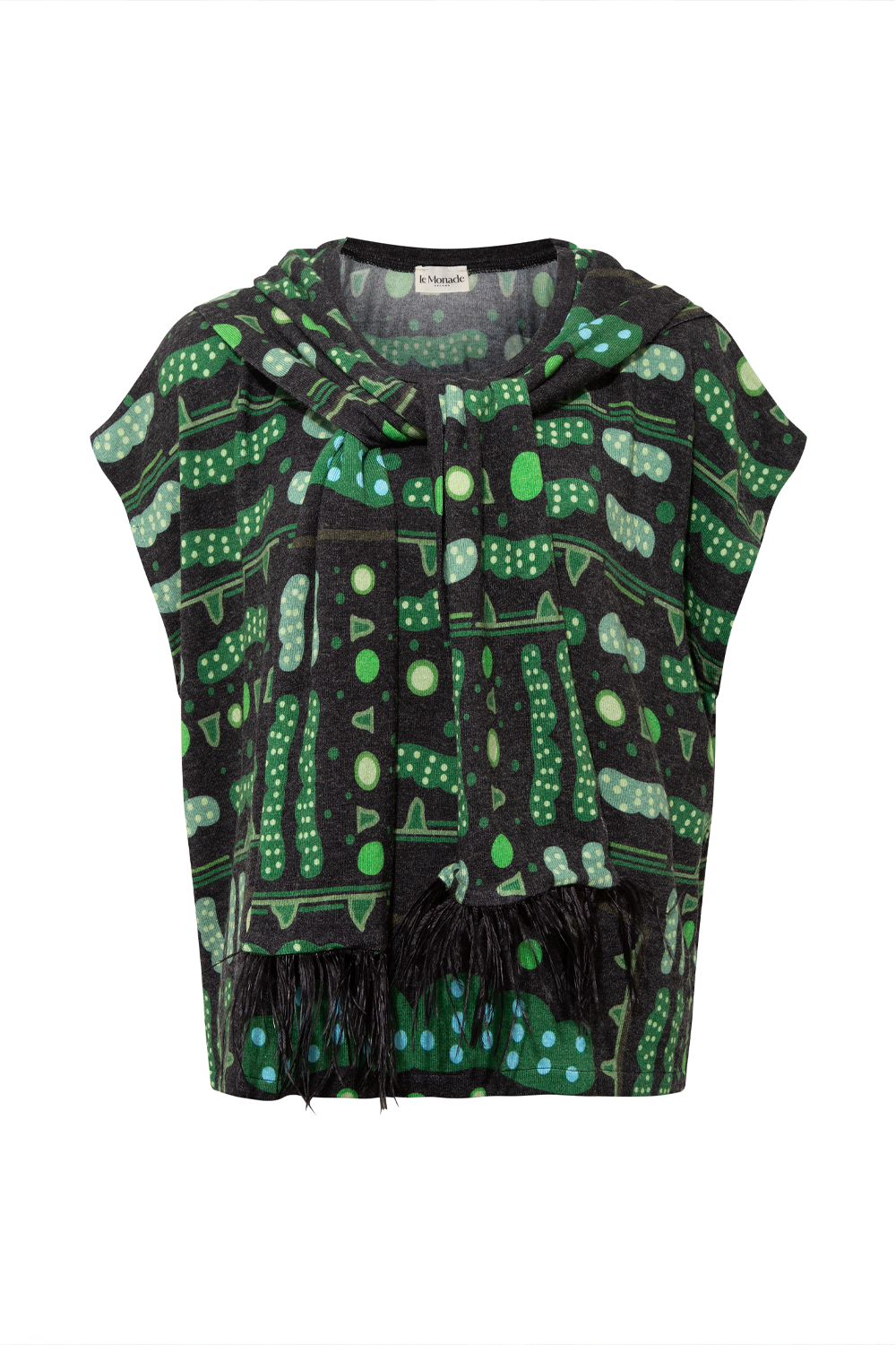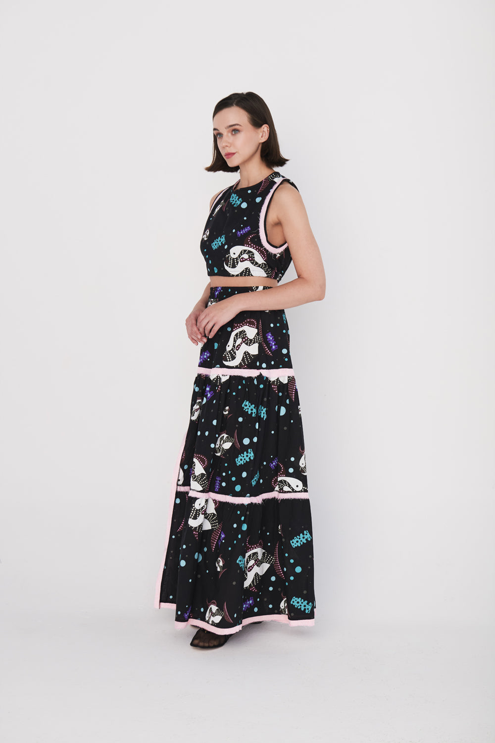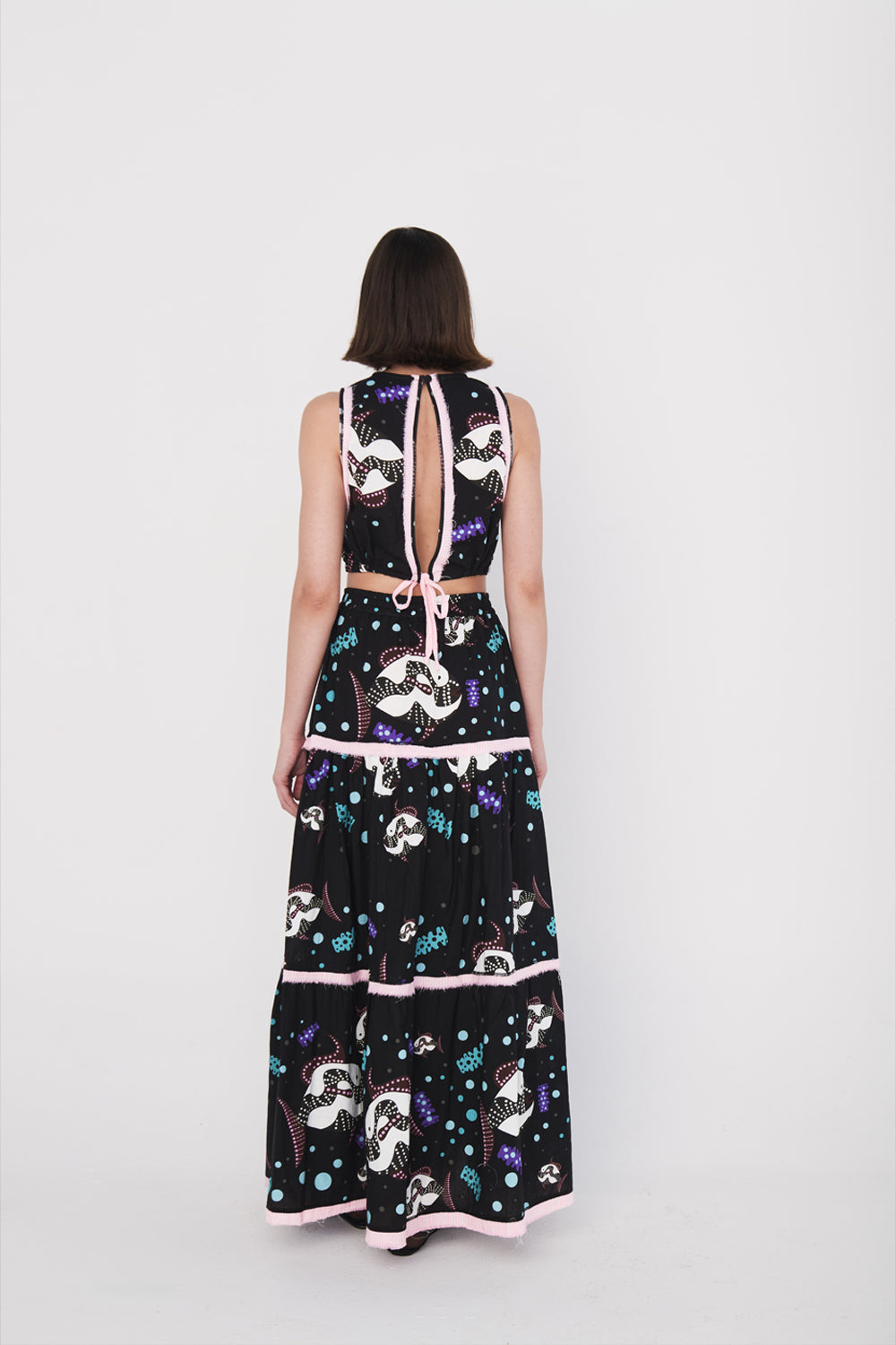 Siyah Balık Desenli Sırt Detaylı Bluz