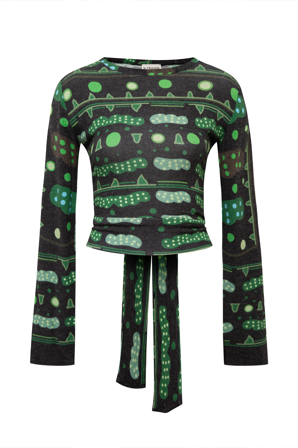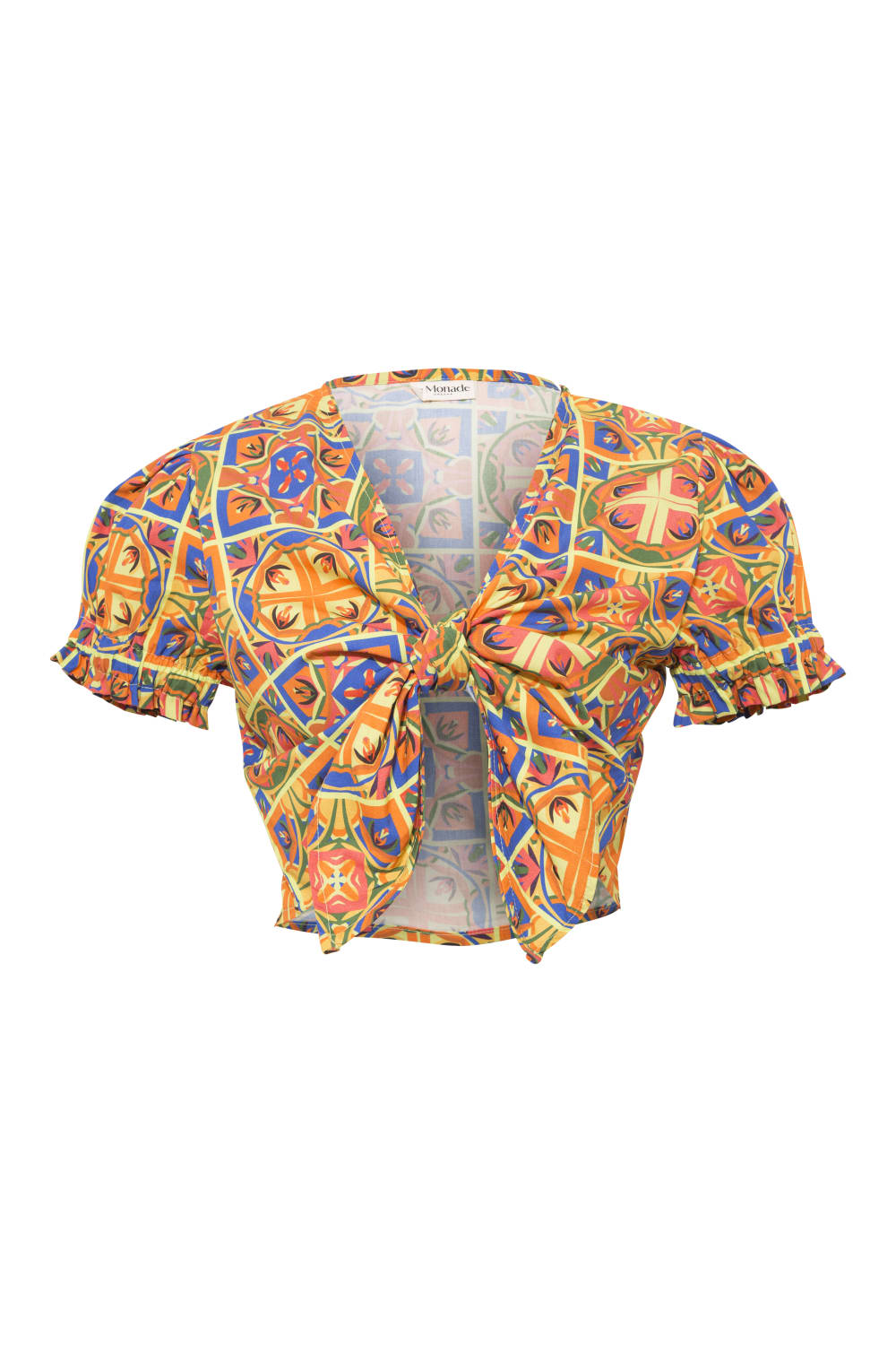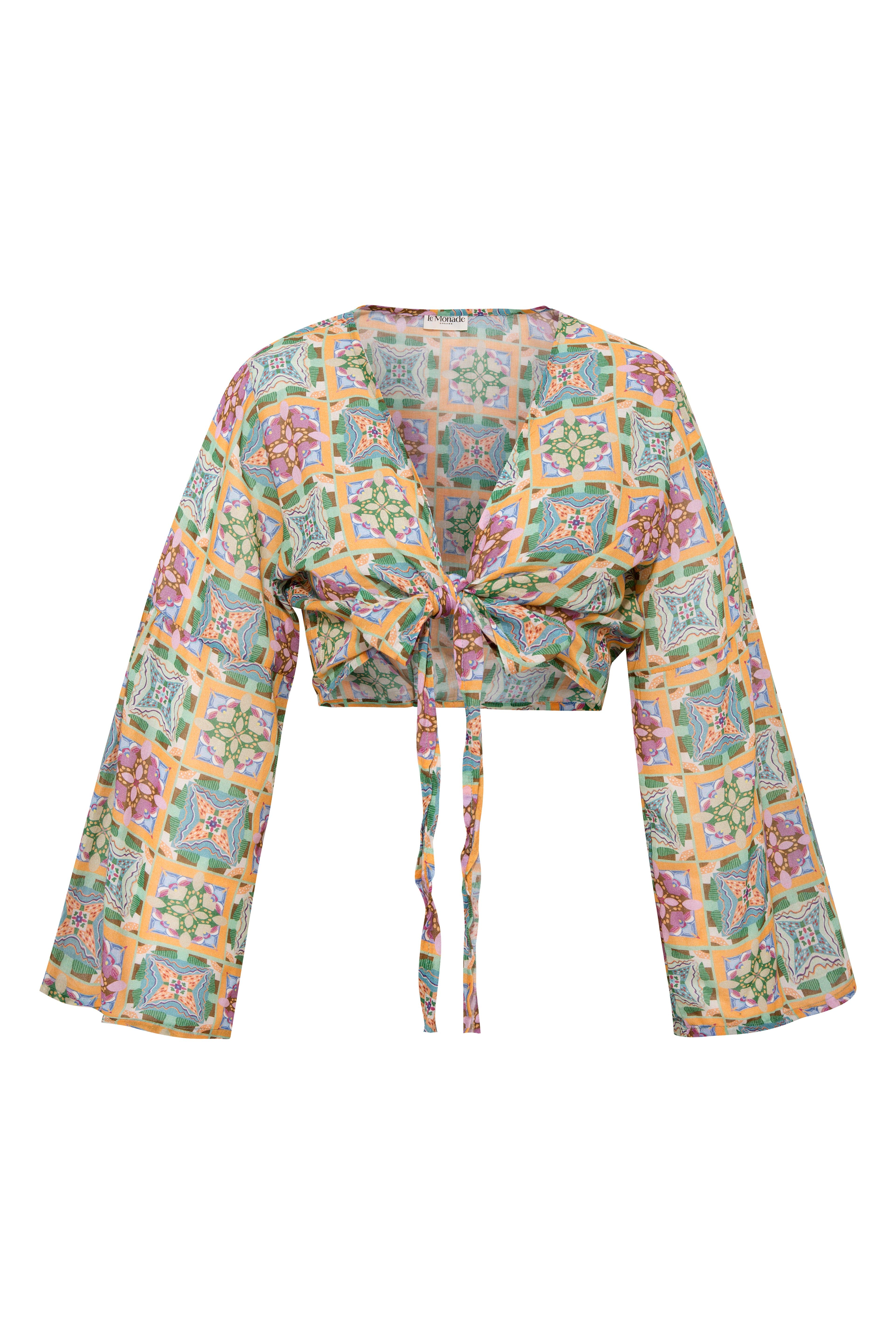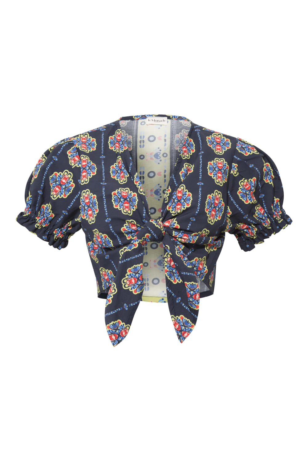 Girlfriend Önden Bağlamalı Geometrik Desenli Bluz