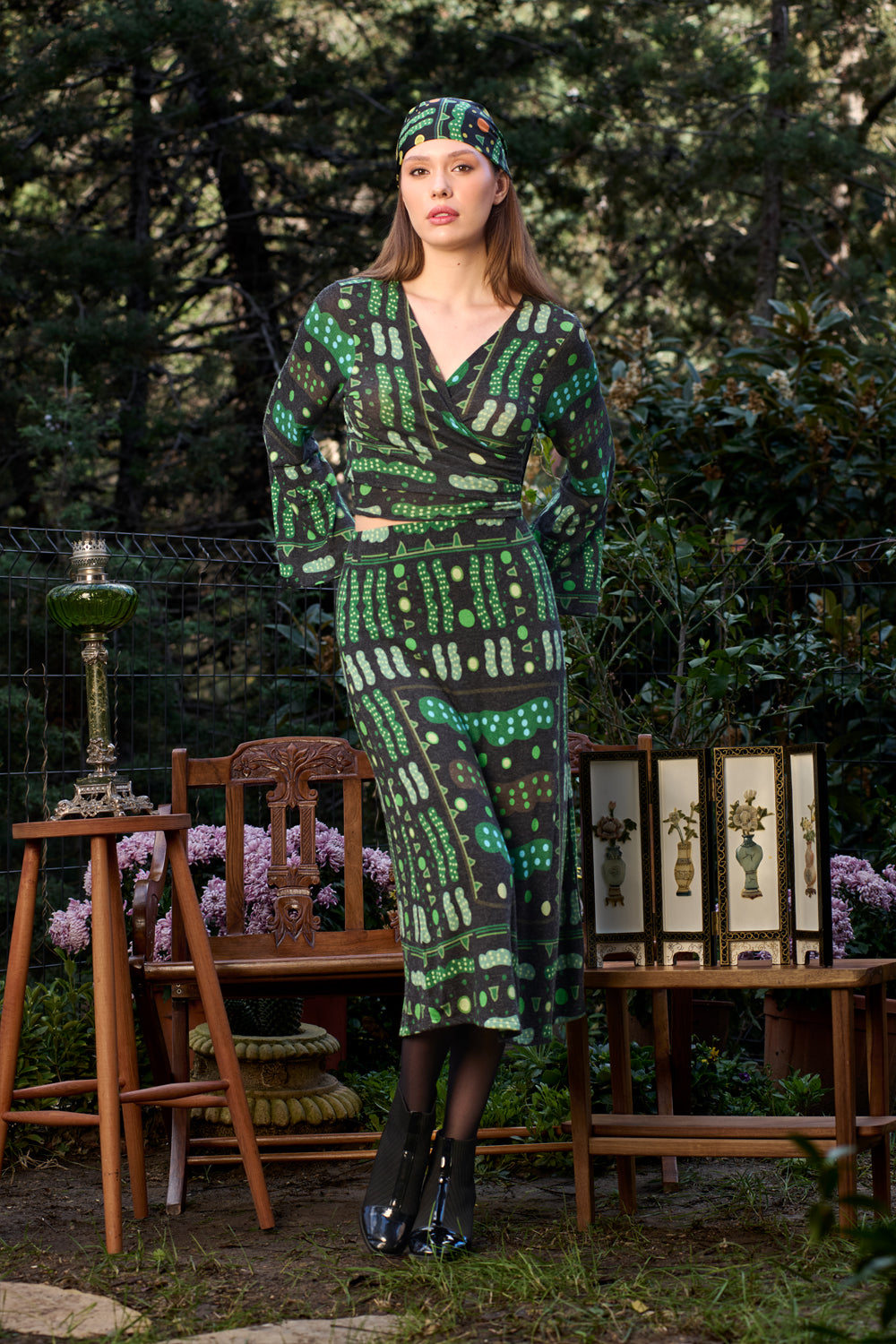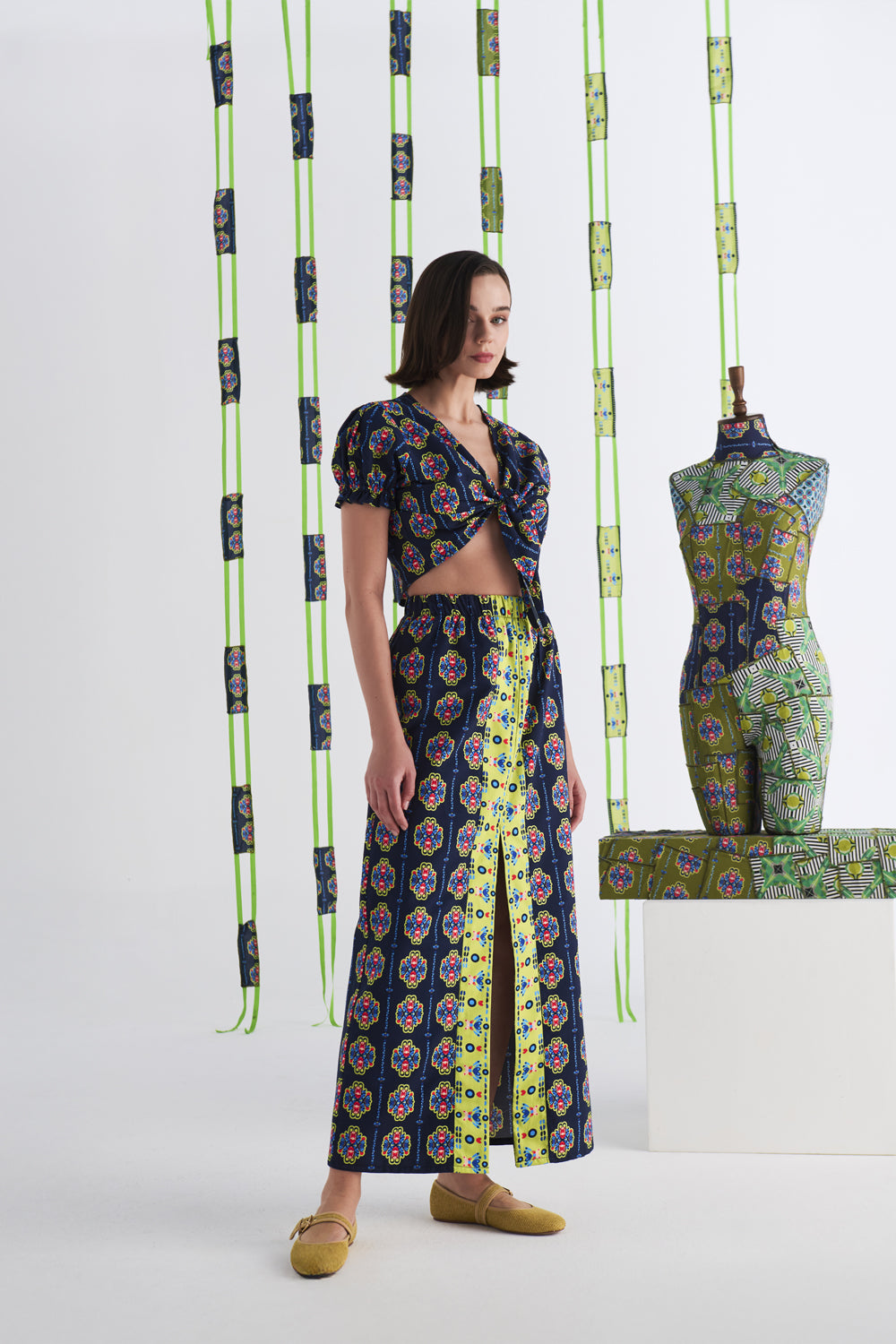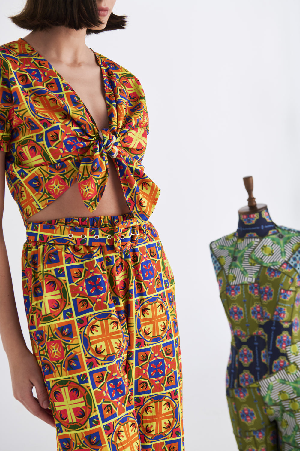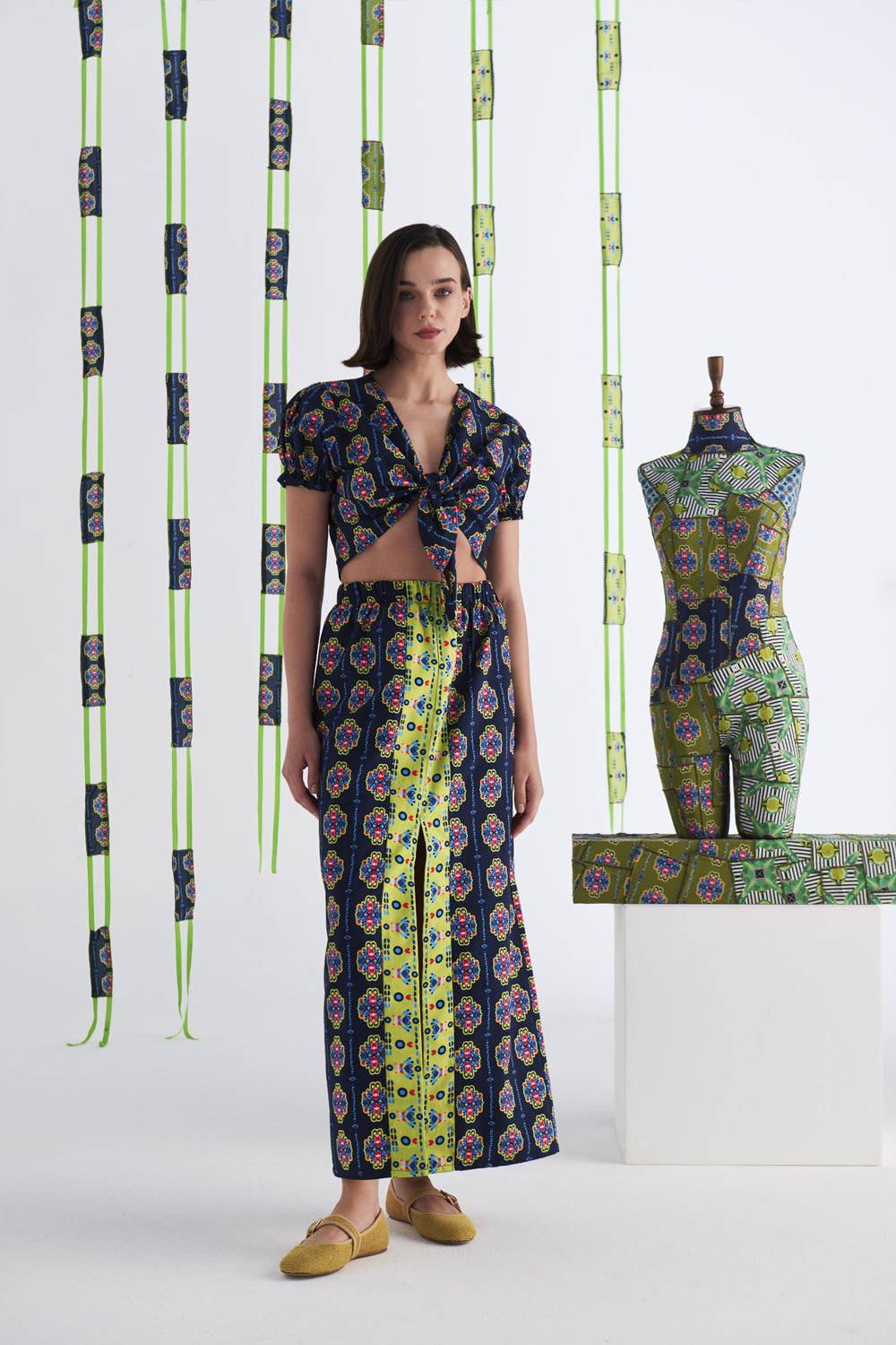 Girlfriend Önden Bağlamalı Geometrik Desenli Bluz