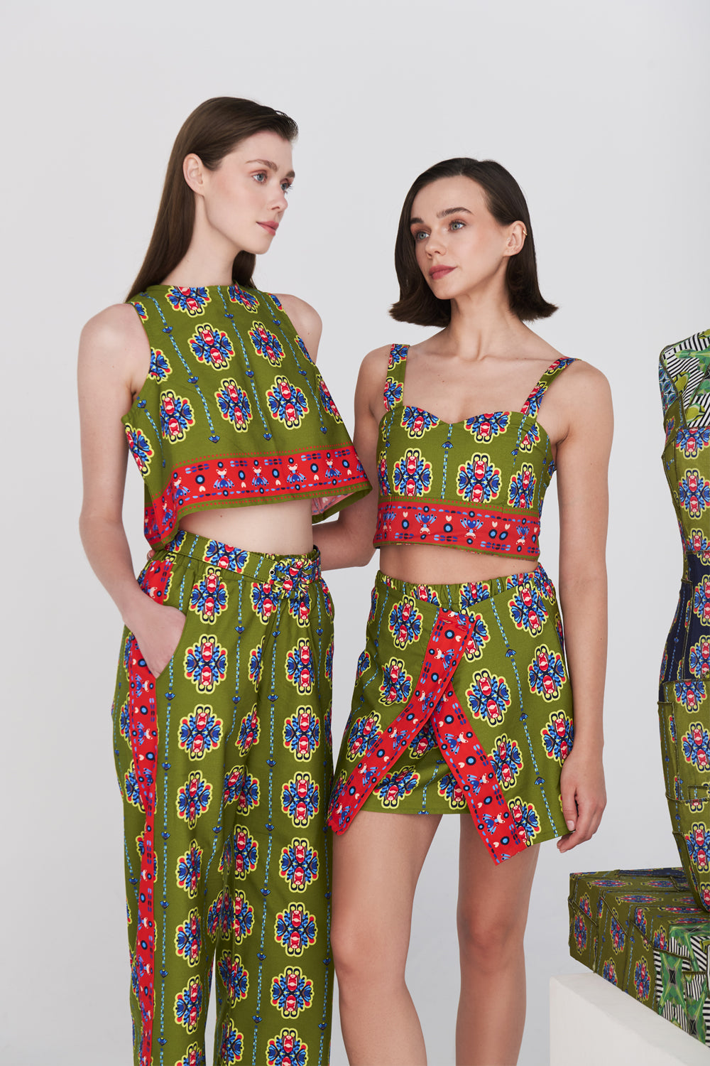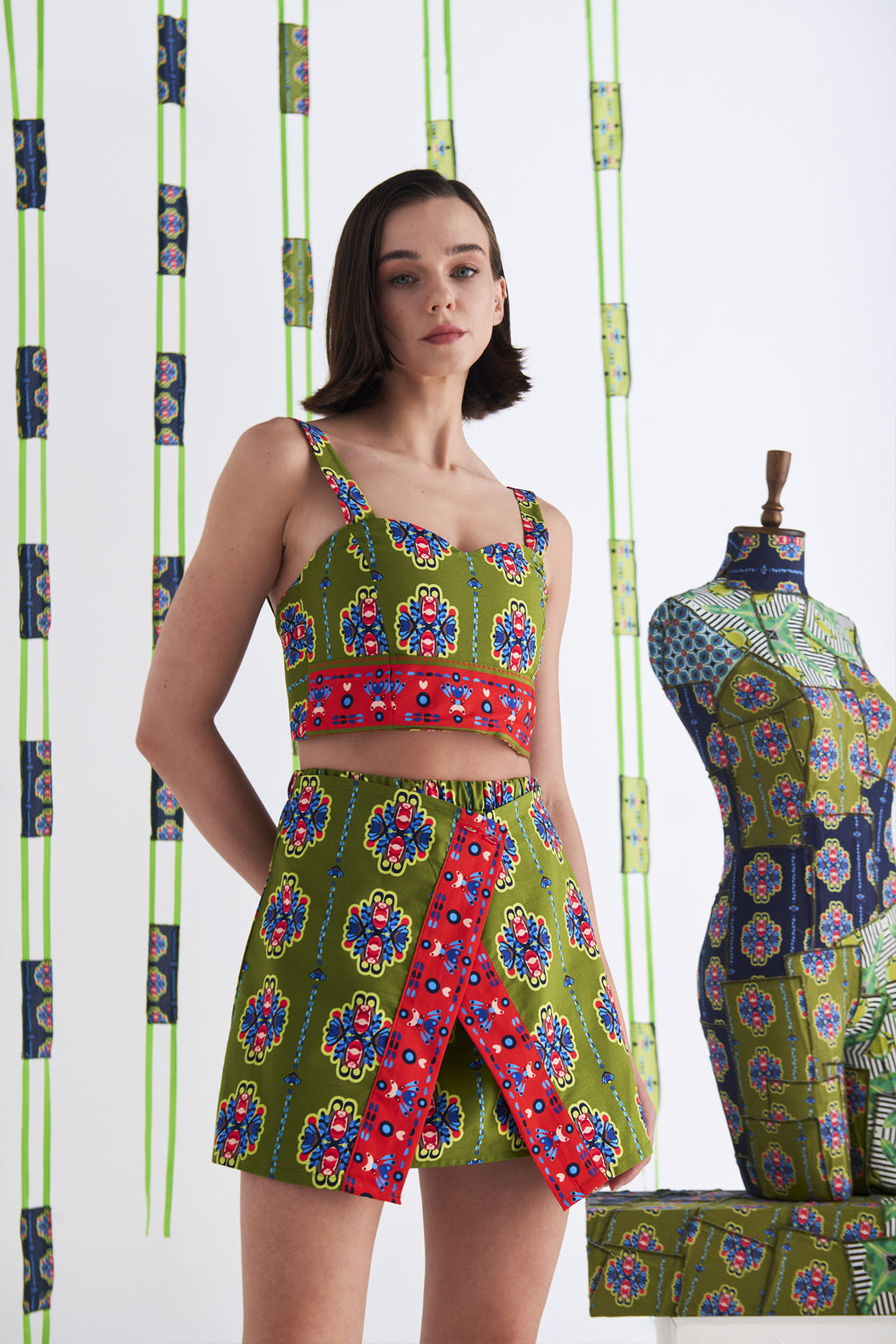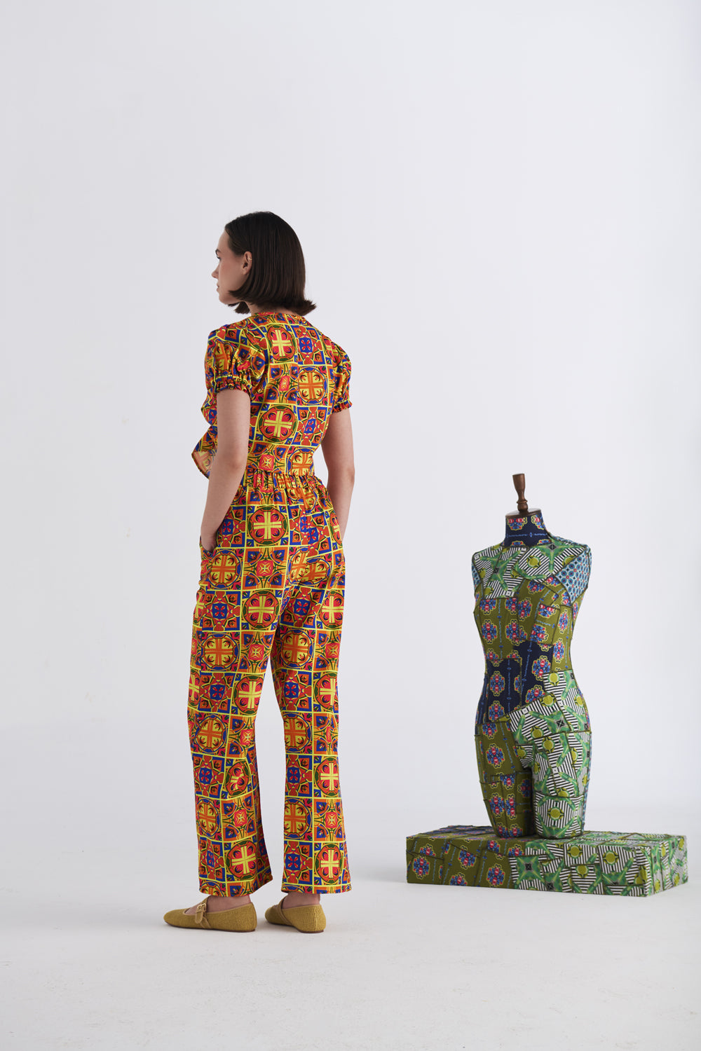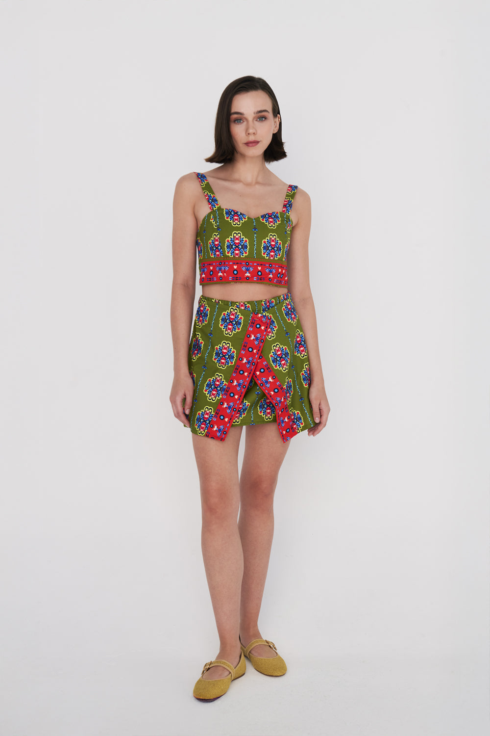 Girlfriend Önden Bağlamalı Geometrik Desenli Bluz