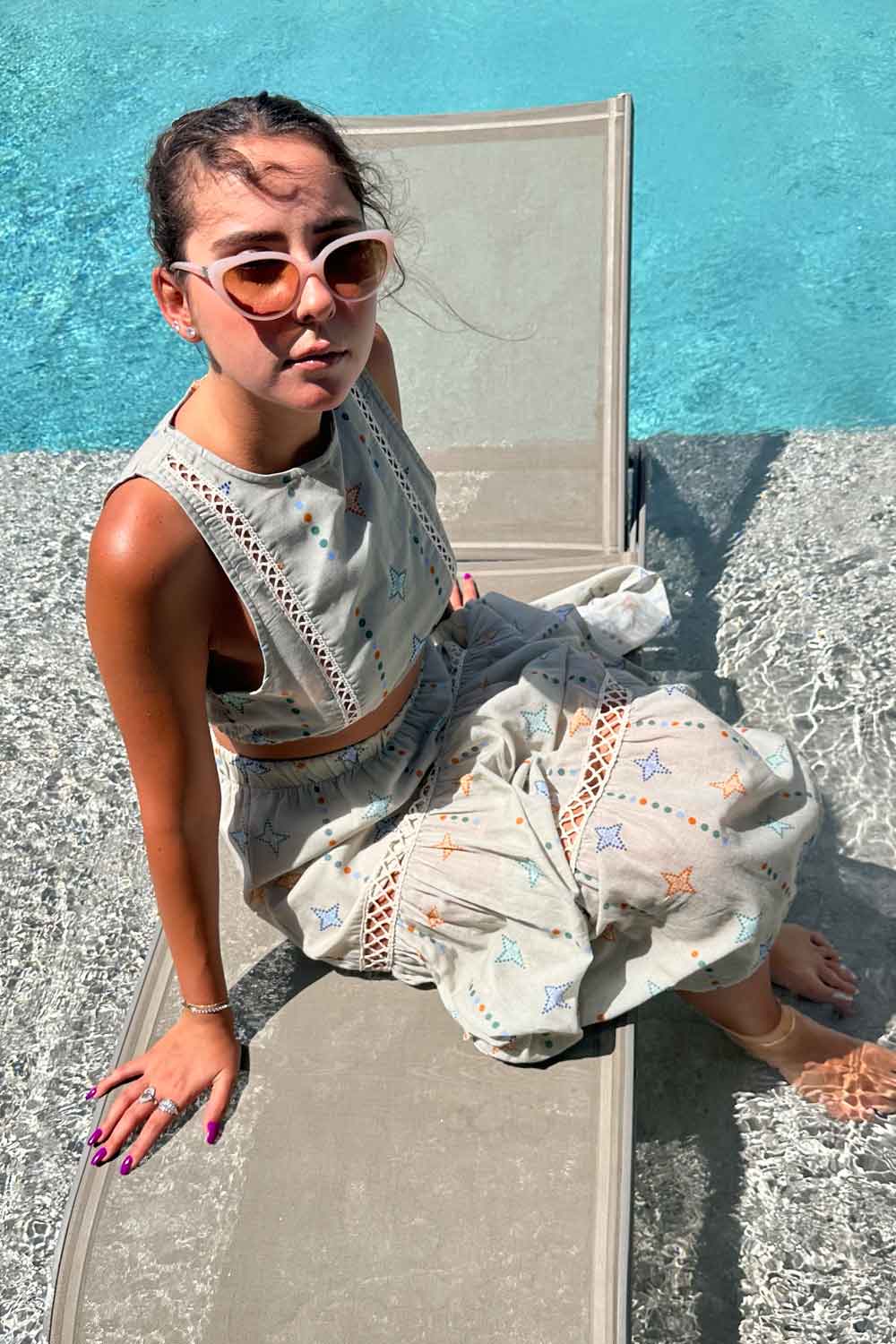 Yıldız Desenli Kopanaki Sırt Detaylı Üst