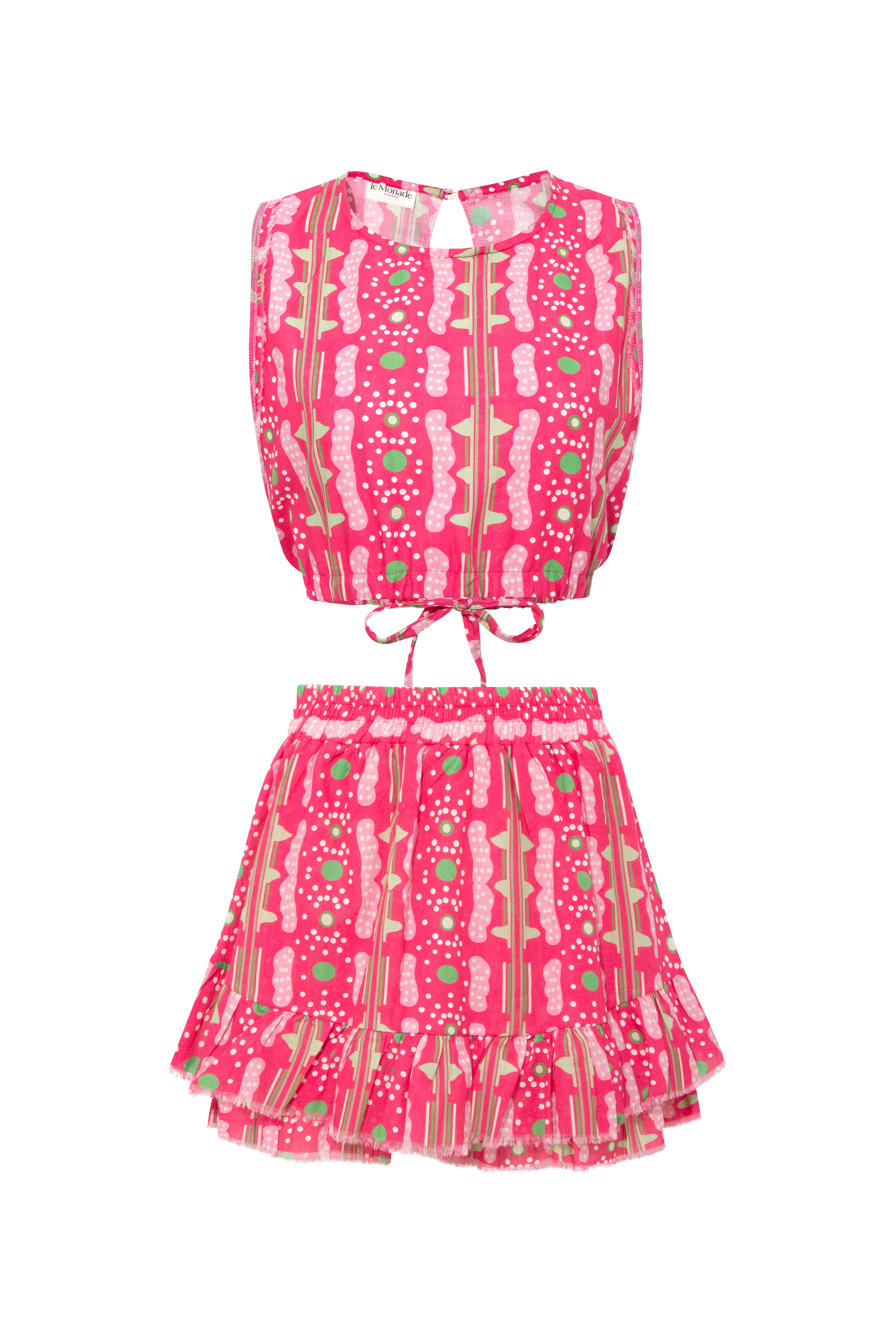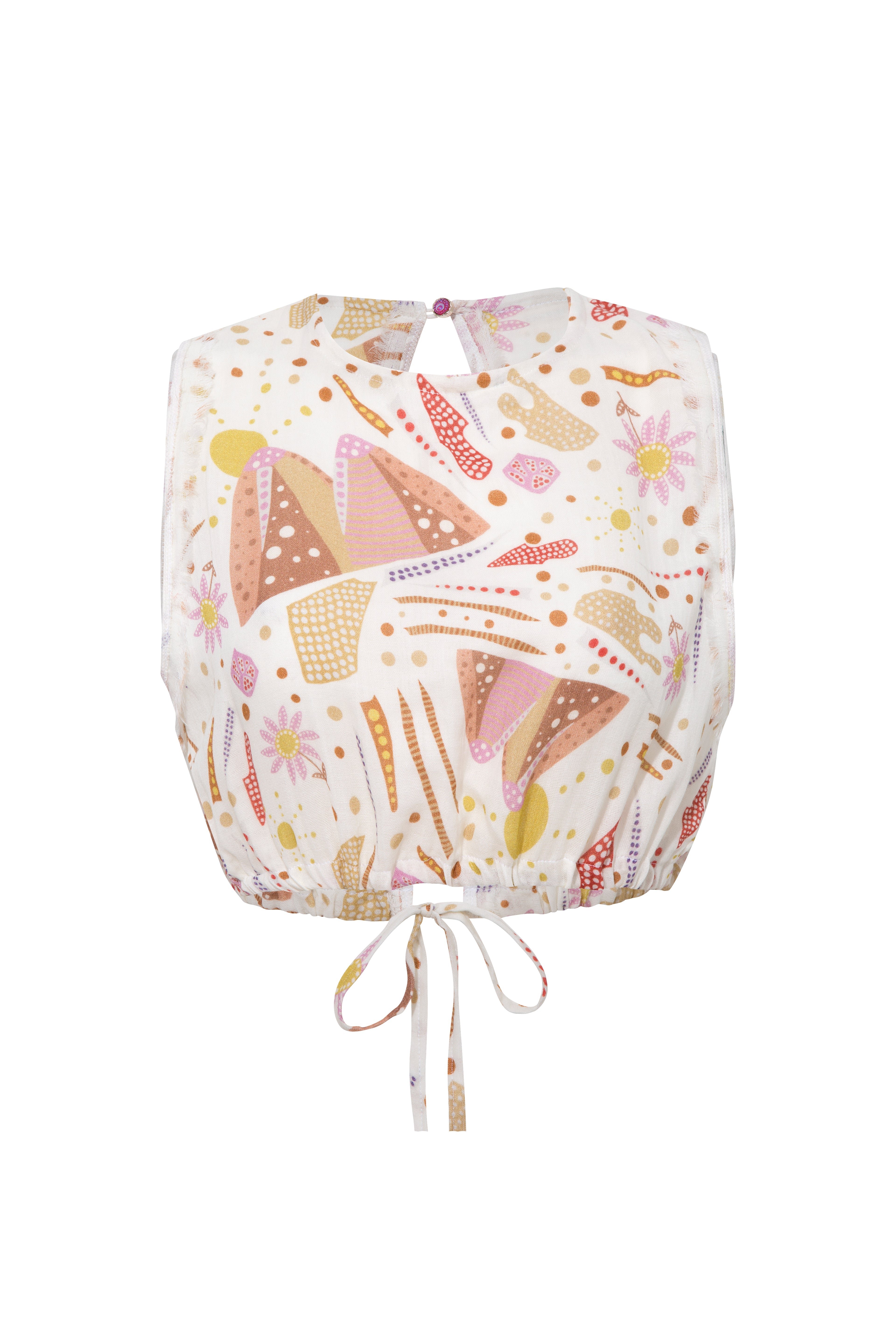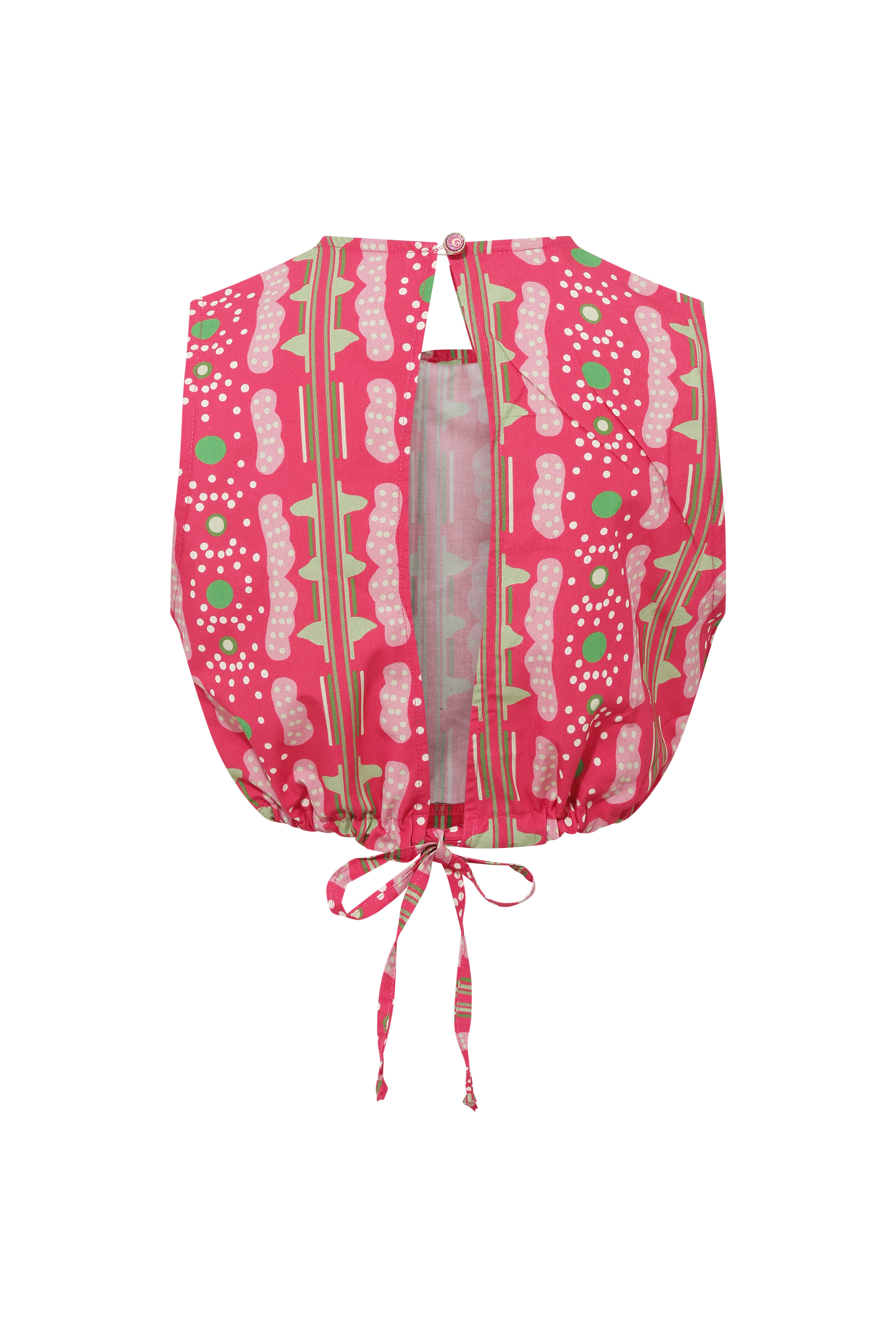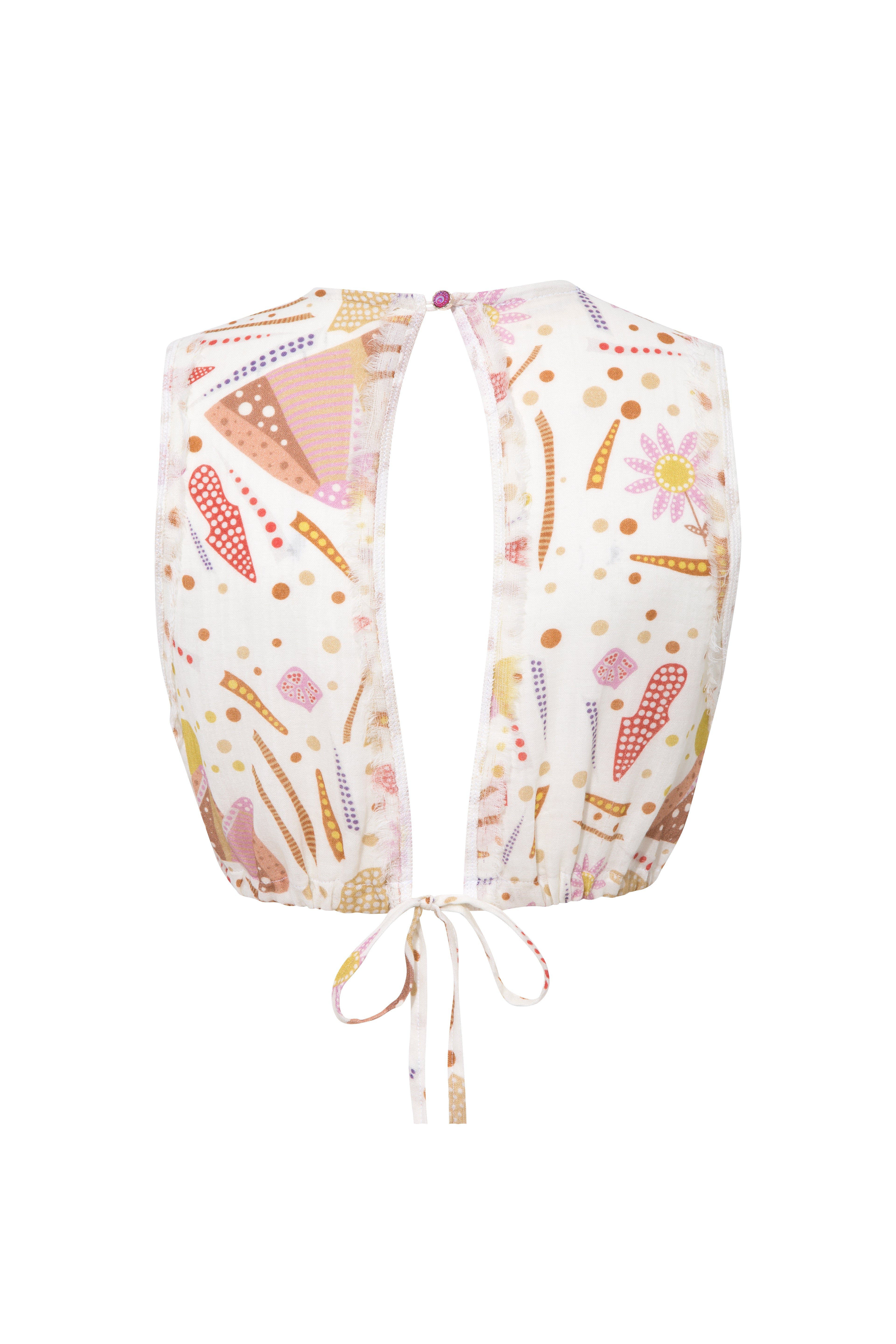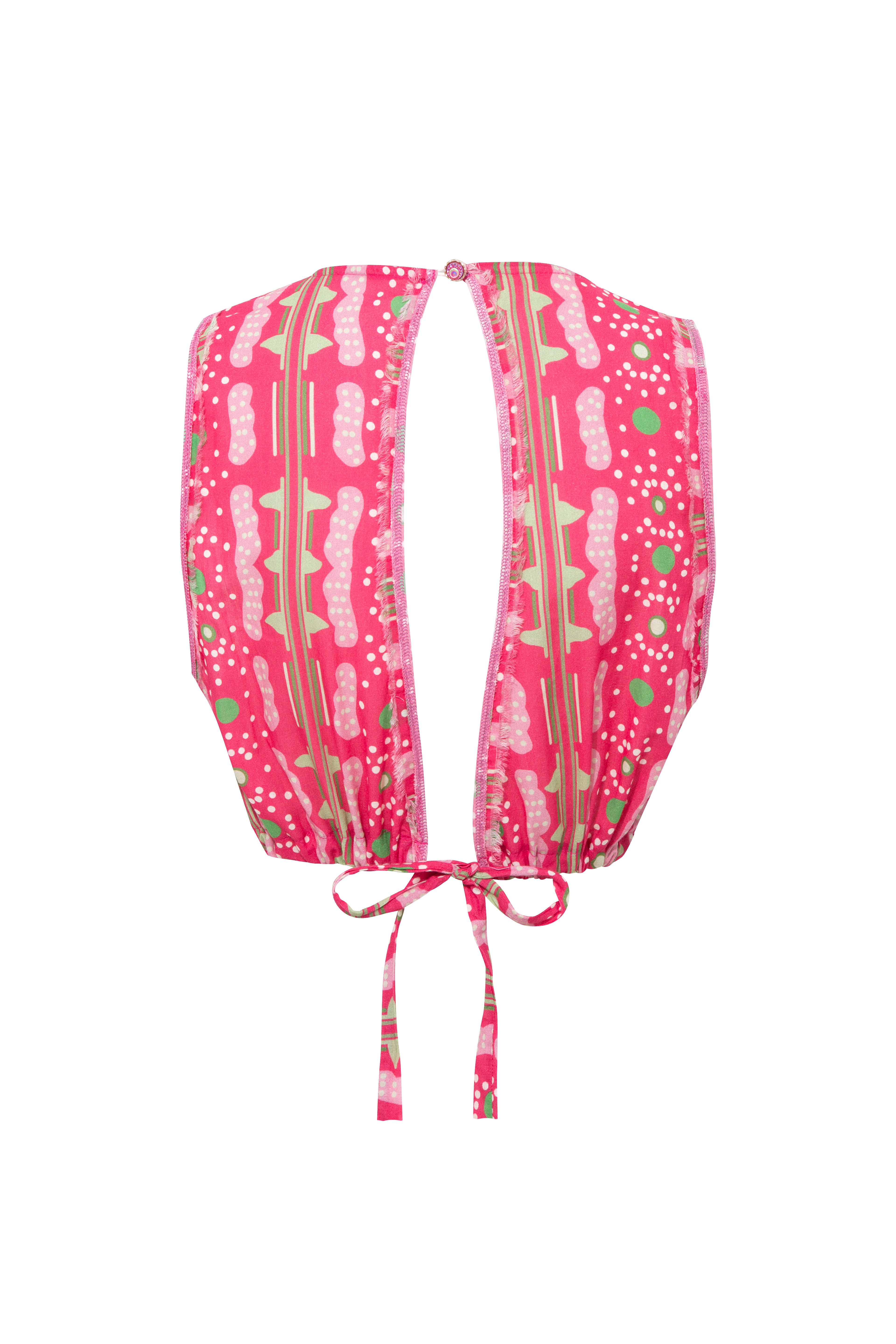 Pembe Bulut Desenli Kopanaki Detaylı Kolsuz Üst