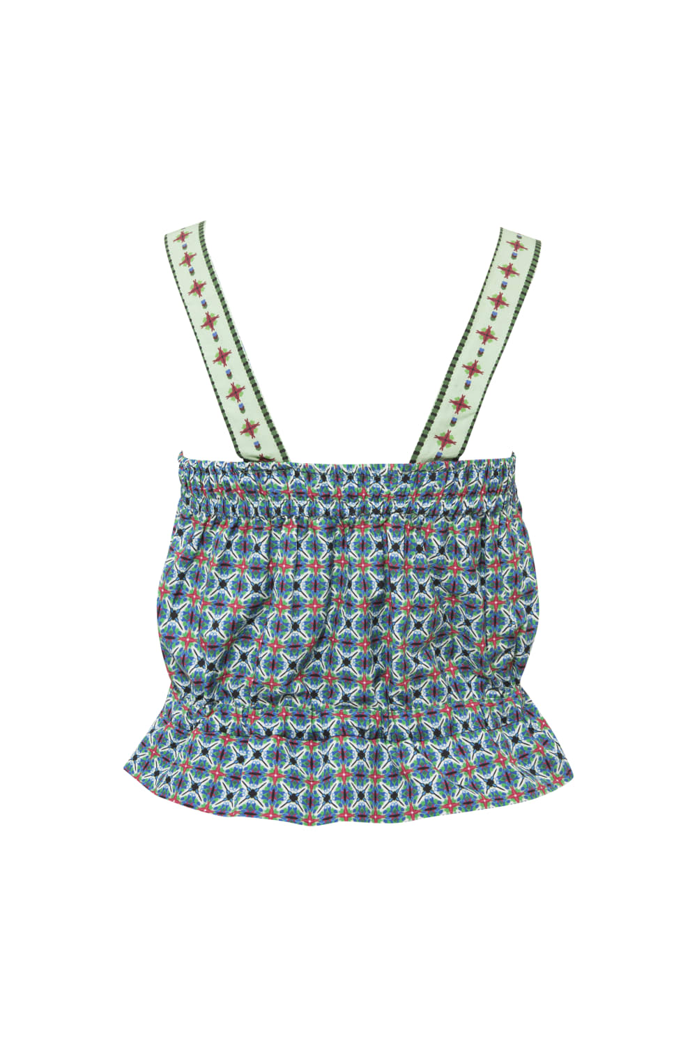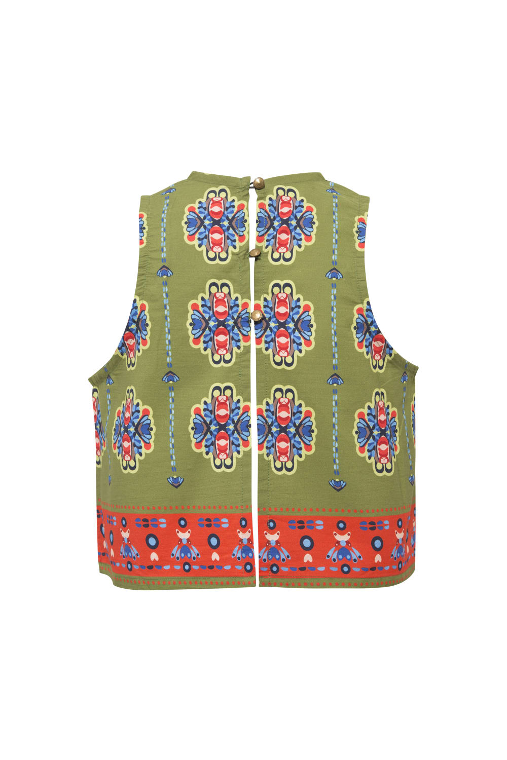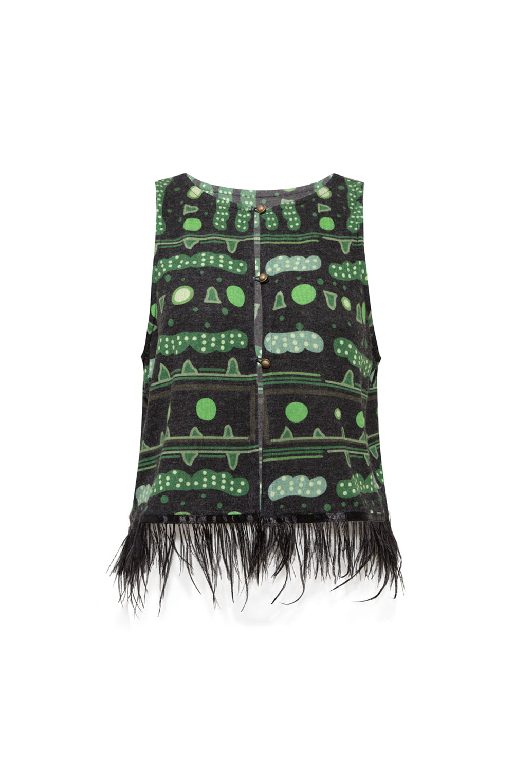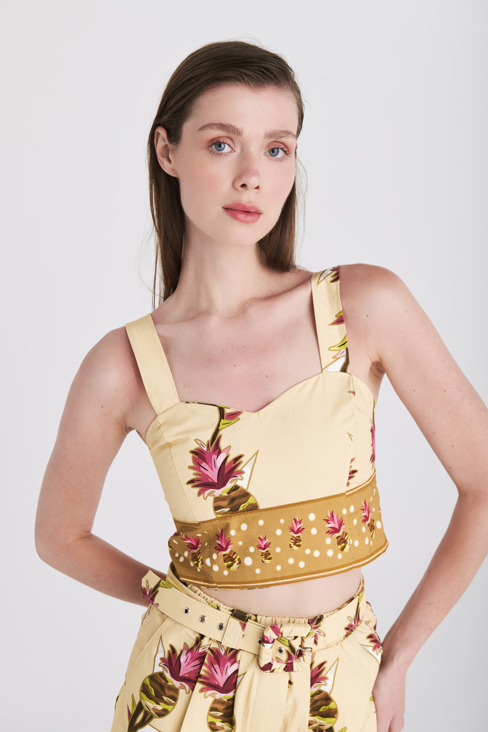Pembe Bulut Desenli Kopanaki Detaylı Kolsuz Üst