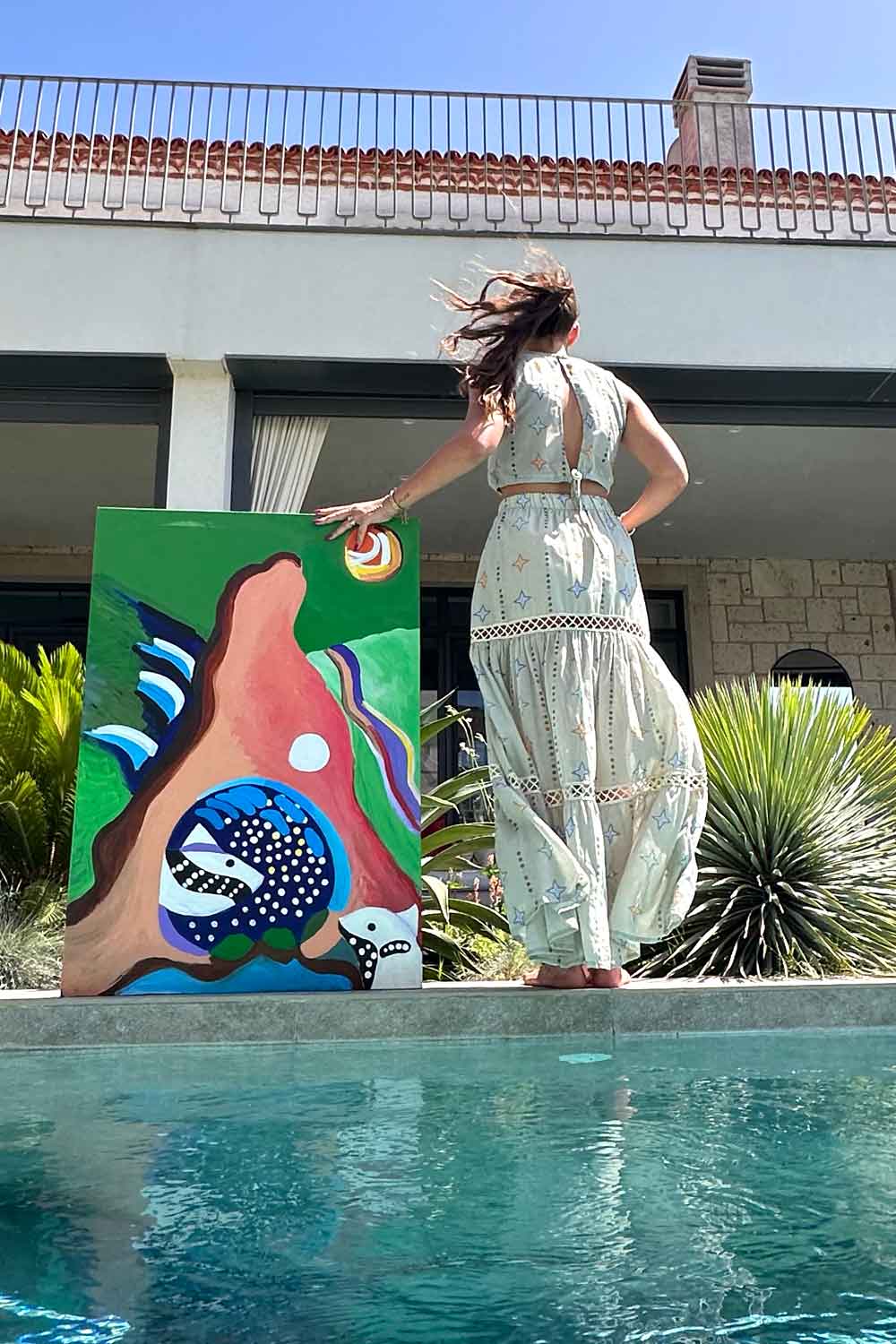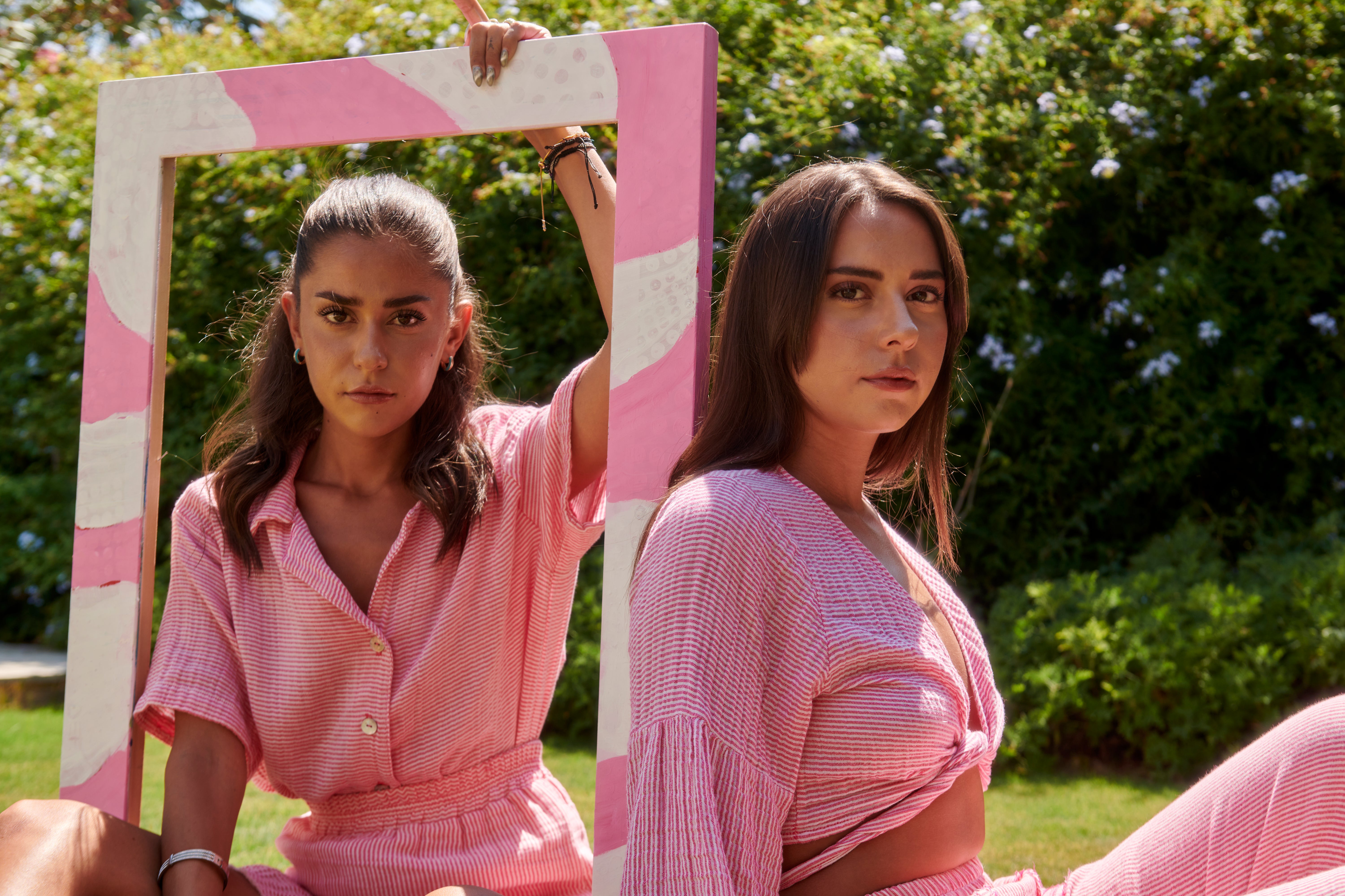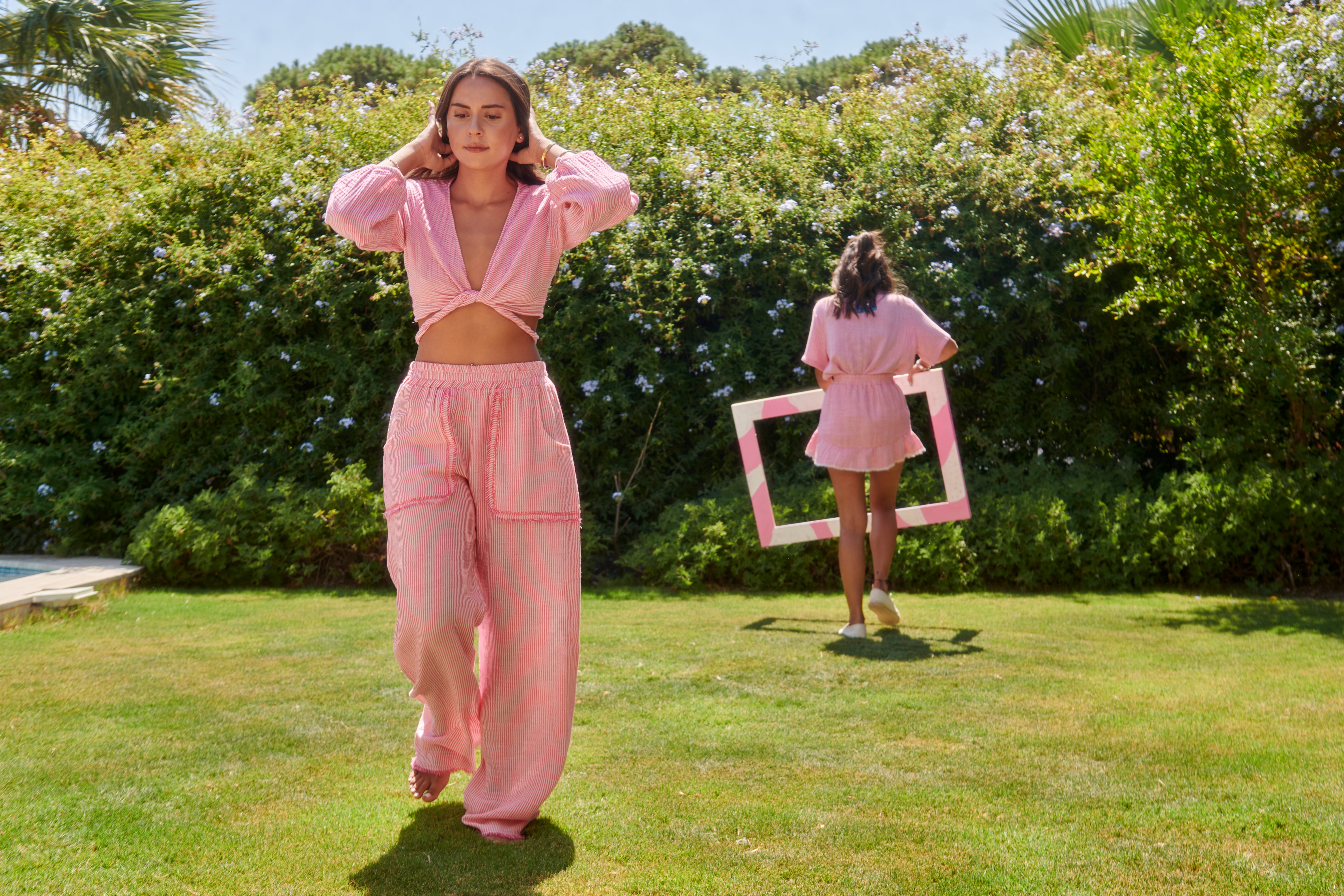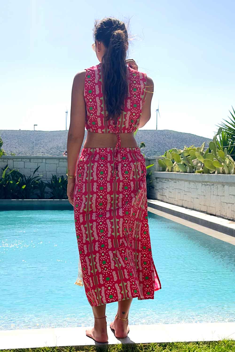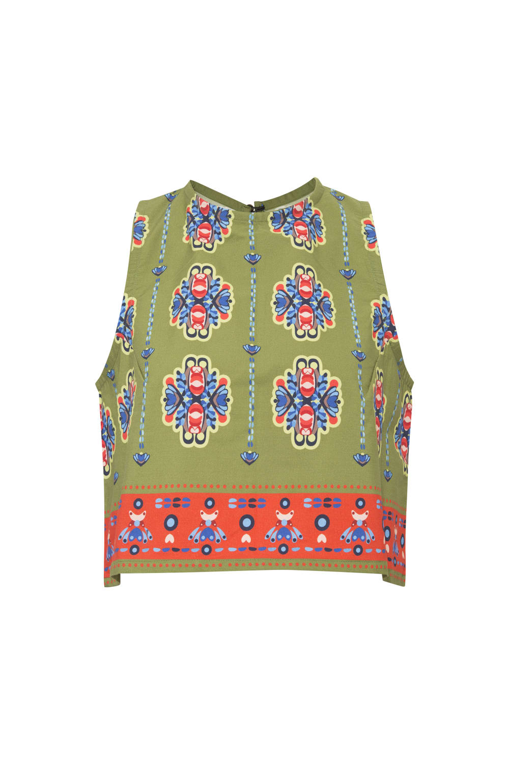 Pembe Bulut Desenli Kopanaki Detaylı Kolsuz Üst