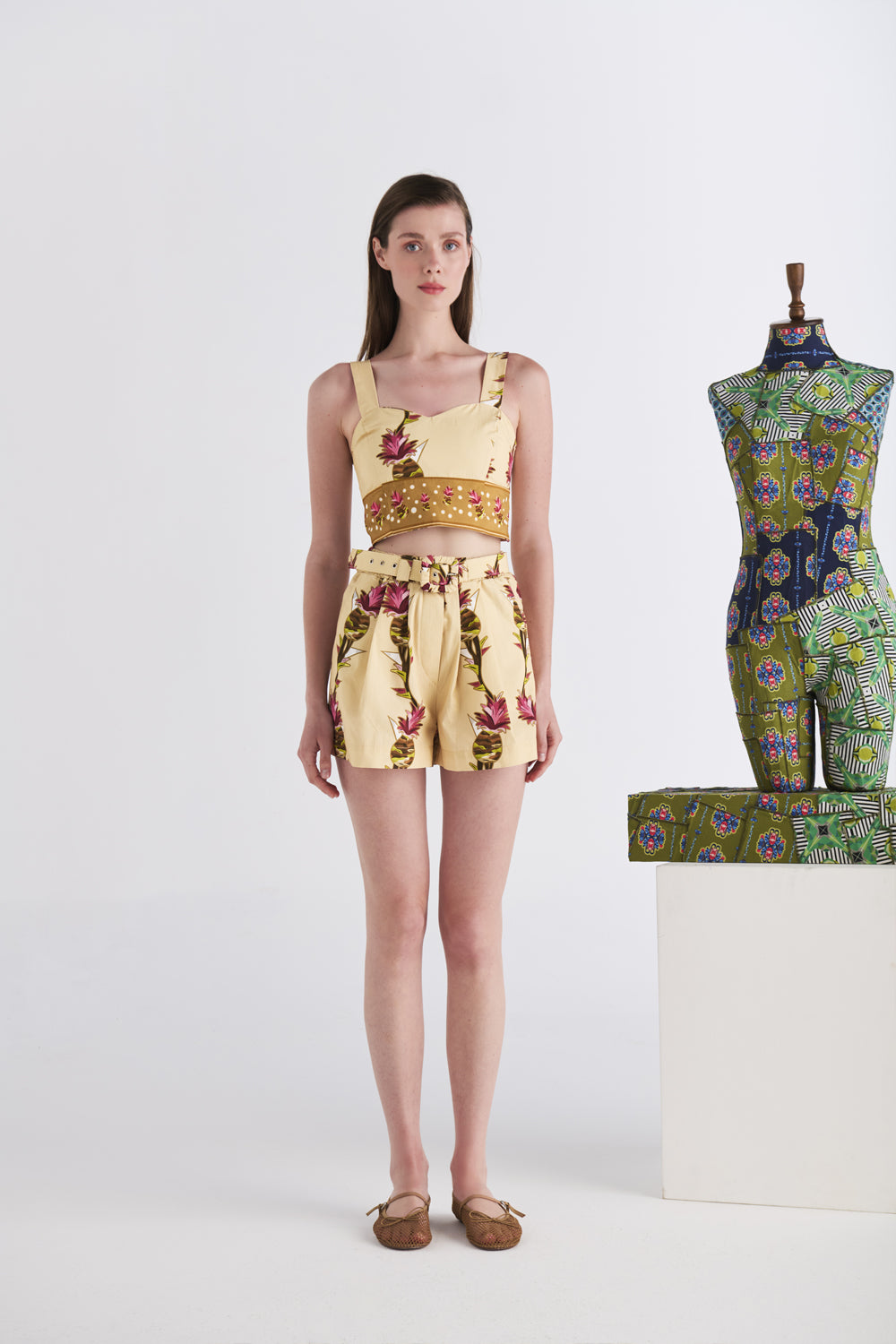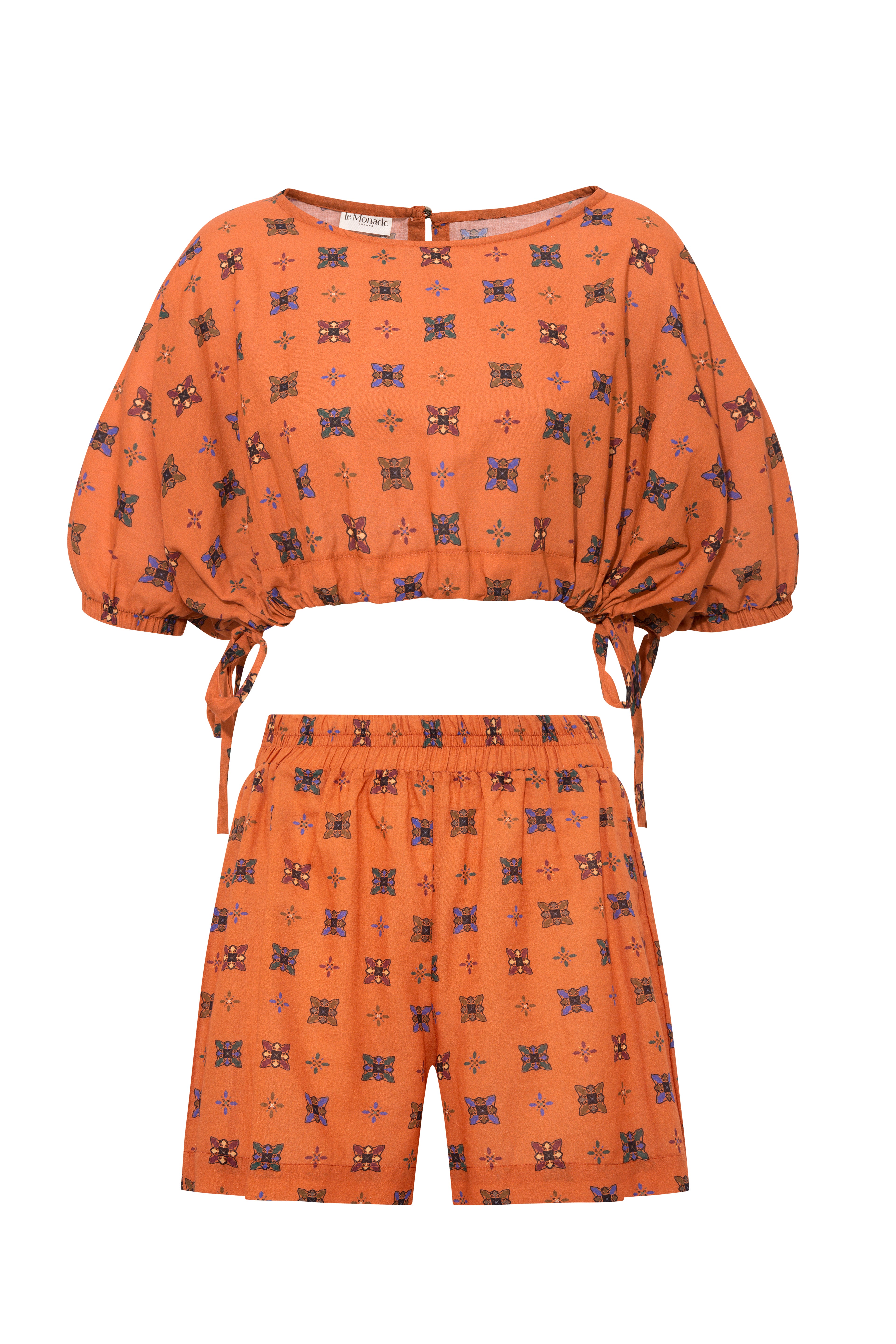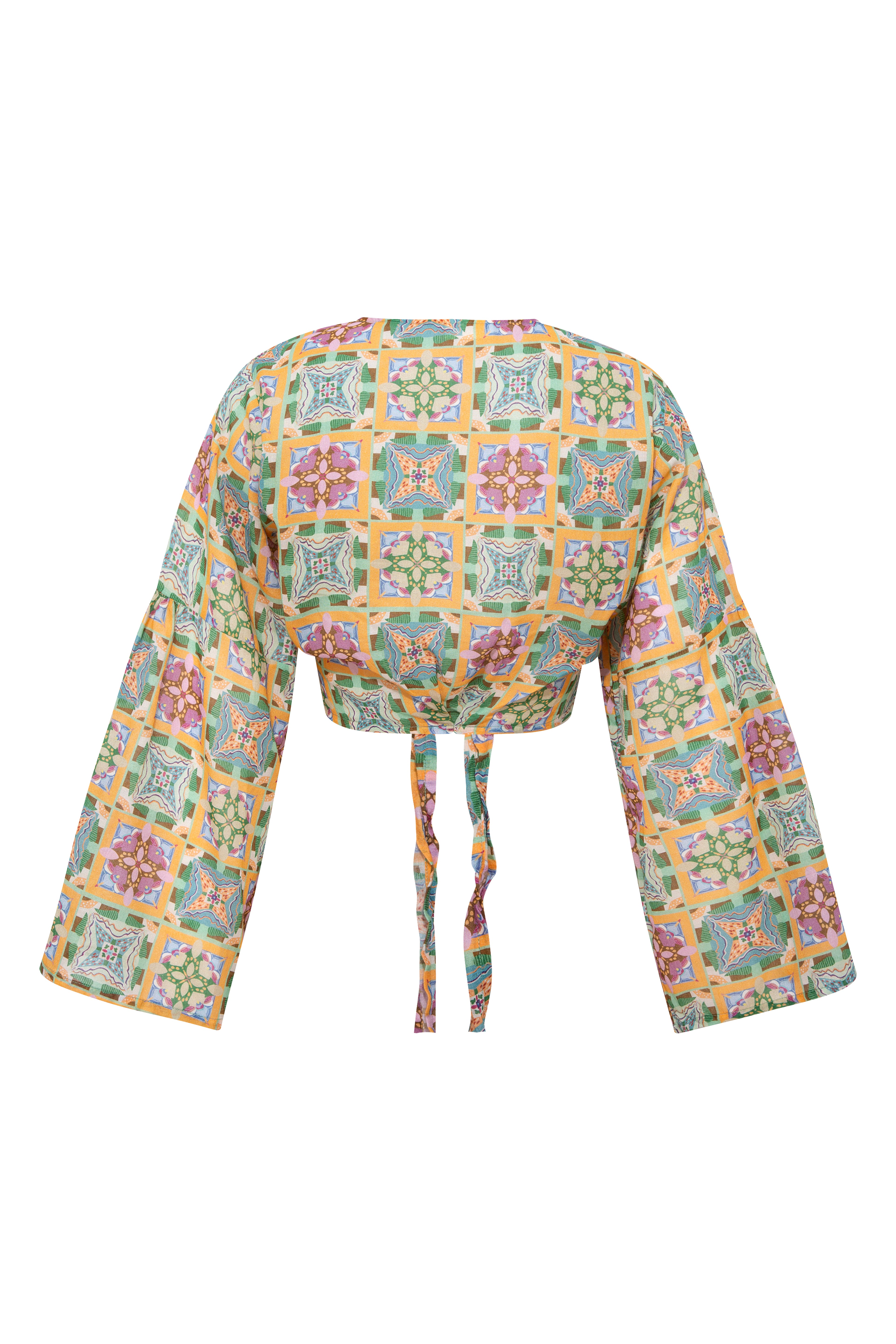 Boyfriend Desenli Yandan Bağlamalı Kısa Bluz