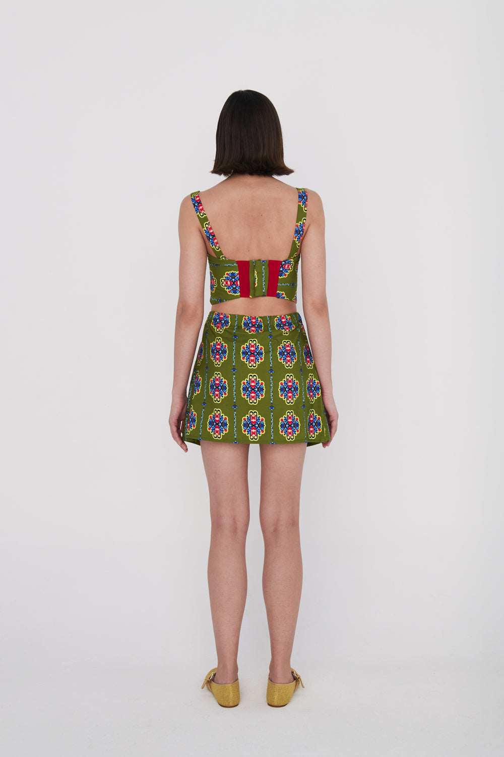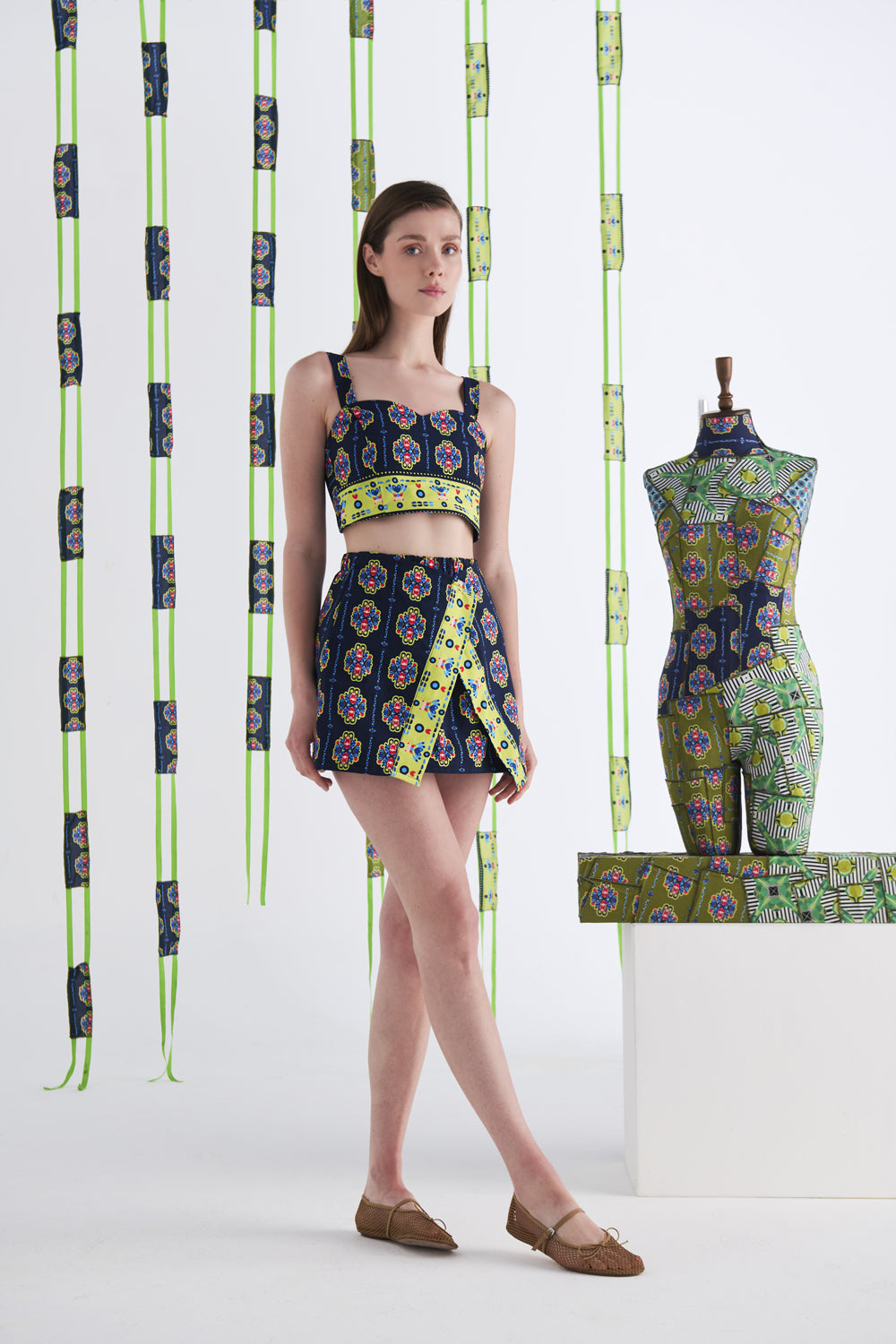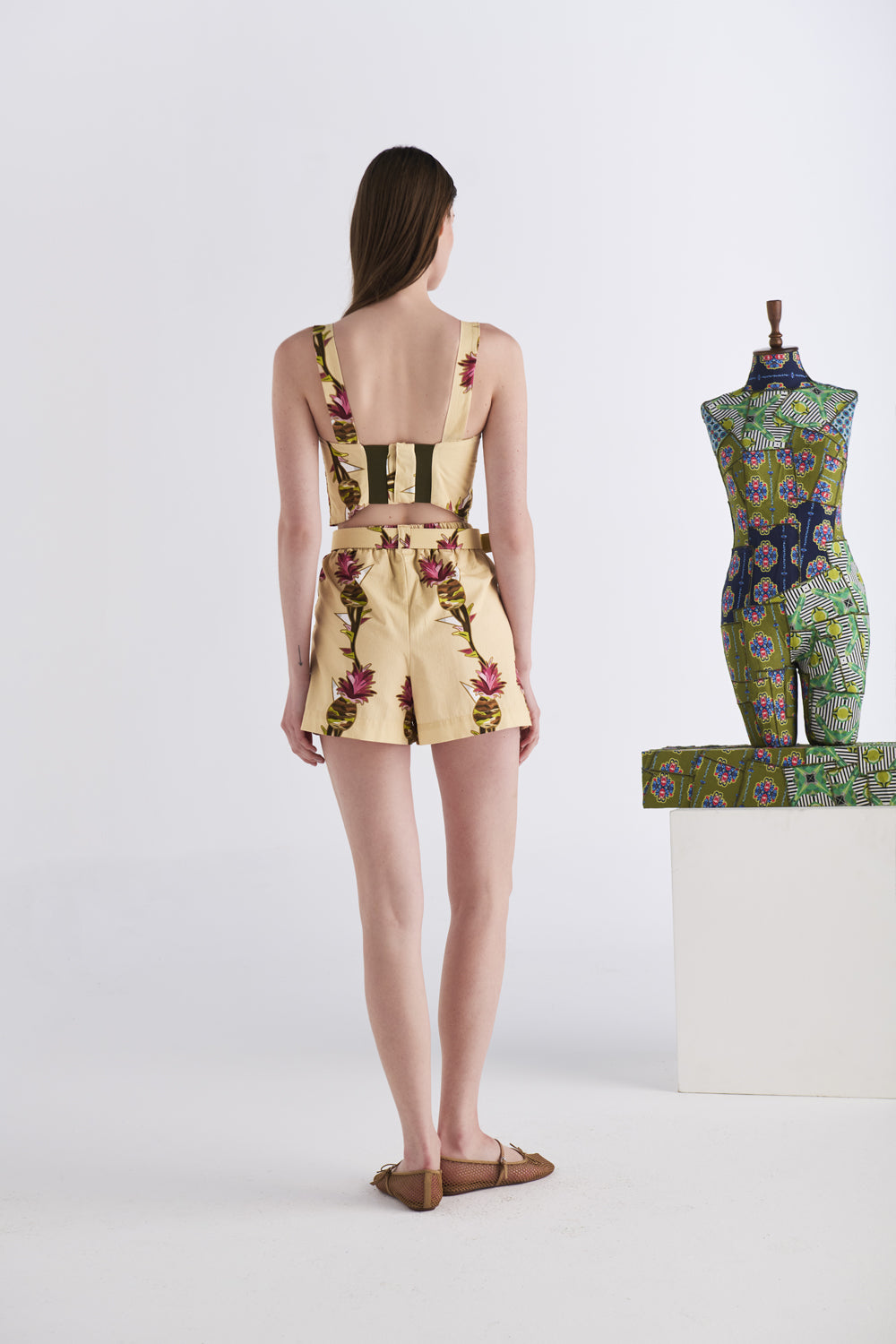 Boyfriend Desenli Yandan Bağlamalı Kısa Bluz
