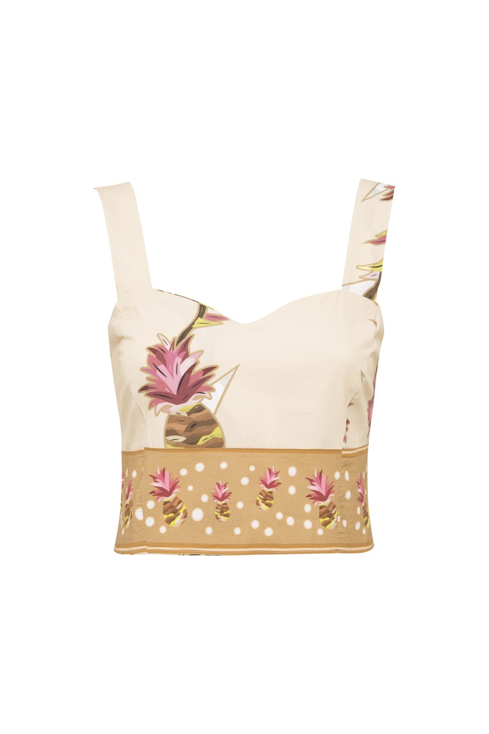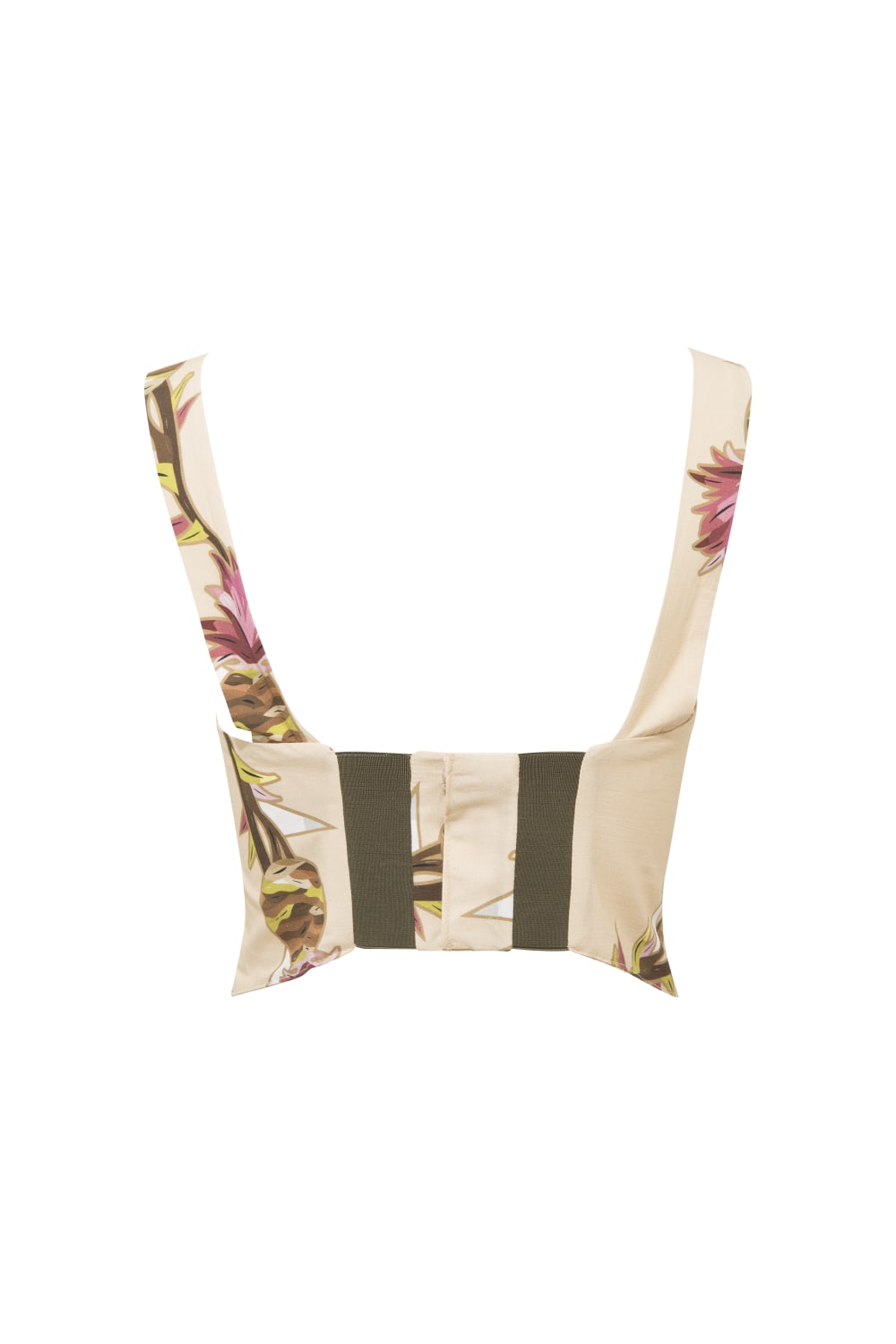 Ekru Pembe Sırt Detaylı Desenli Bluz