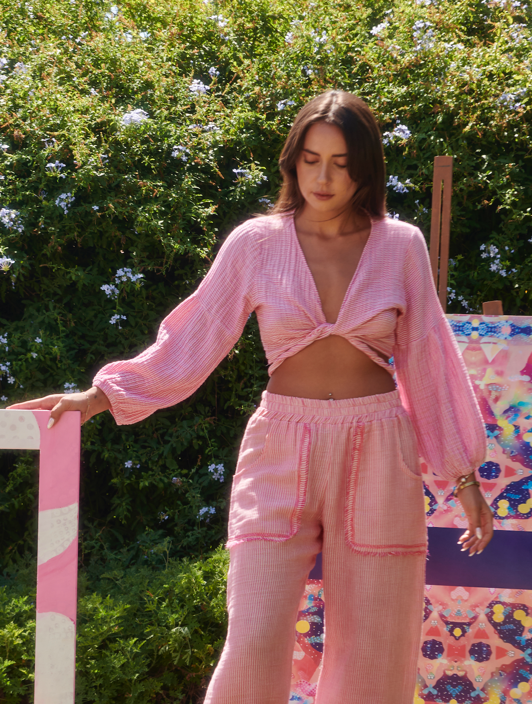 Crop tasarım, önden bağaama detayı ile şık bir görünüm sunmaktadır.
