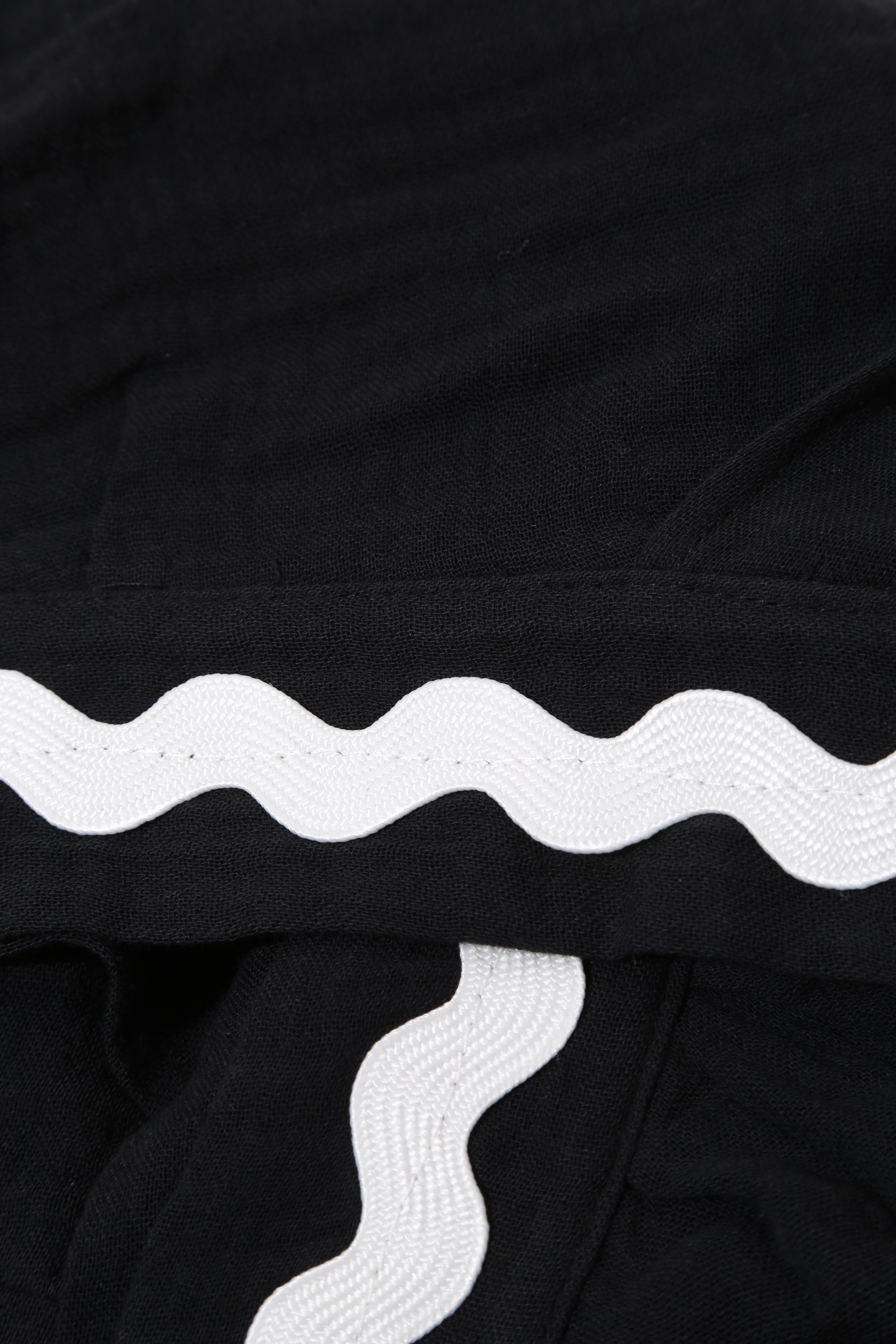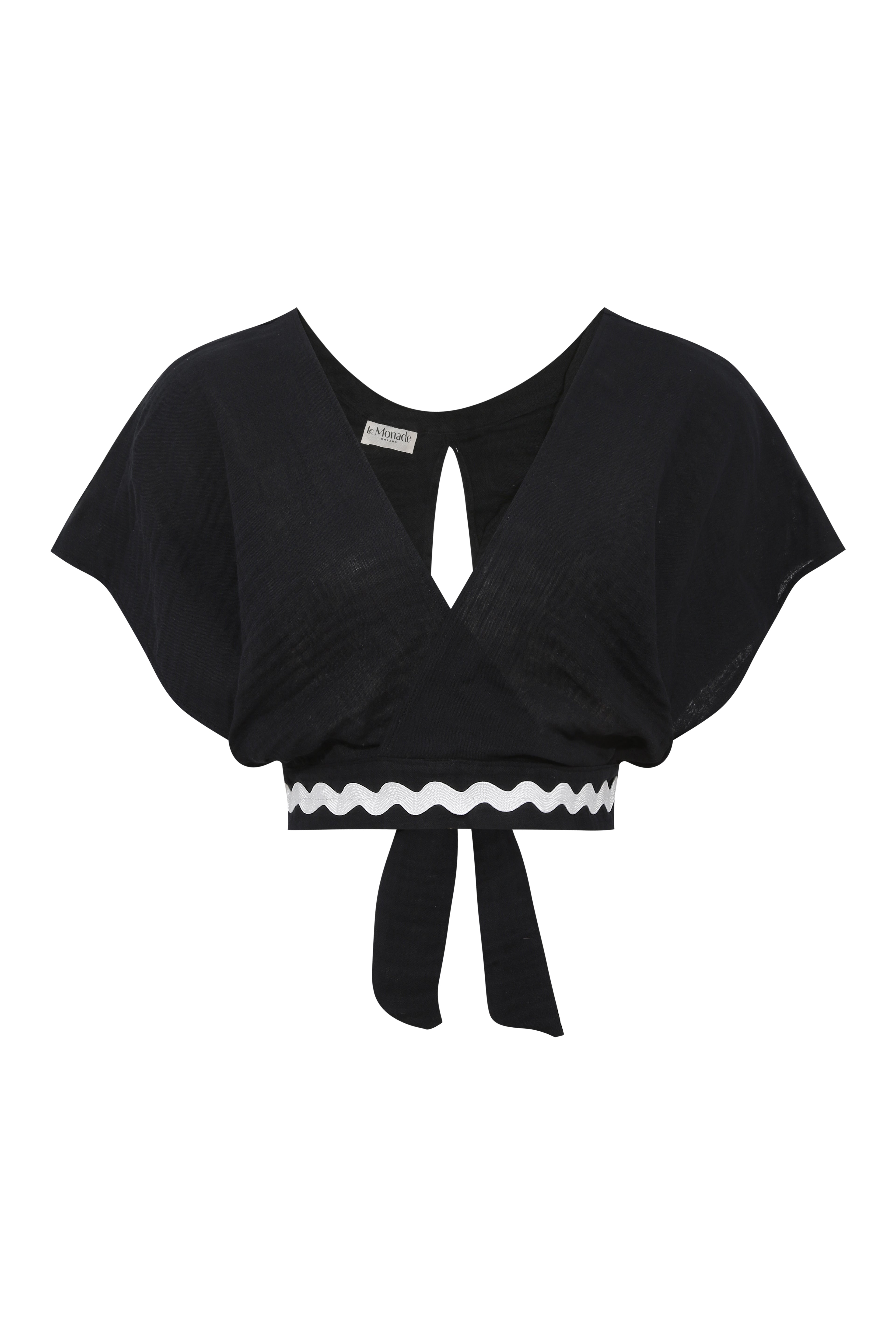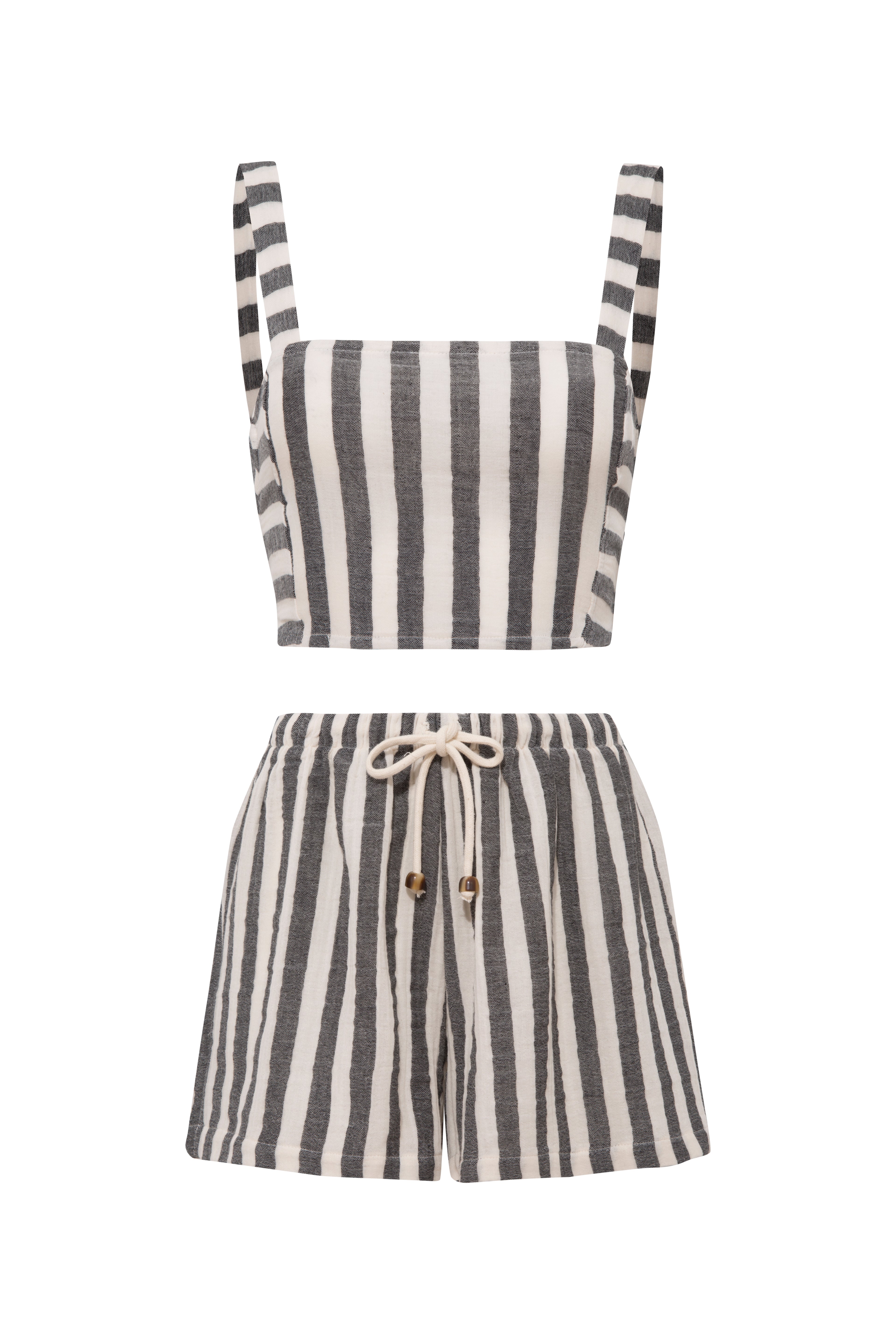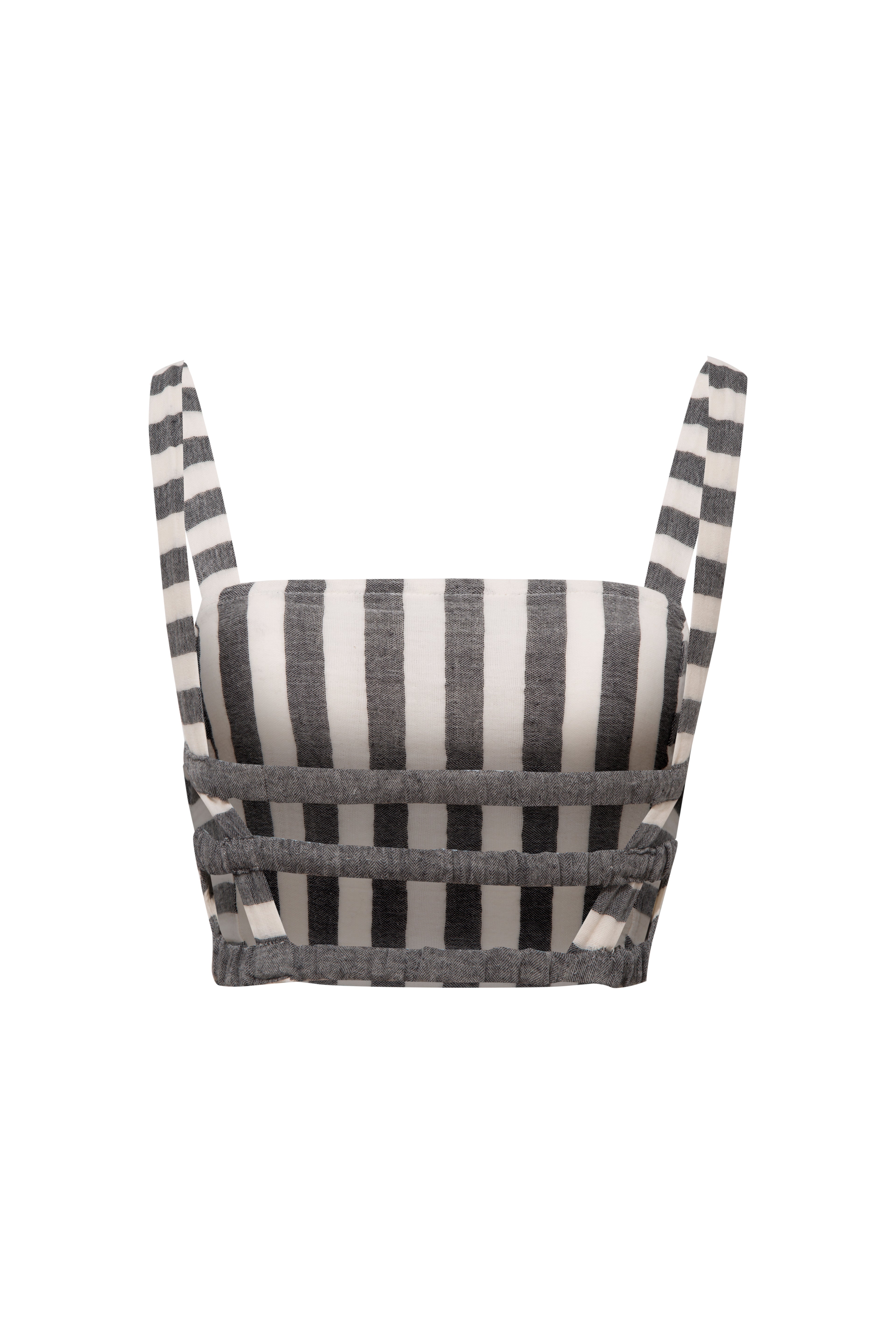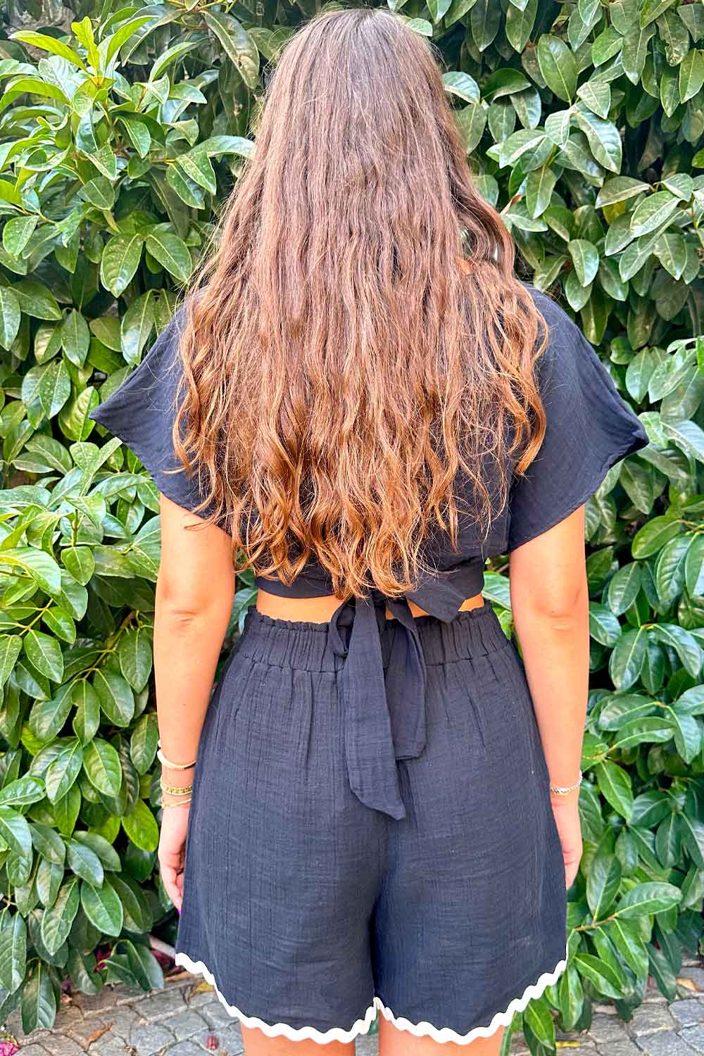 Antrasit Siyah Çizgili Bağlamalı Bluz