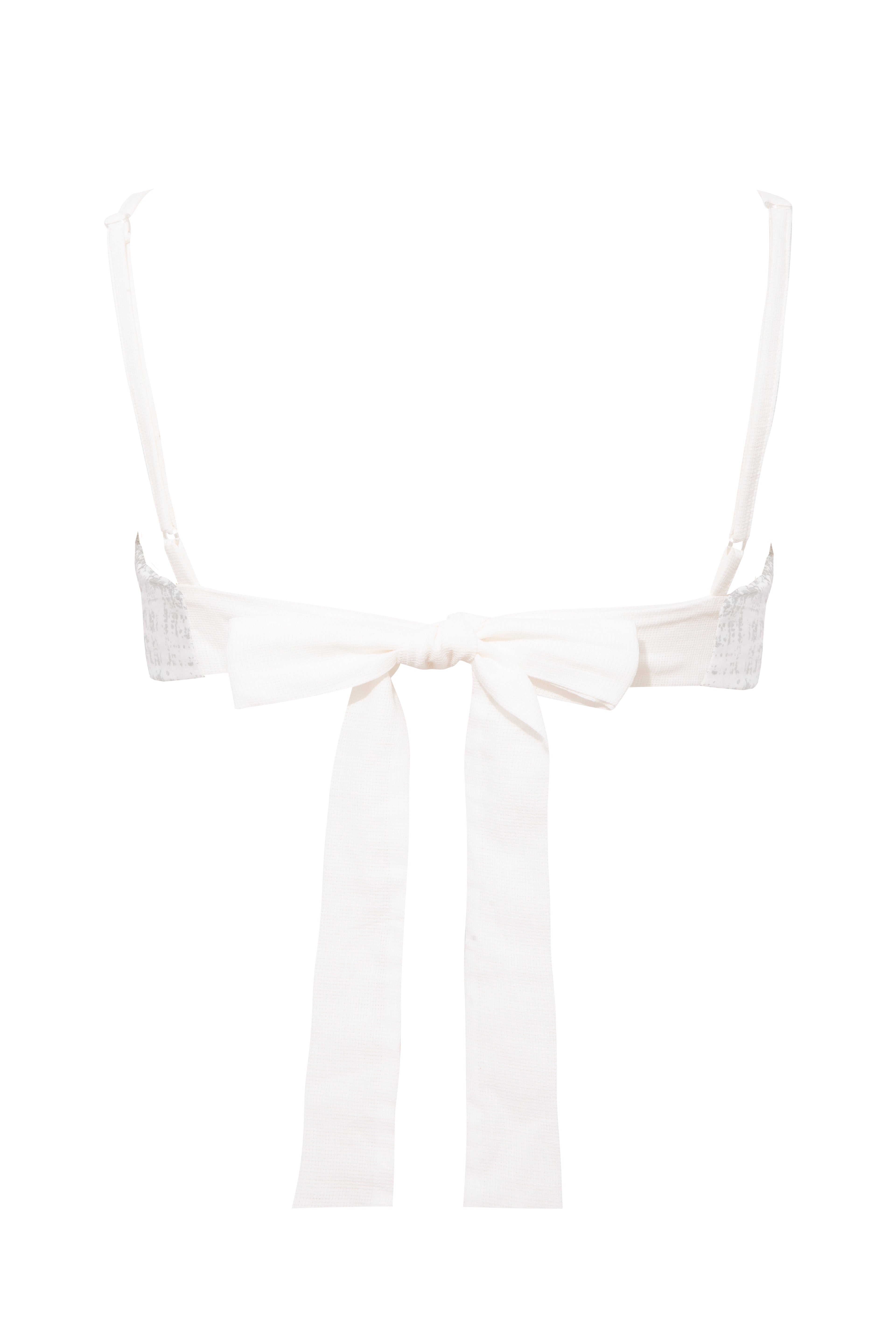Keten Dokulu Önden Bağlamalı Ekru Bluz