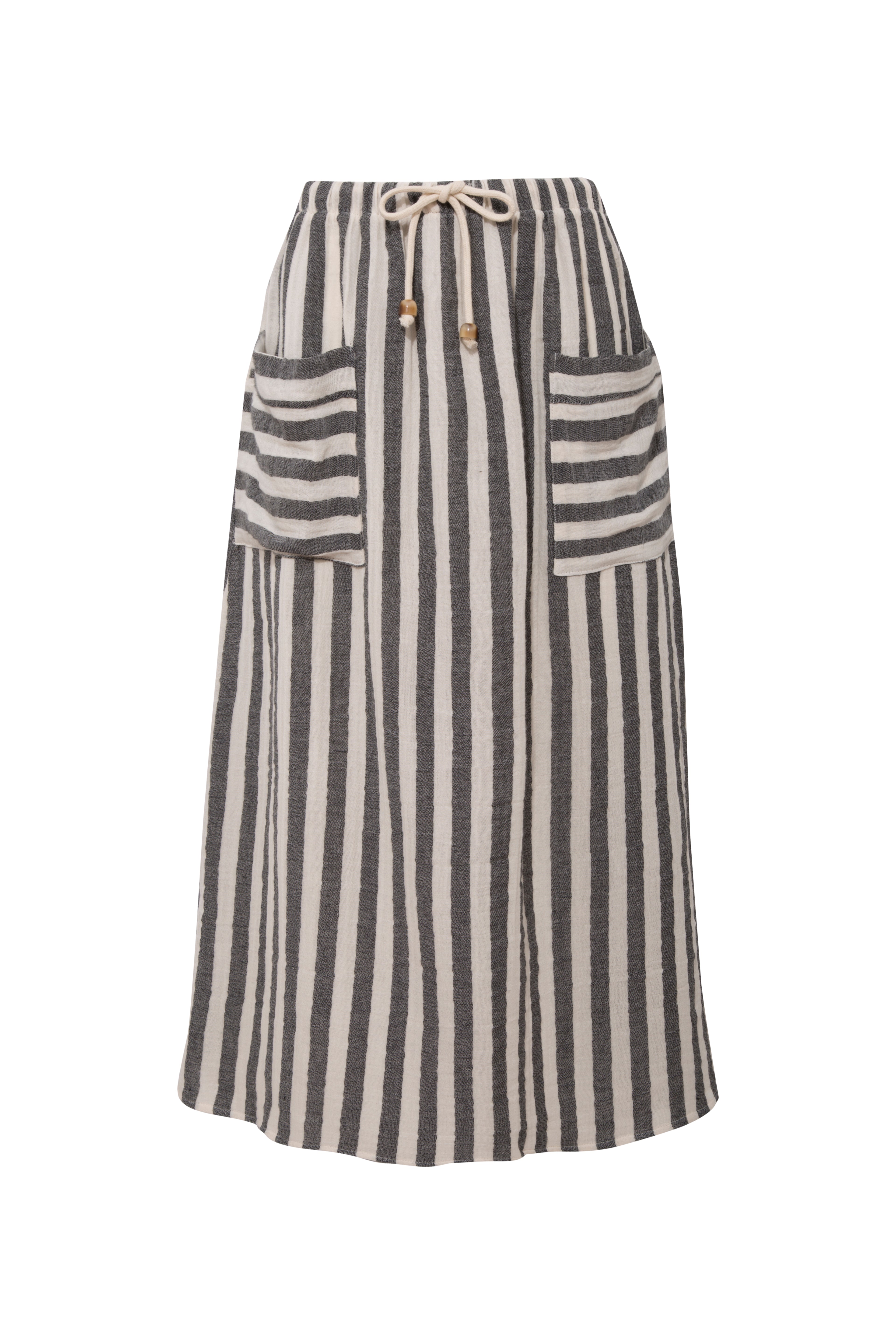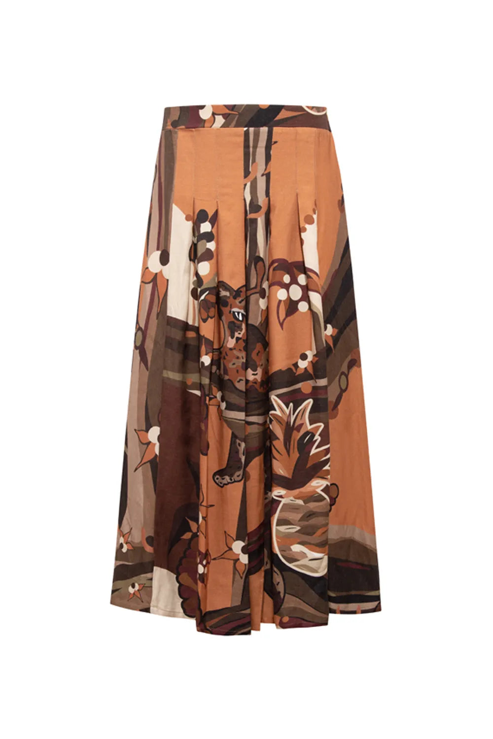 Su Taşı Detaylı Bej Önden Yırtmaçlı Etek