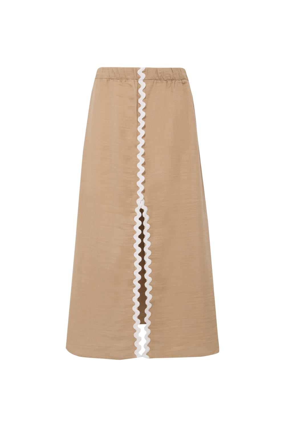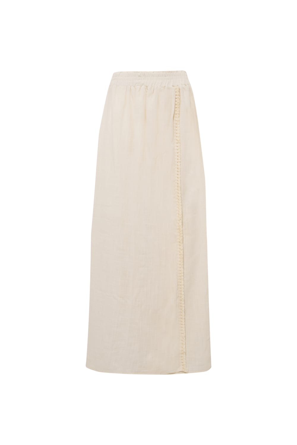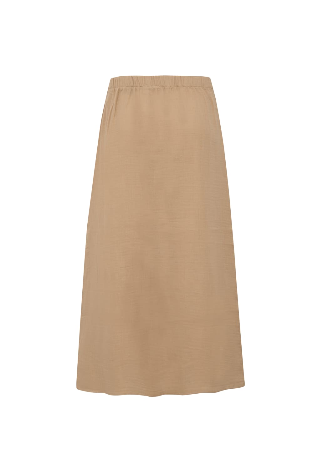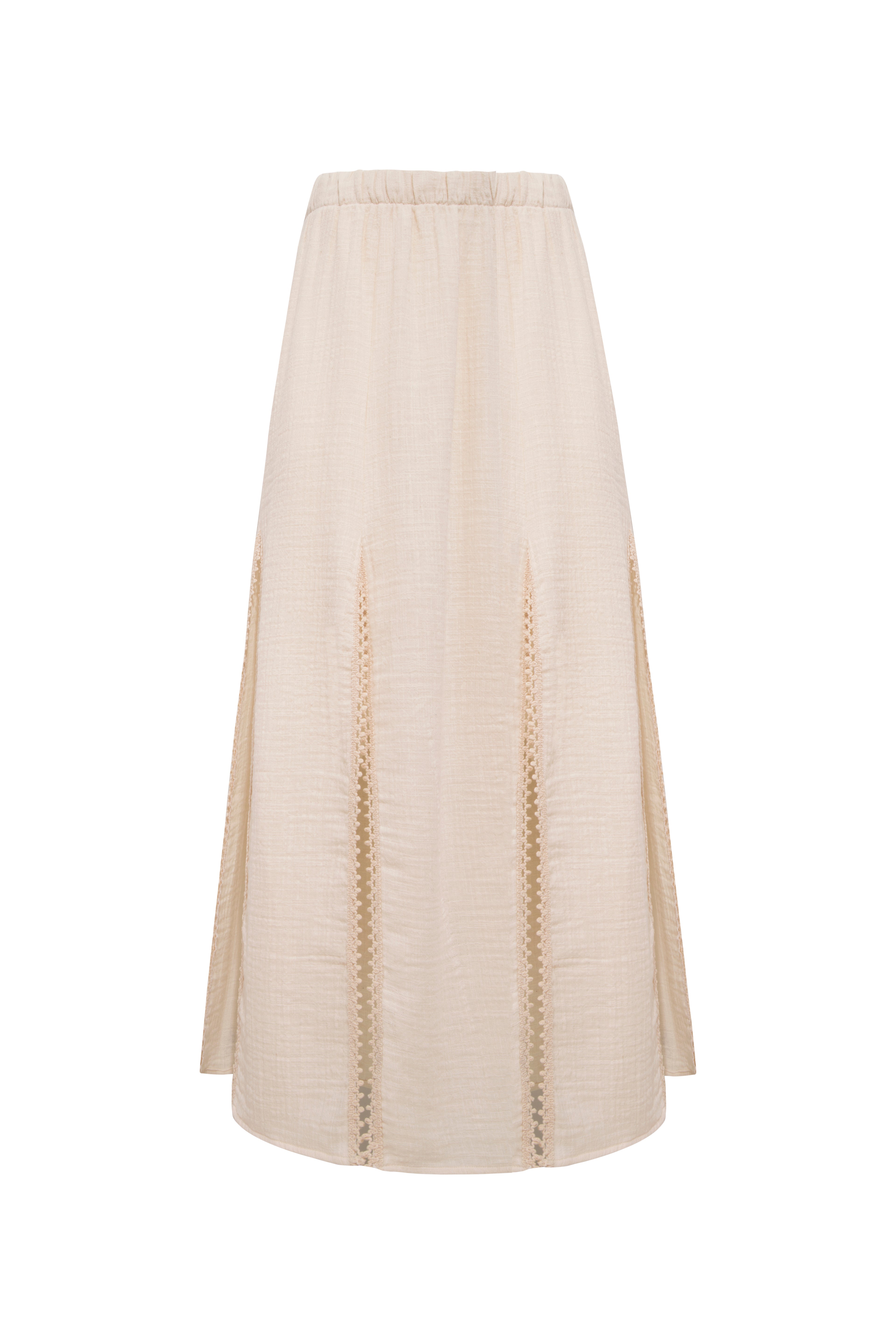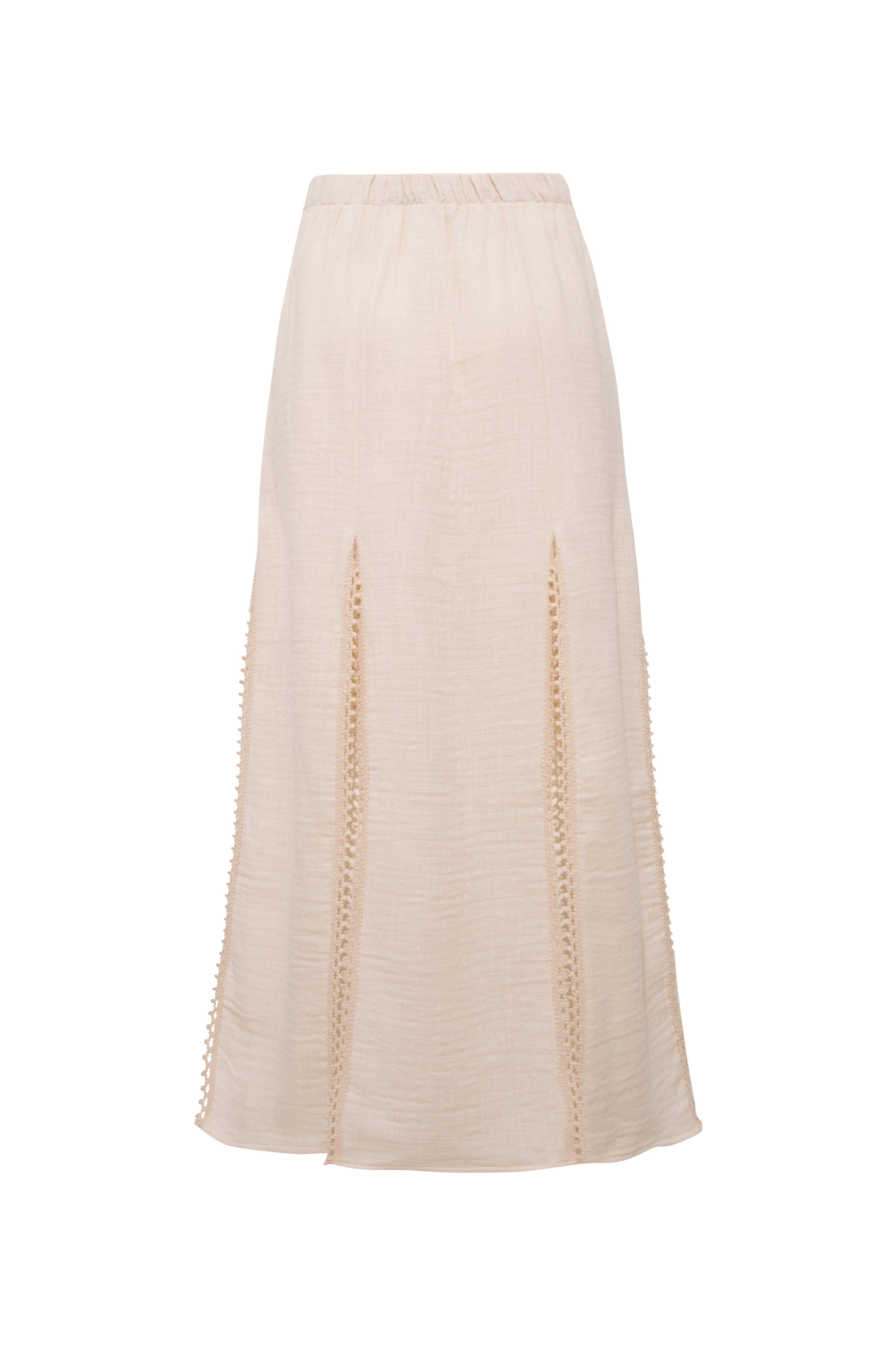 Keten Dokulu Kenar Detaylı Yırtmaçlı Ekru Etek