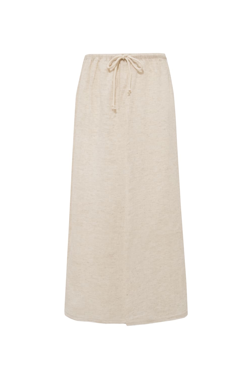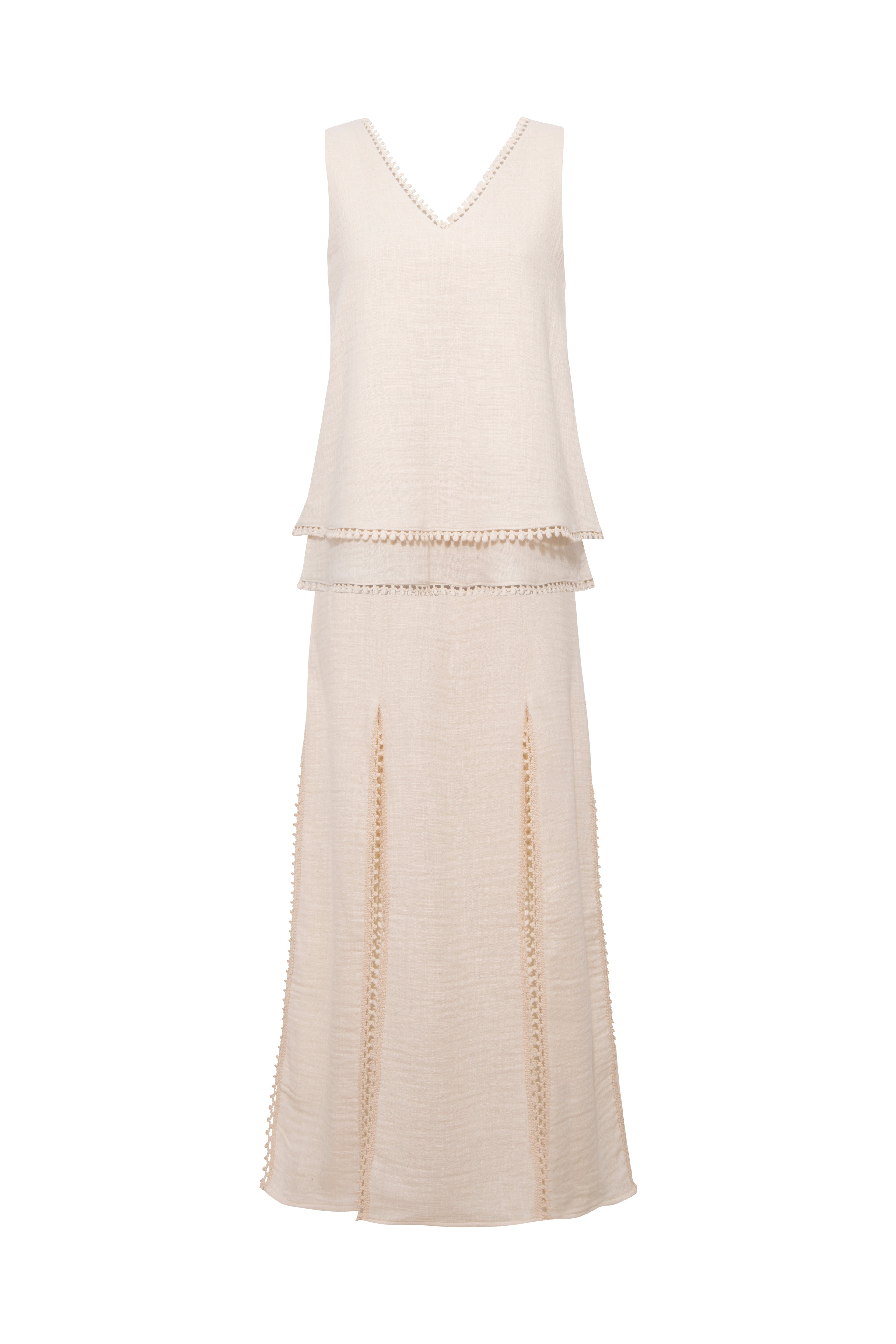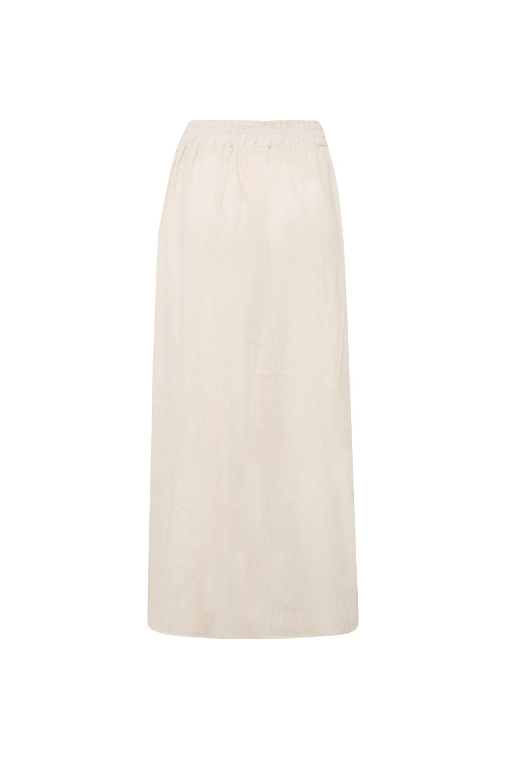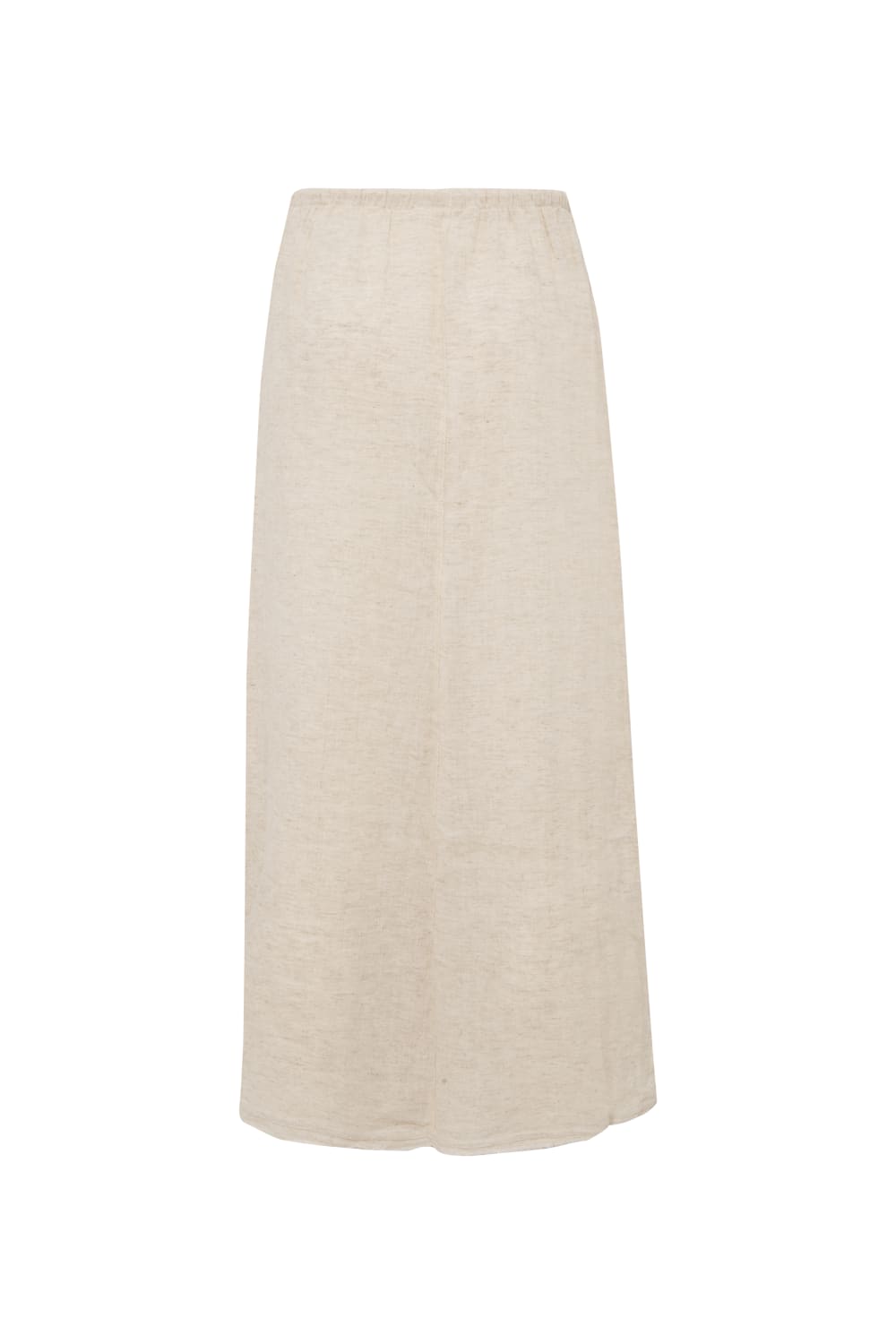 Keten Dokulu Kenar Detaylı Yırtmaçlı Ekru Etek