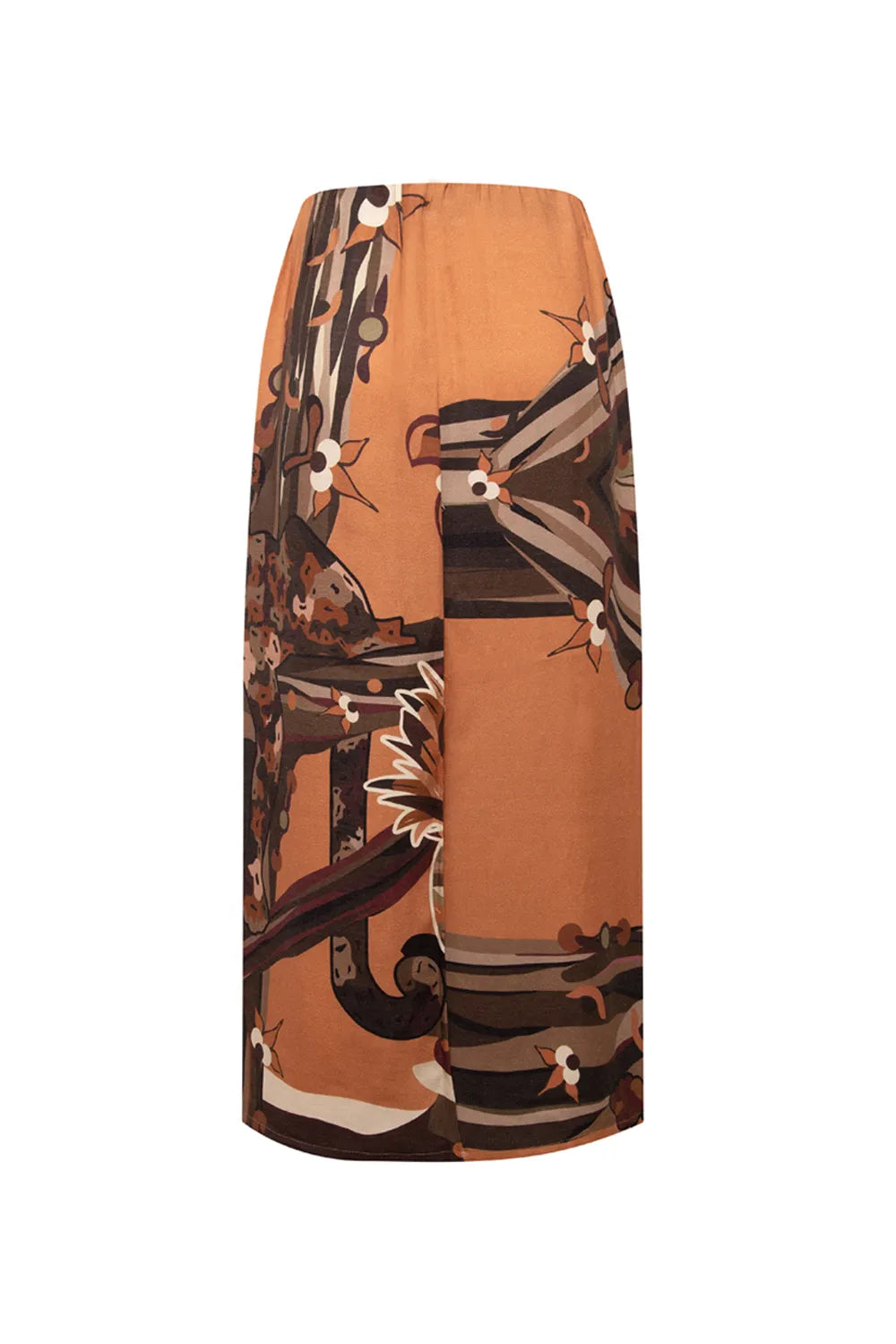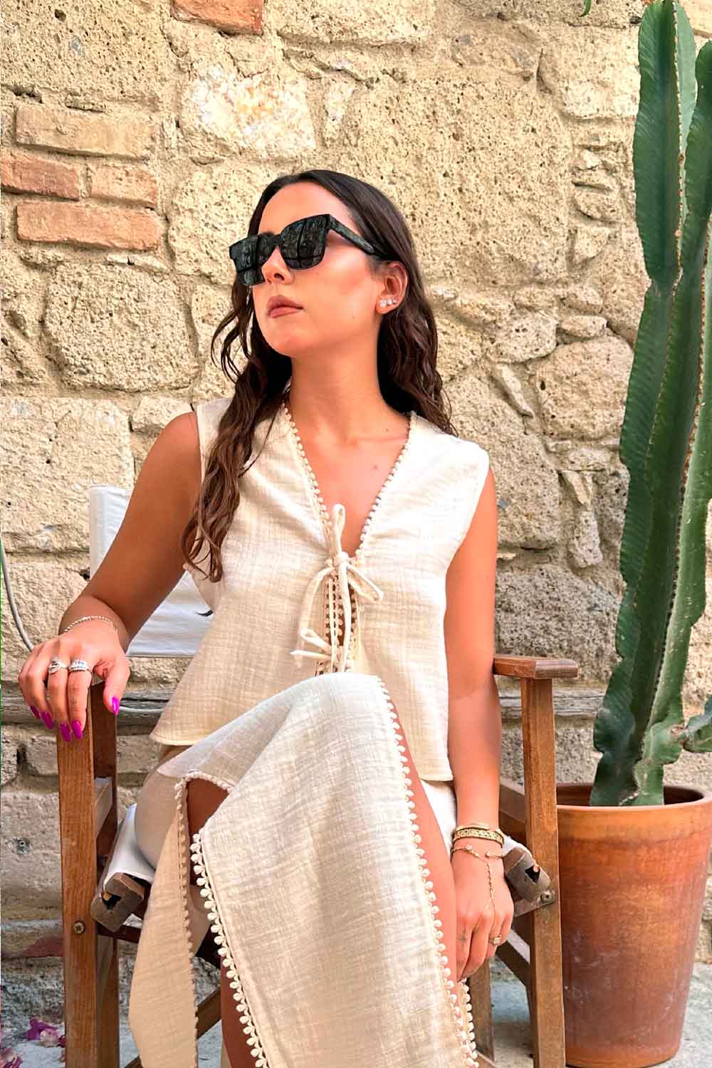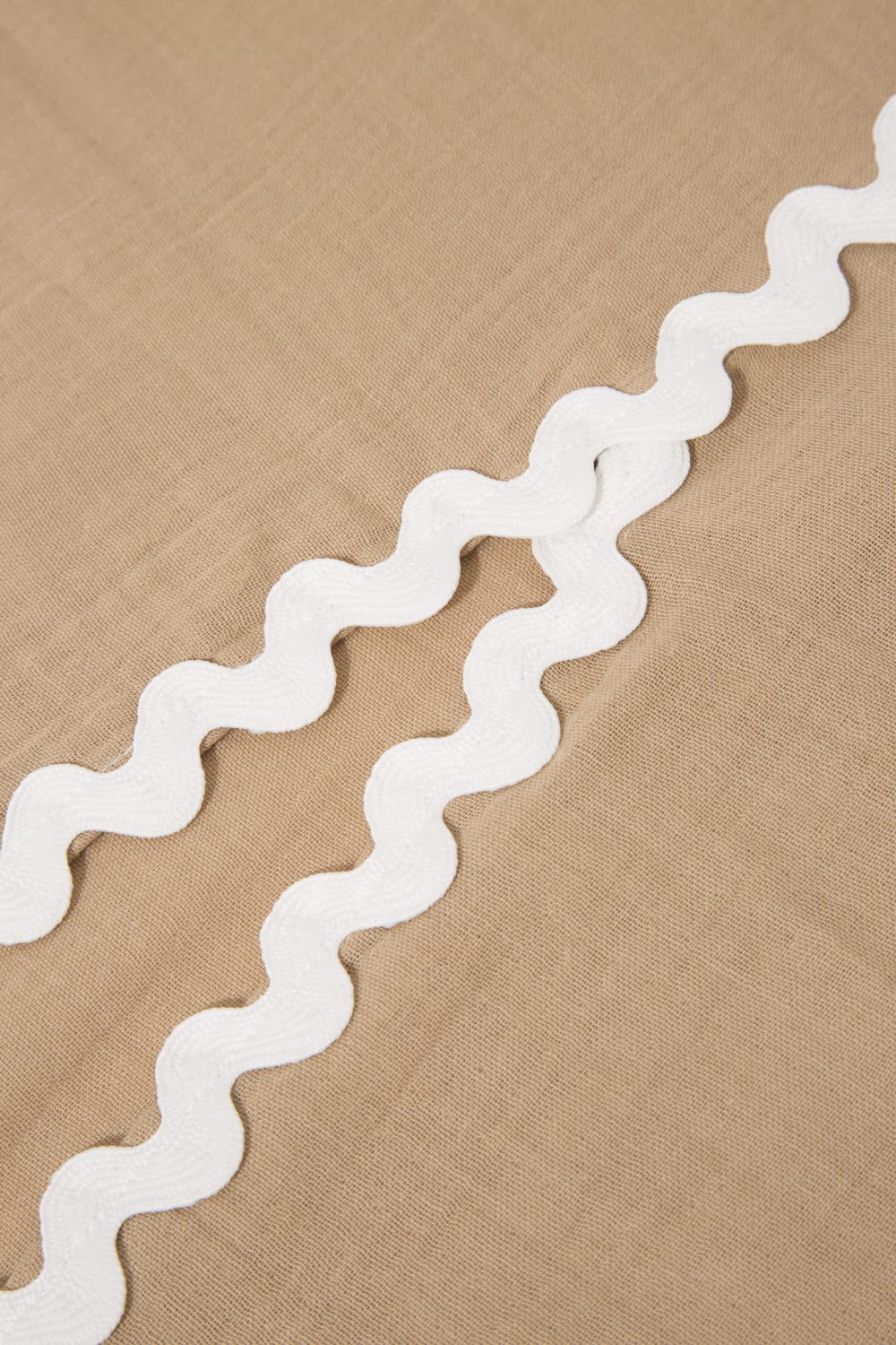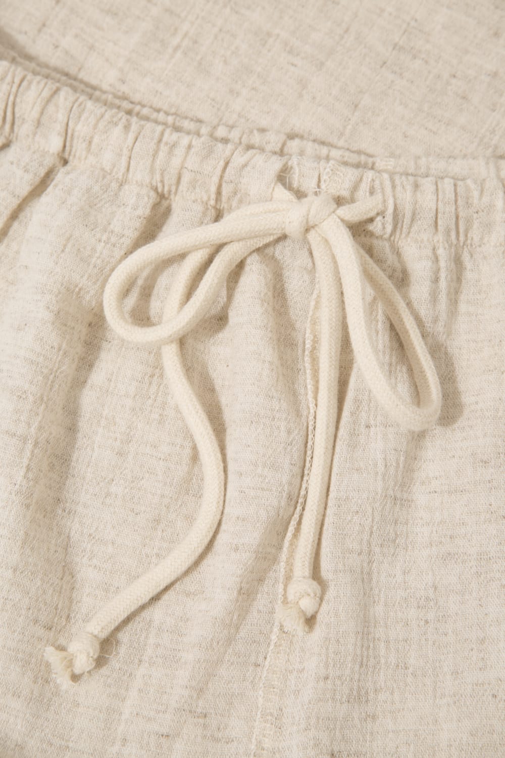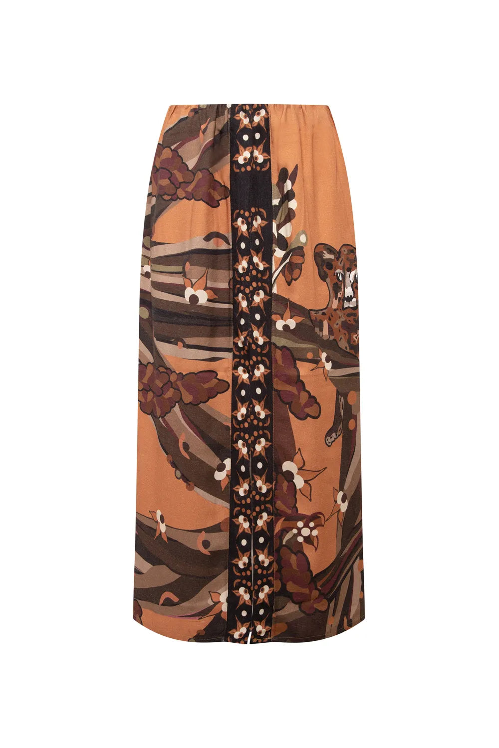 Keten Dokulu Kenar Detaylı Yırtmaçlı Ekru Etek