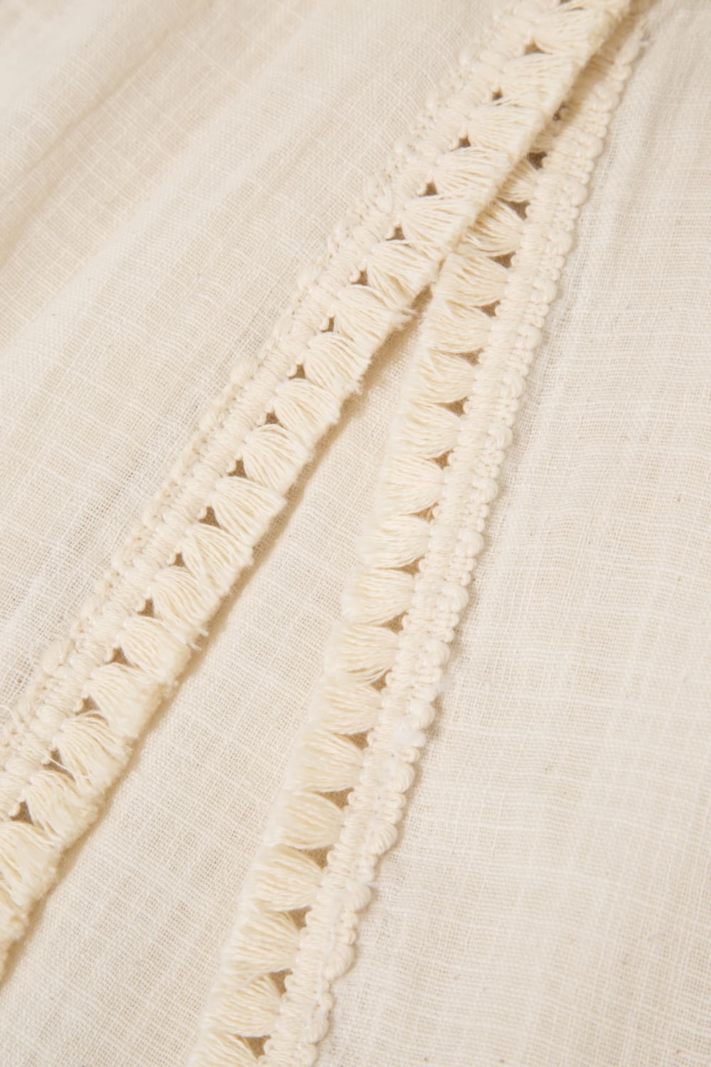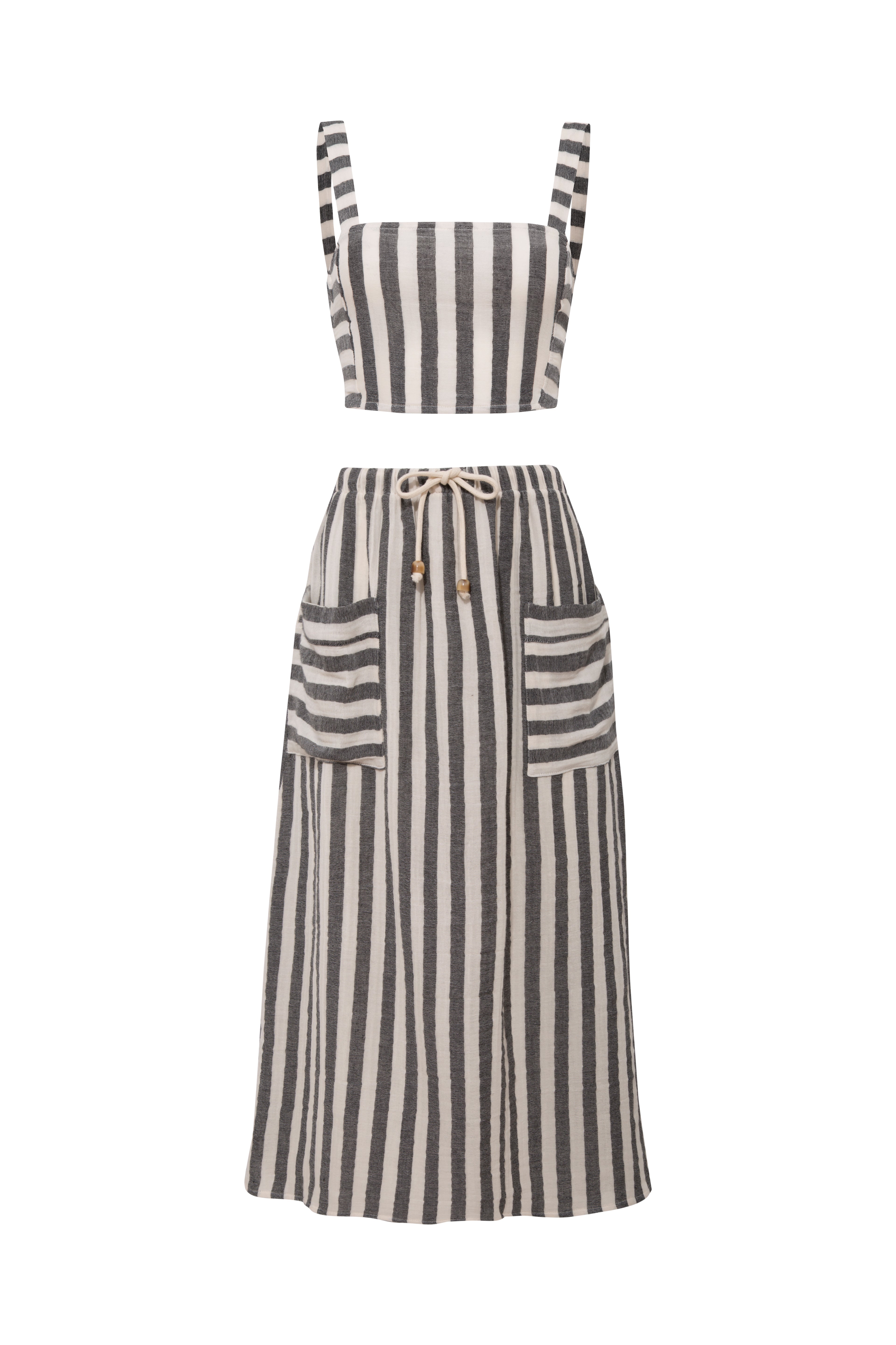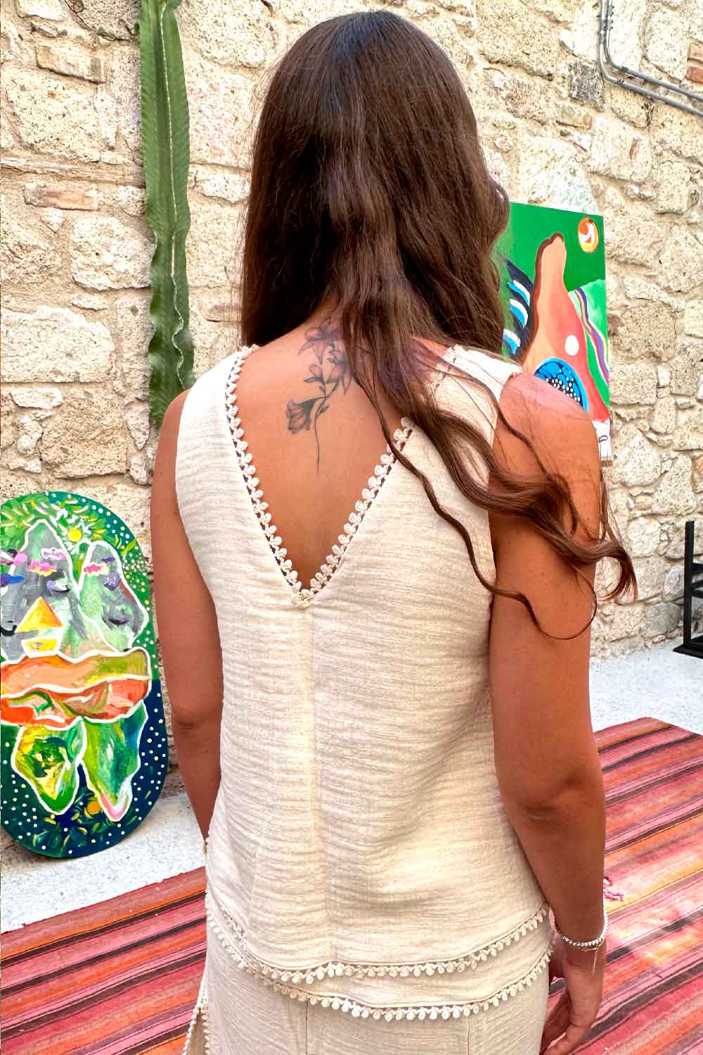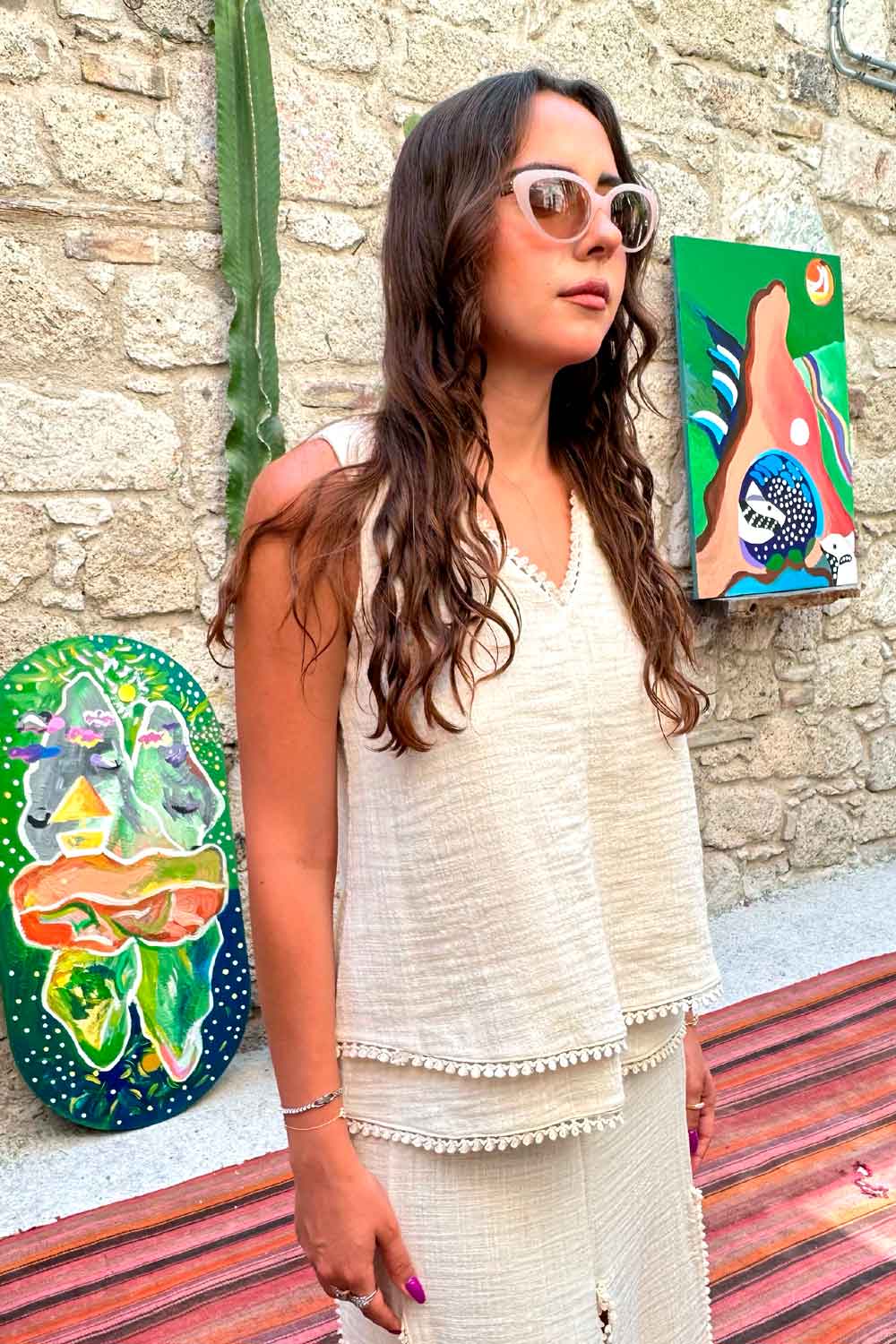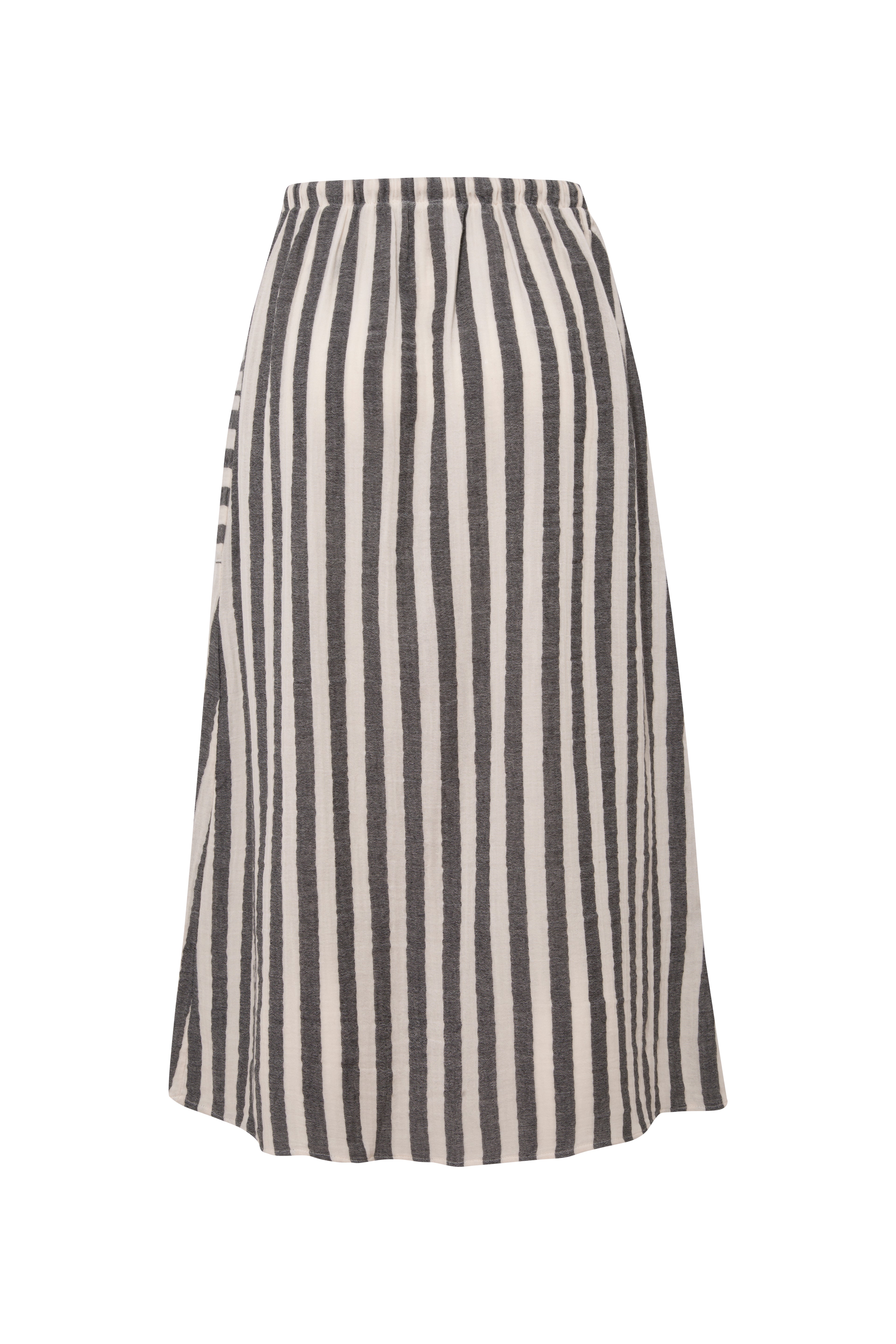 Keten Dokulu Kenar Detaylı Yırtmaçlı Ekru Etek