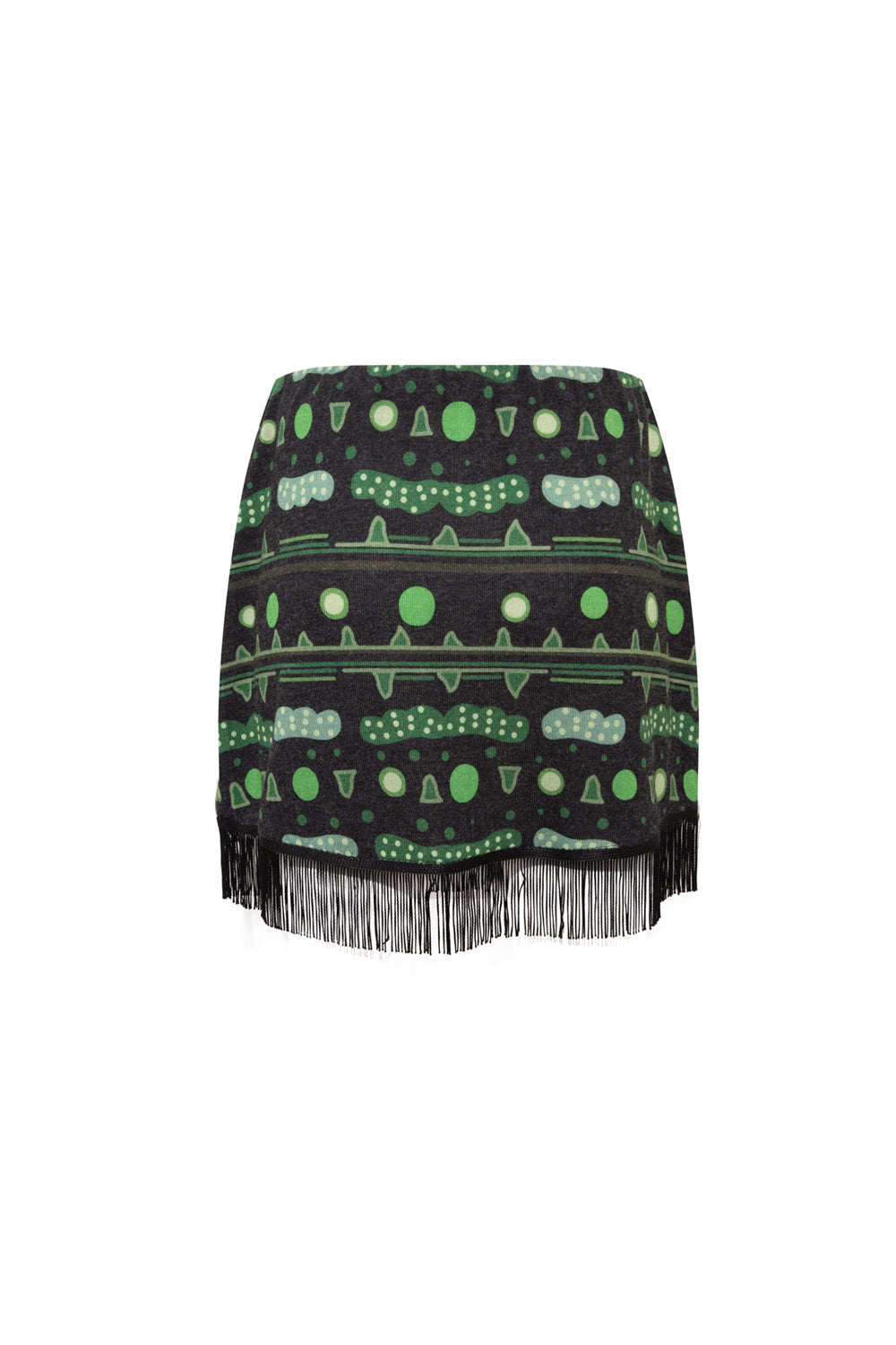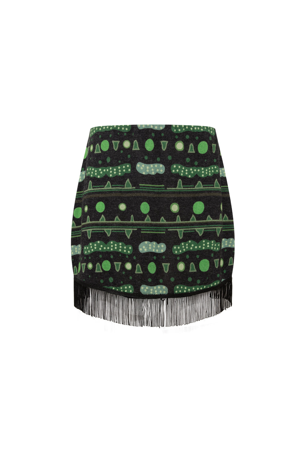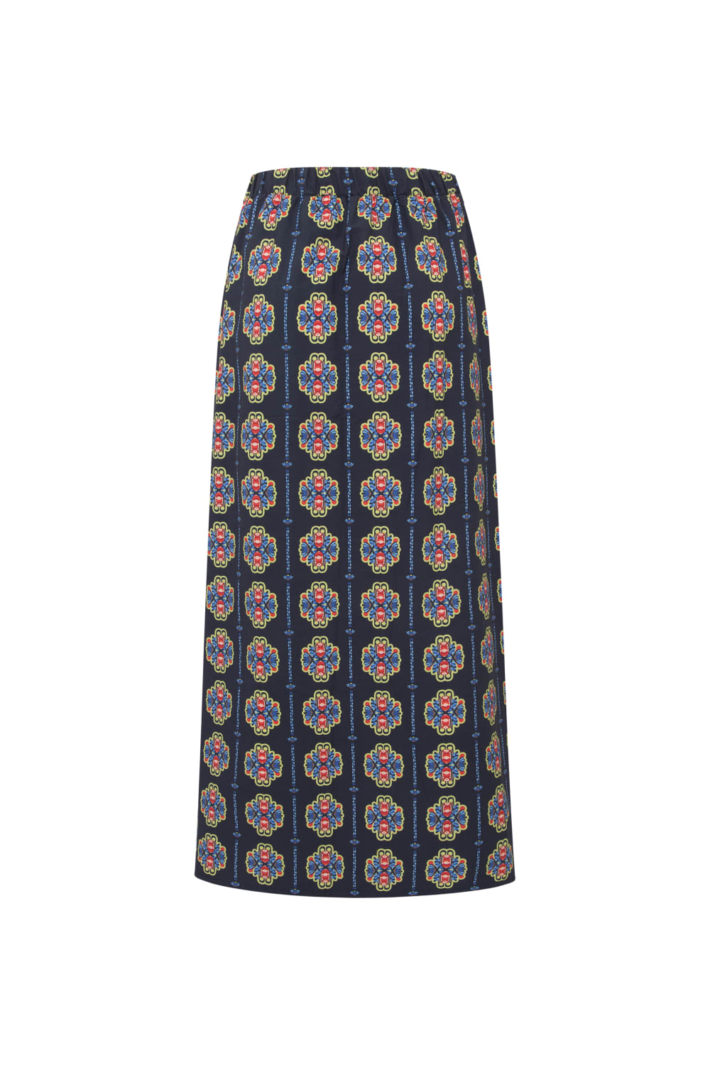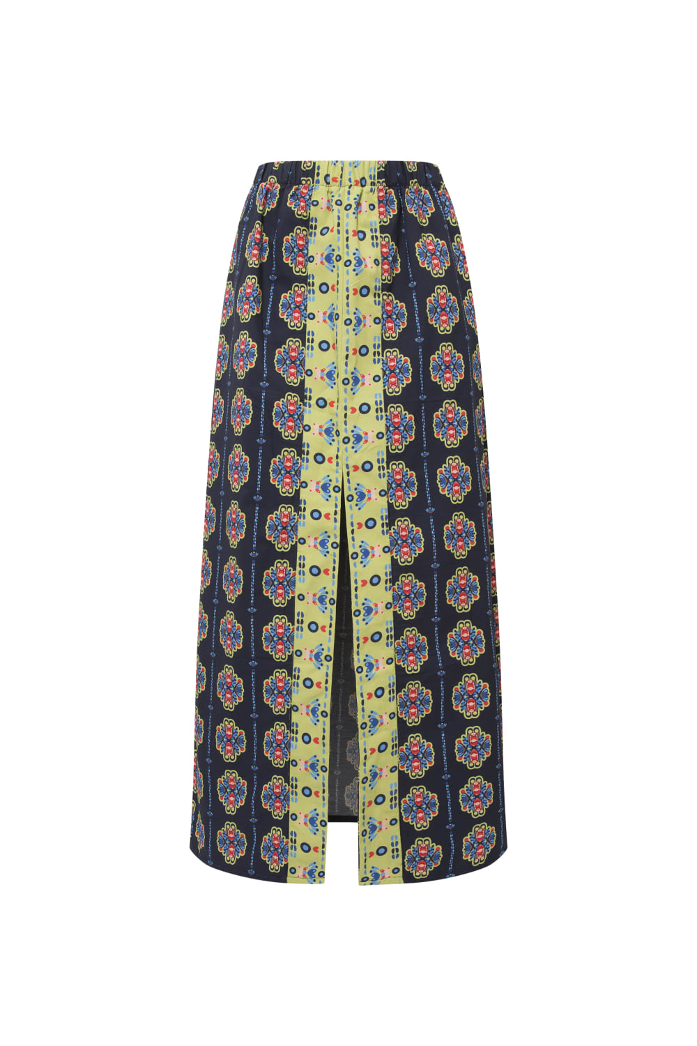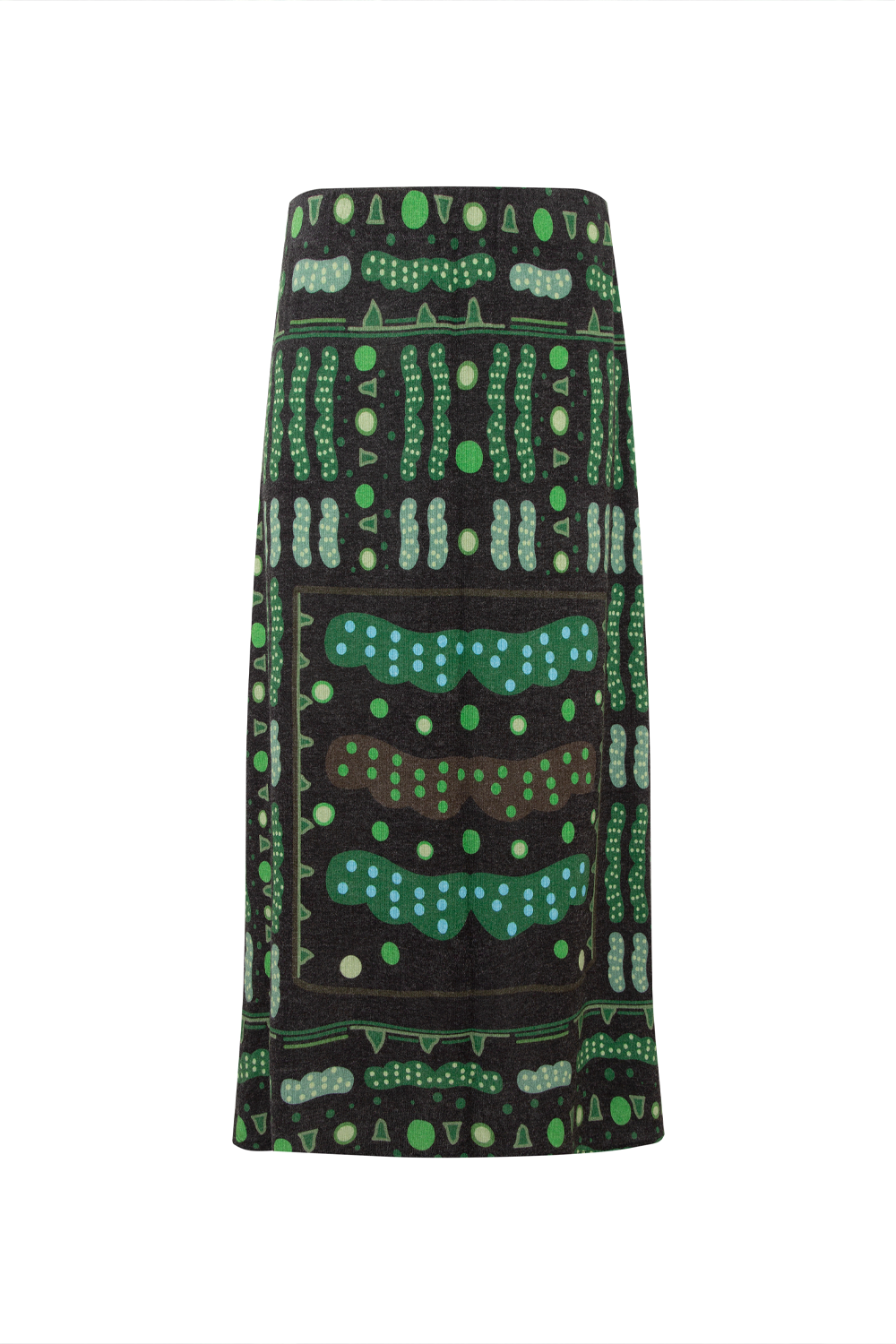 Siyah Balık Desenli Kat Detaylı Önden Yırtmaçlı Uzun Etek