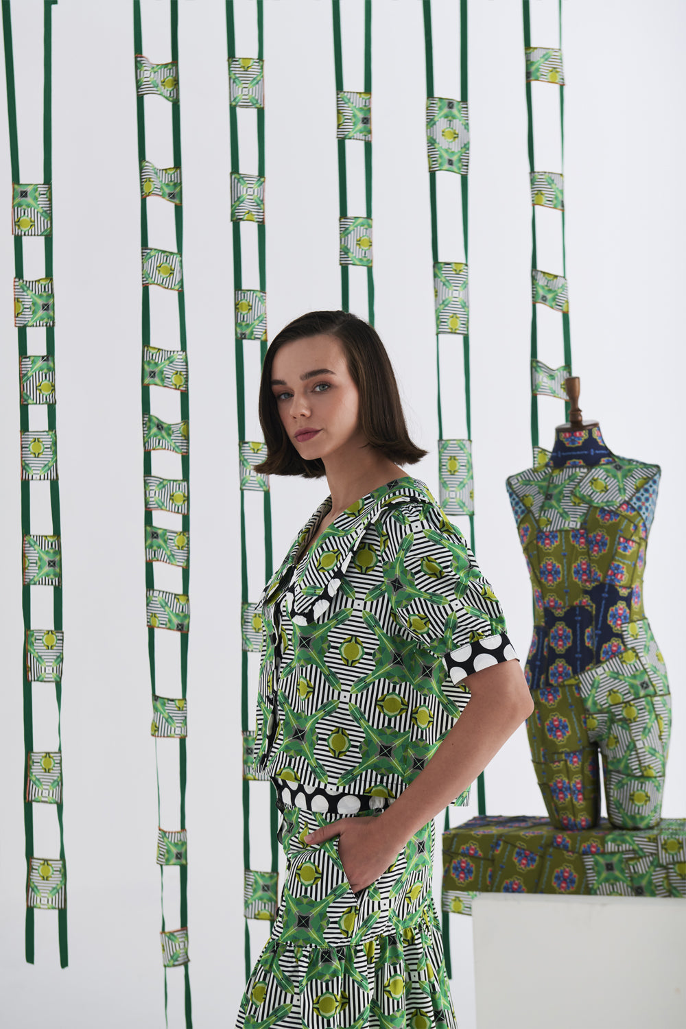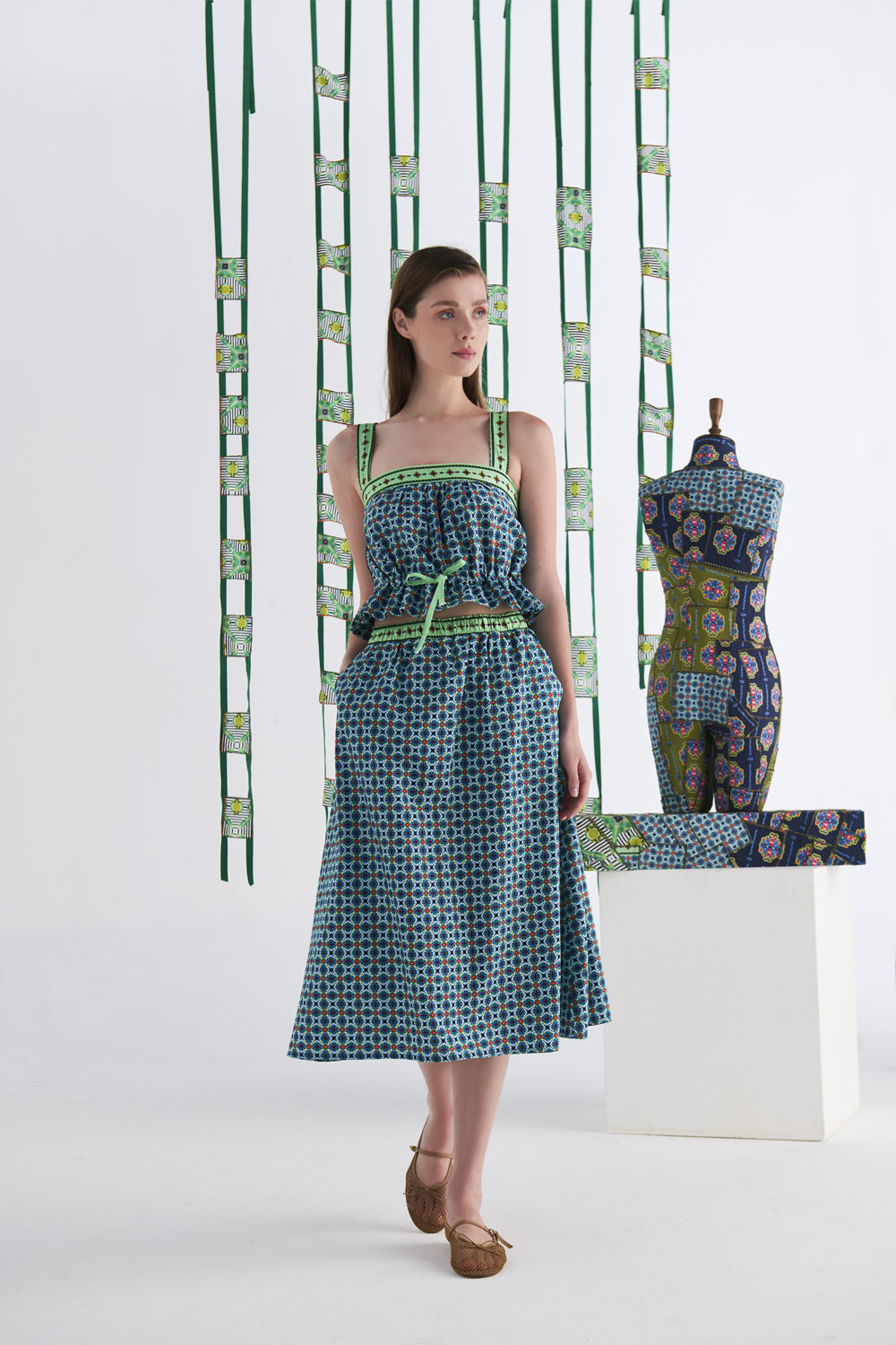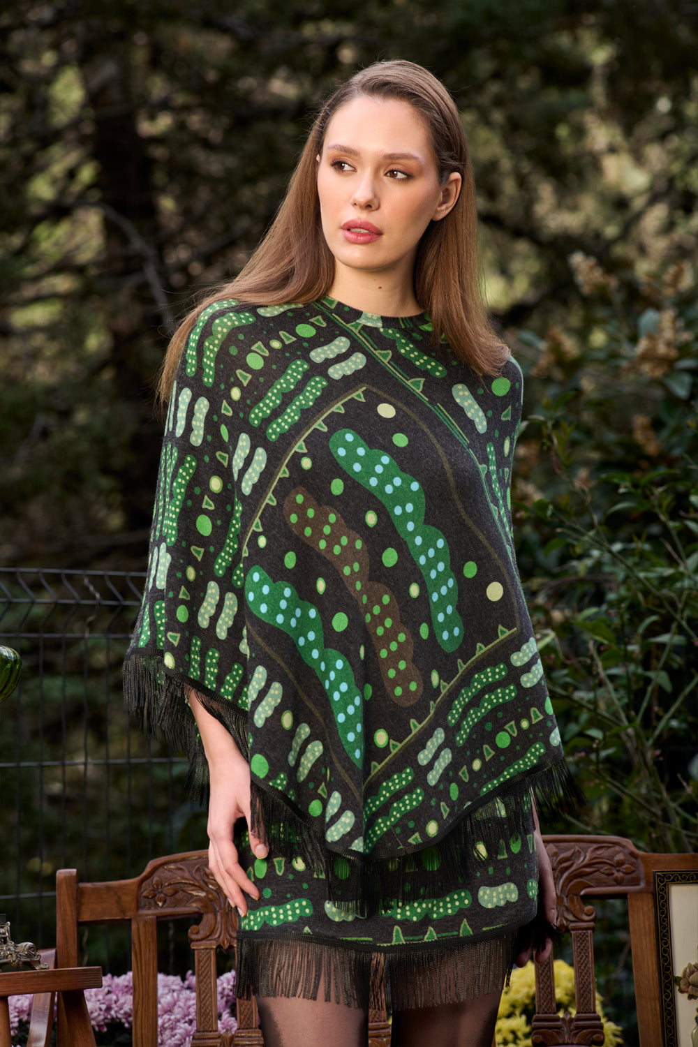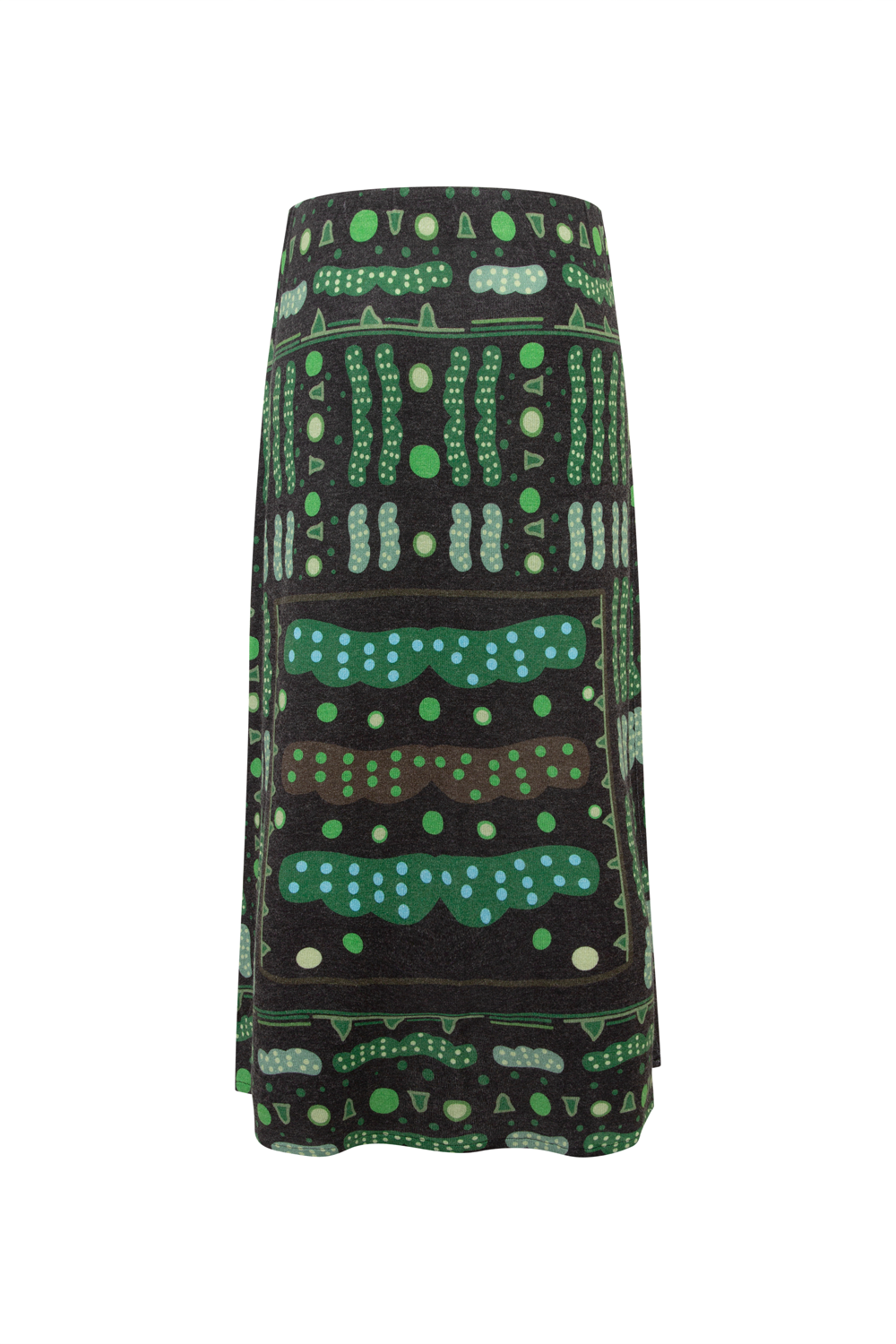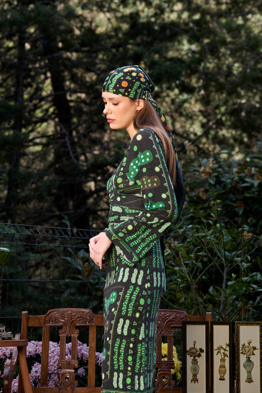 Siyah Balık Desenli Kat Detaylı Önden Yırtmaçlı Uzun Etek