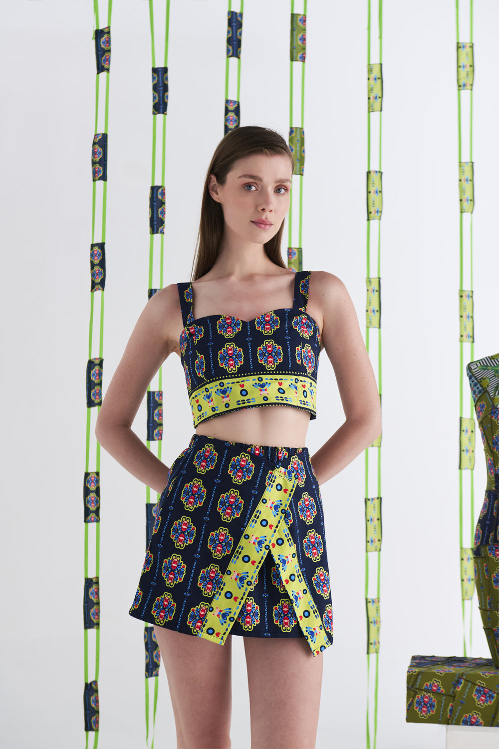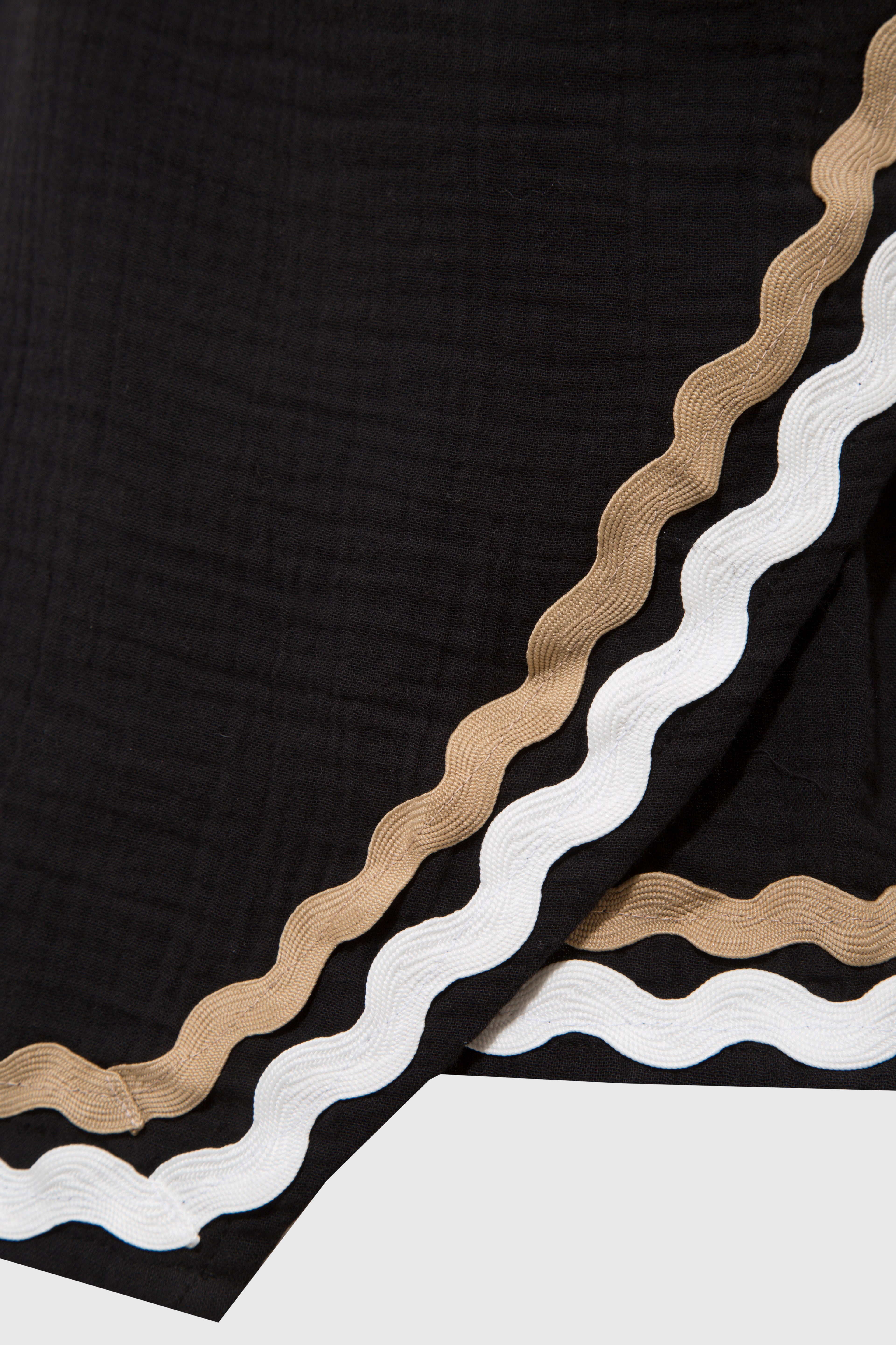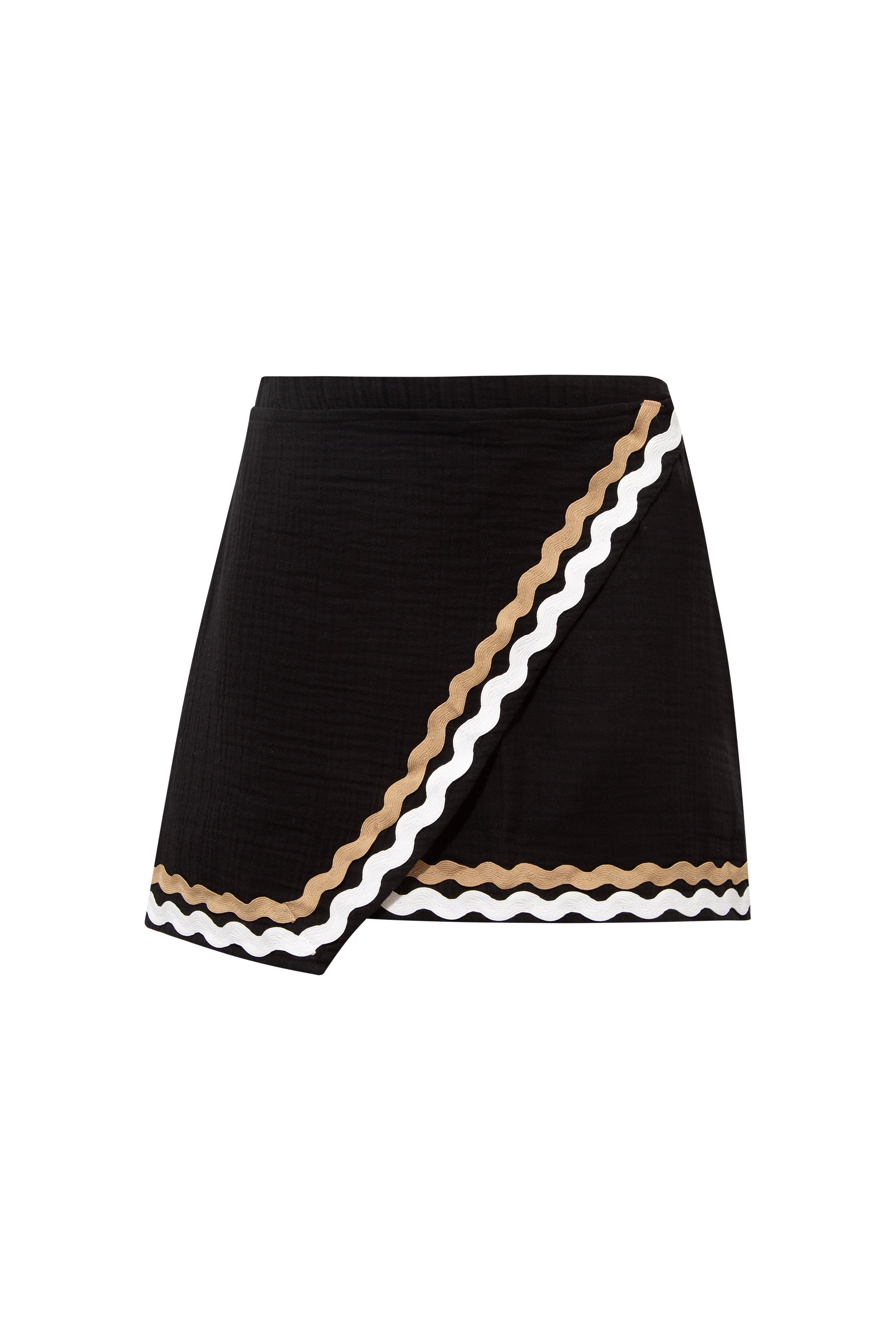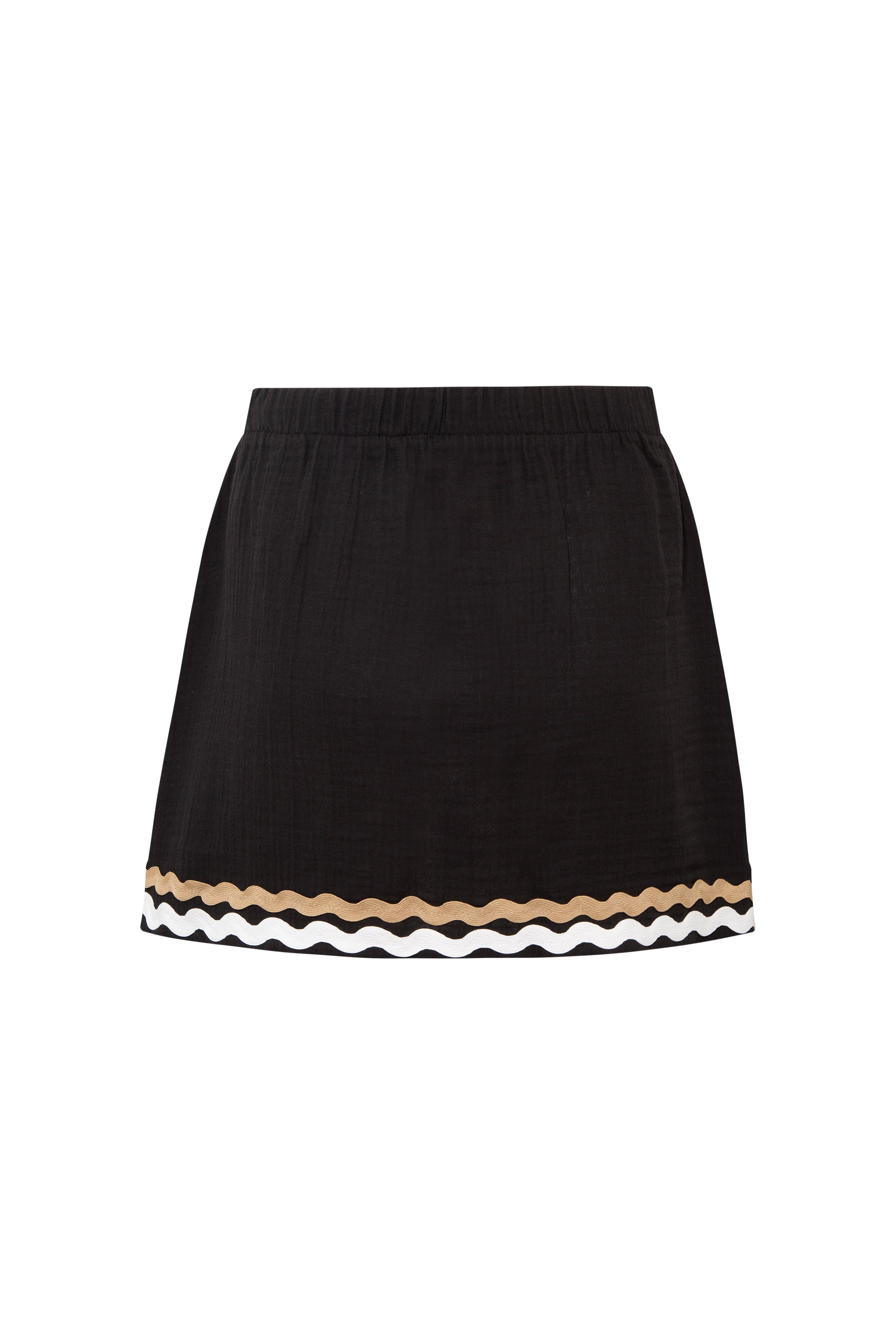 Çift Su Taşı Detaylı Siyah Mini Etek