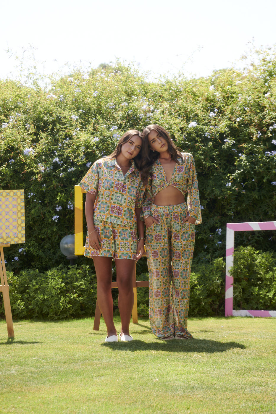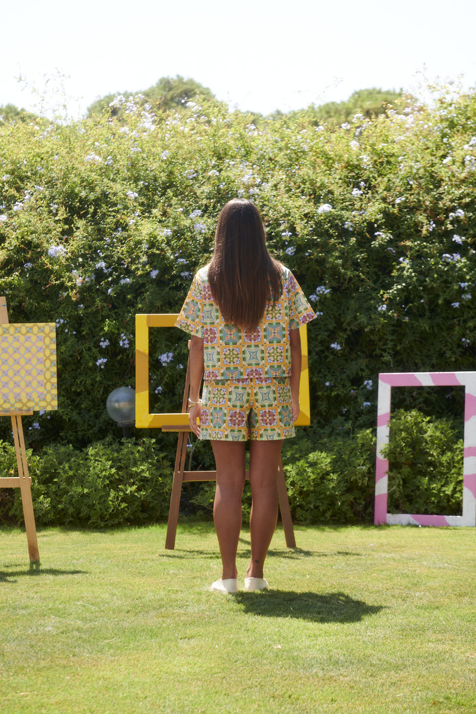 Girlfriend Geometrik Desenli Kısa Kol Gömlek