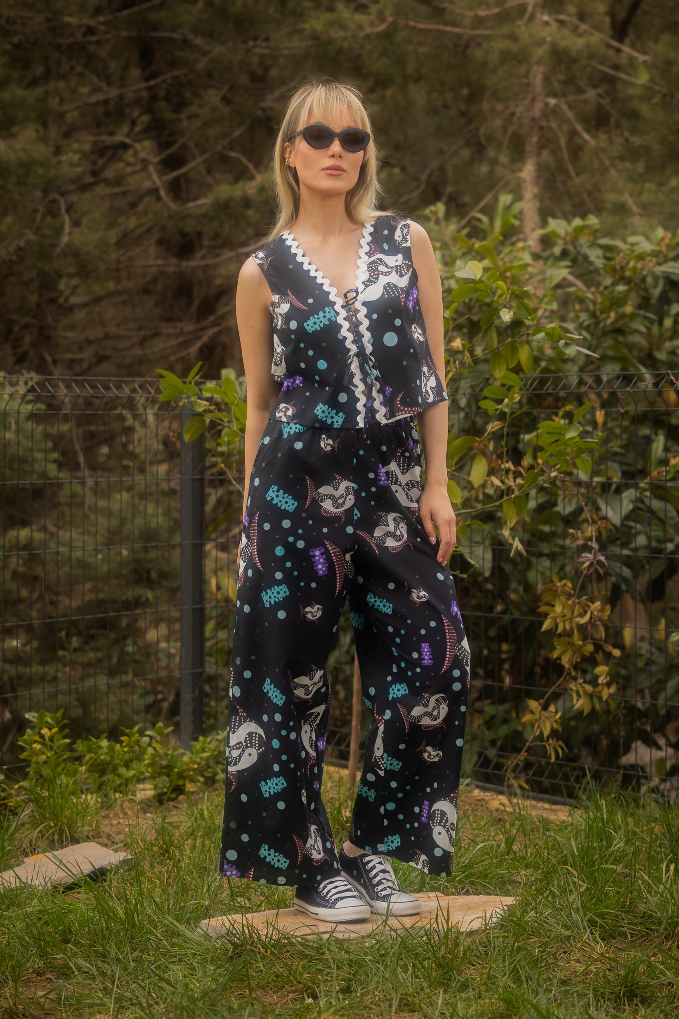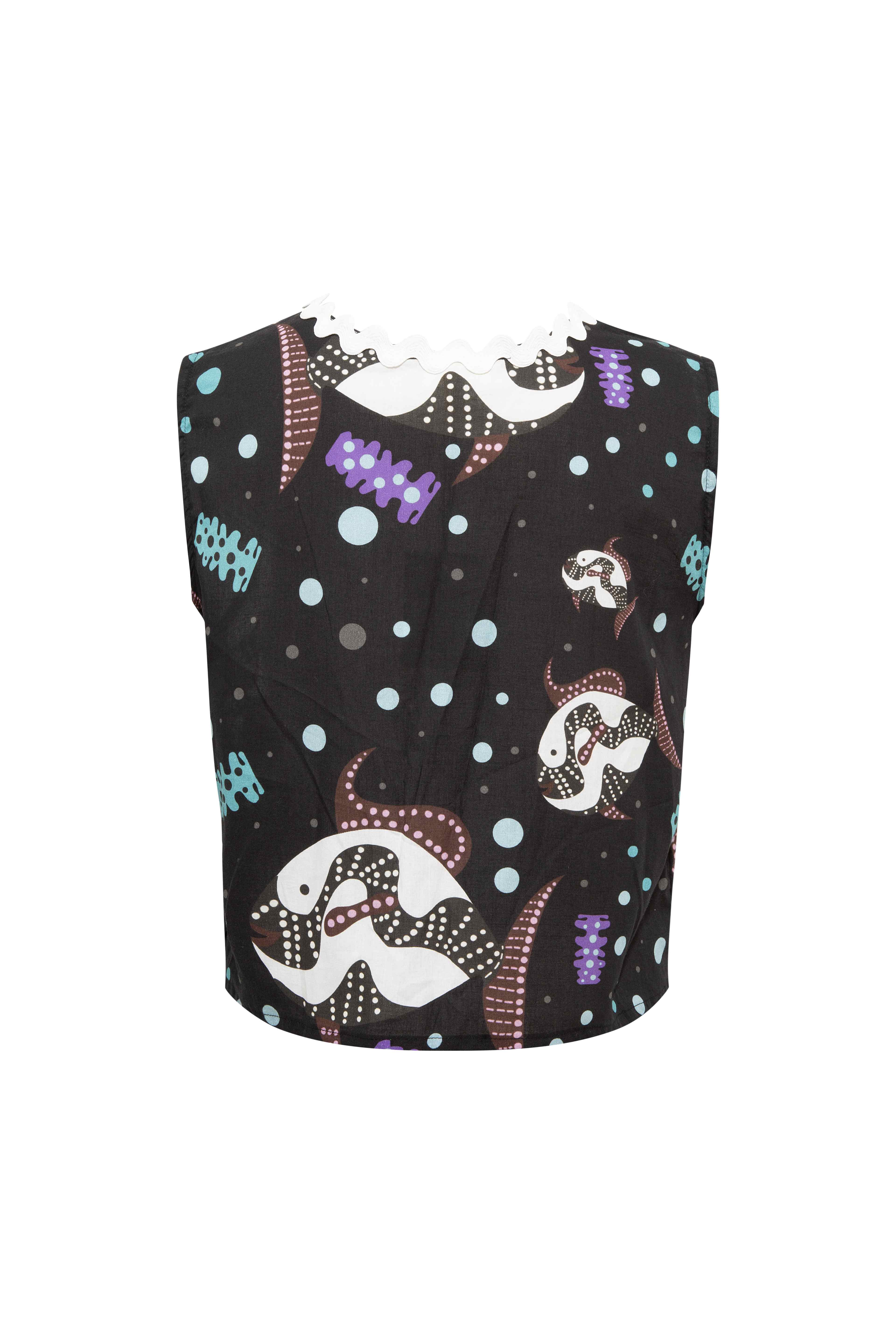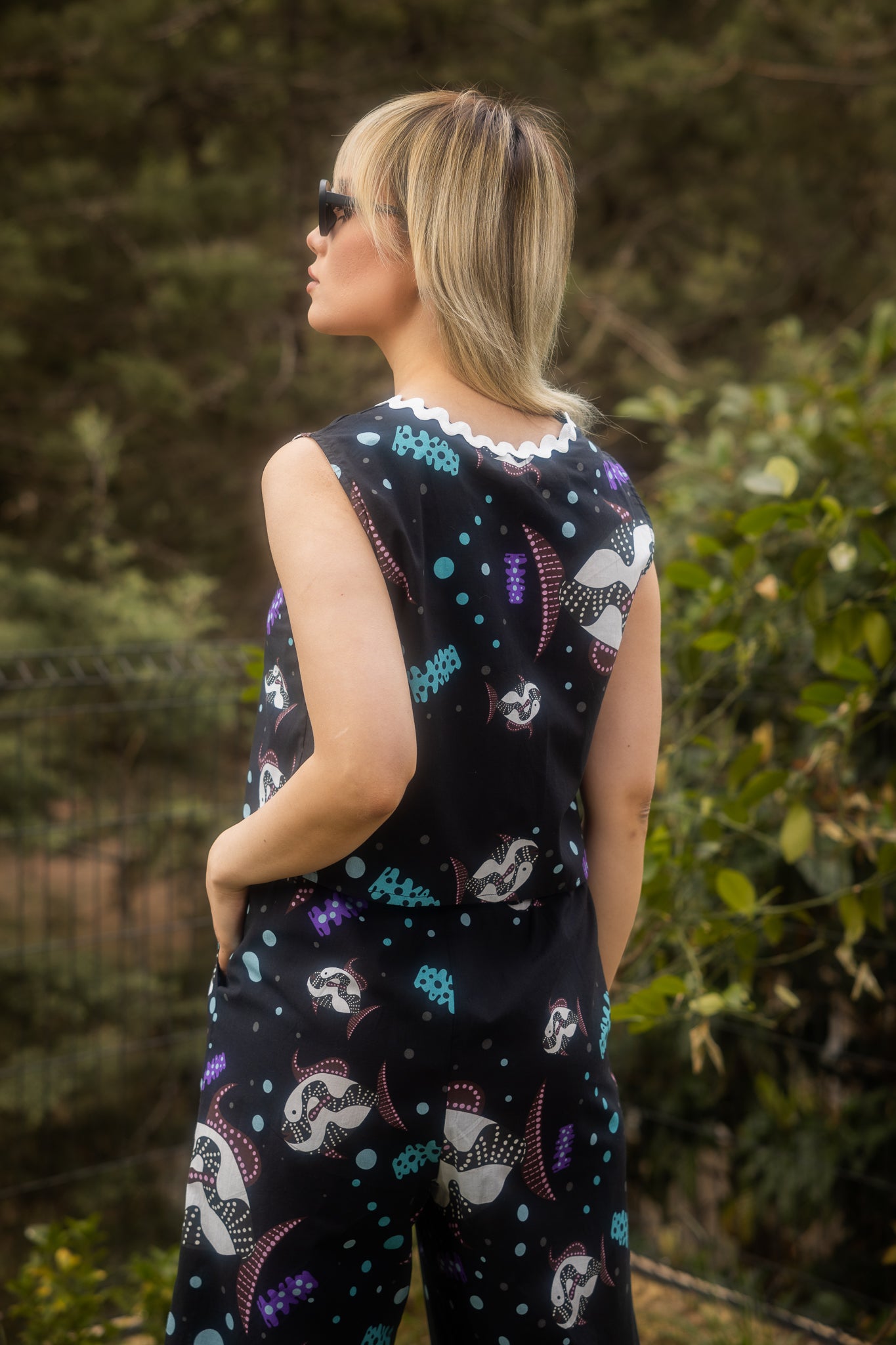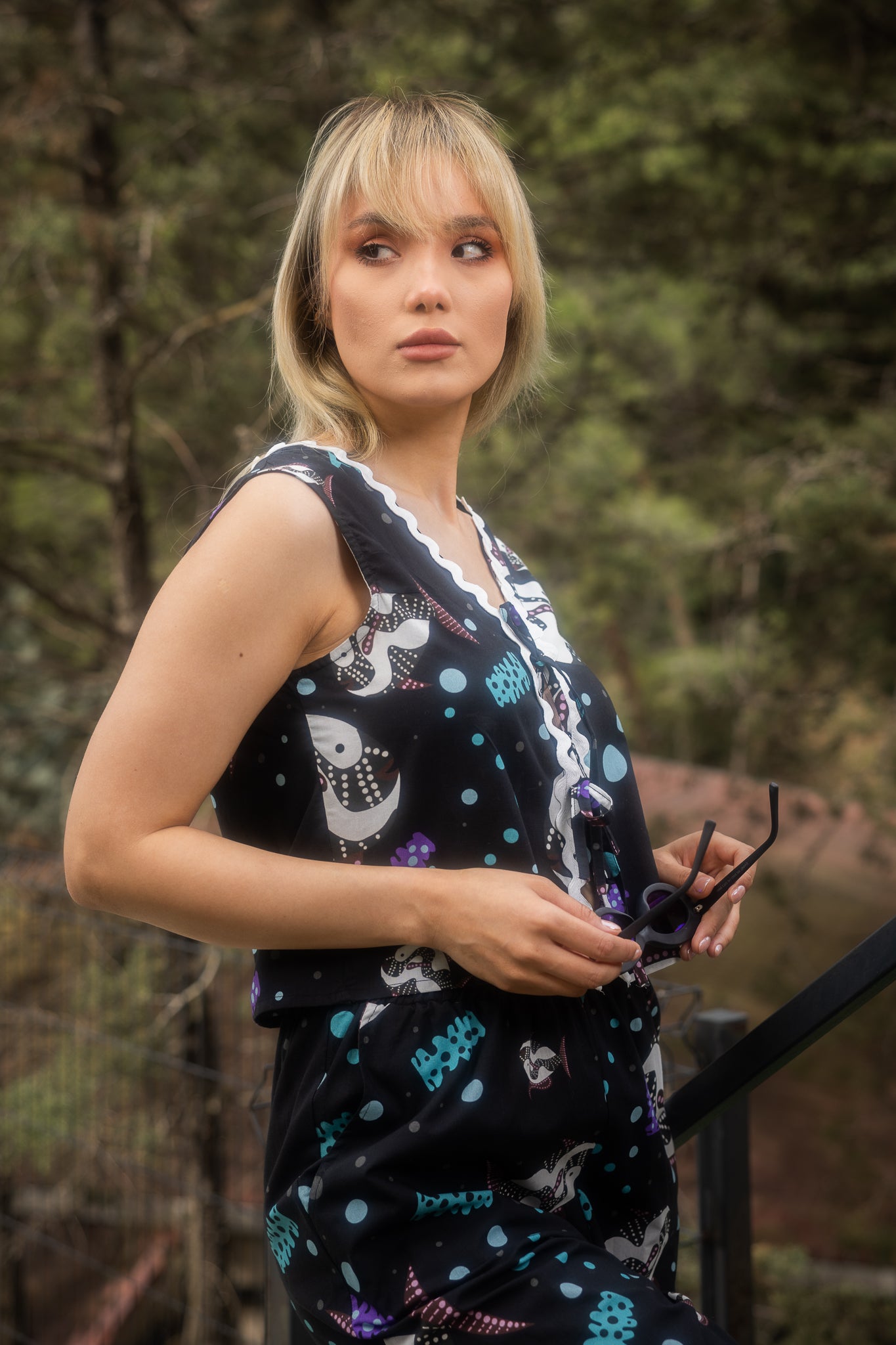 Siyah Balık Desenli Sırt Detaylı Bluz
