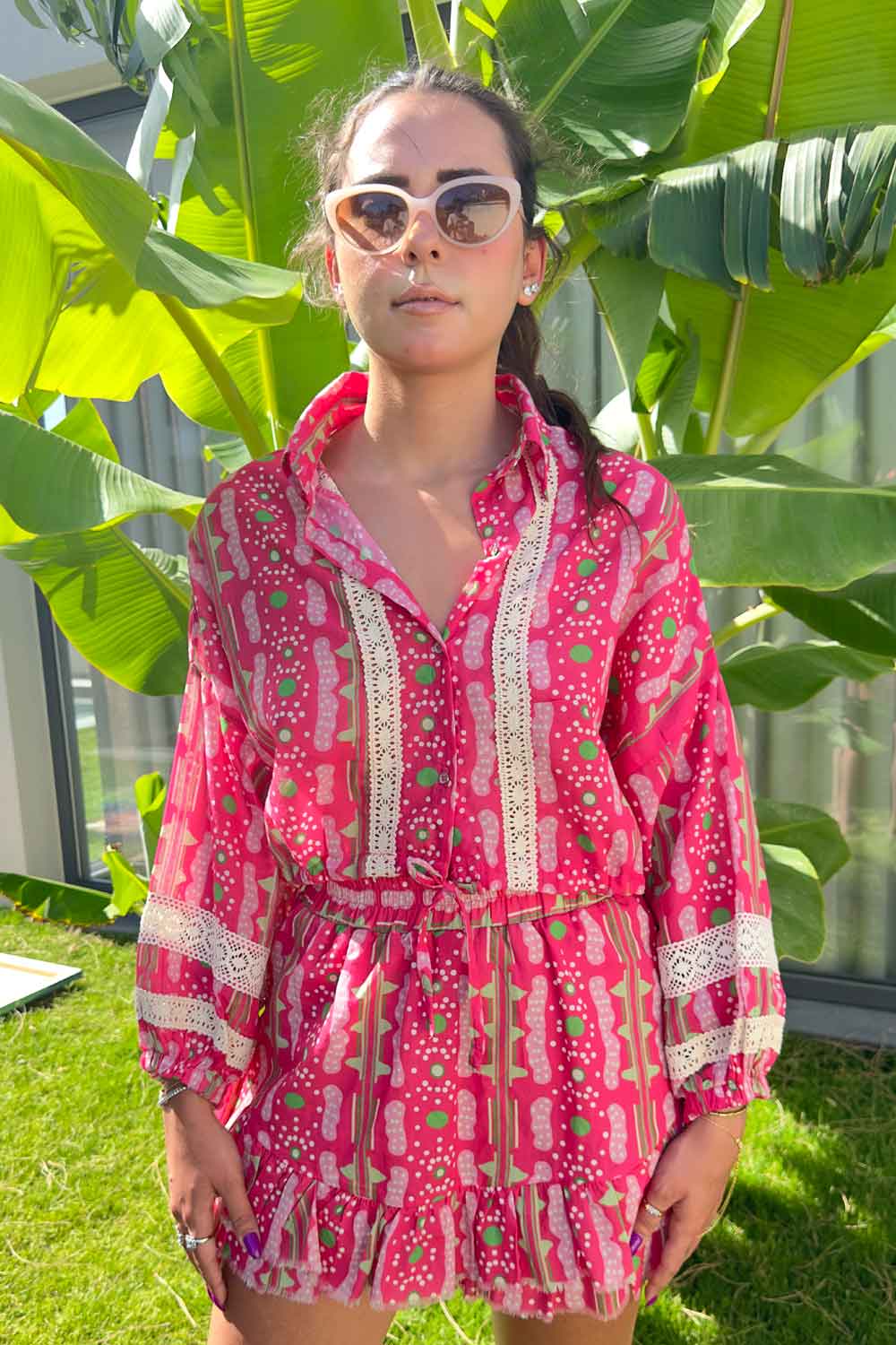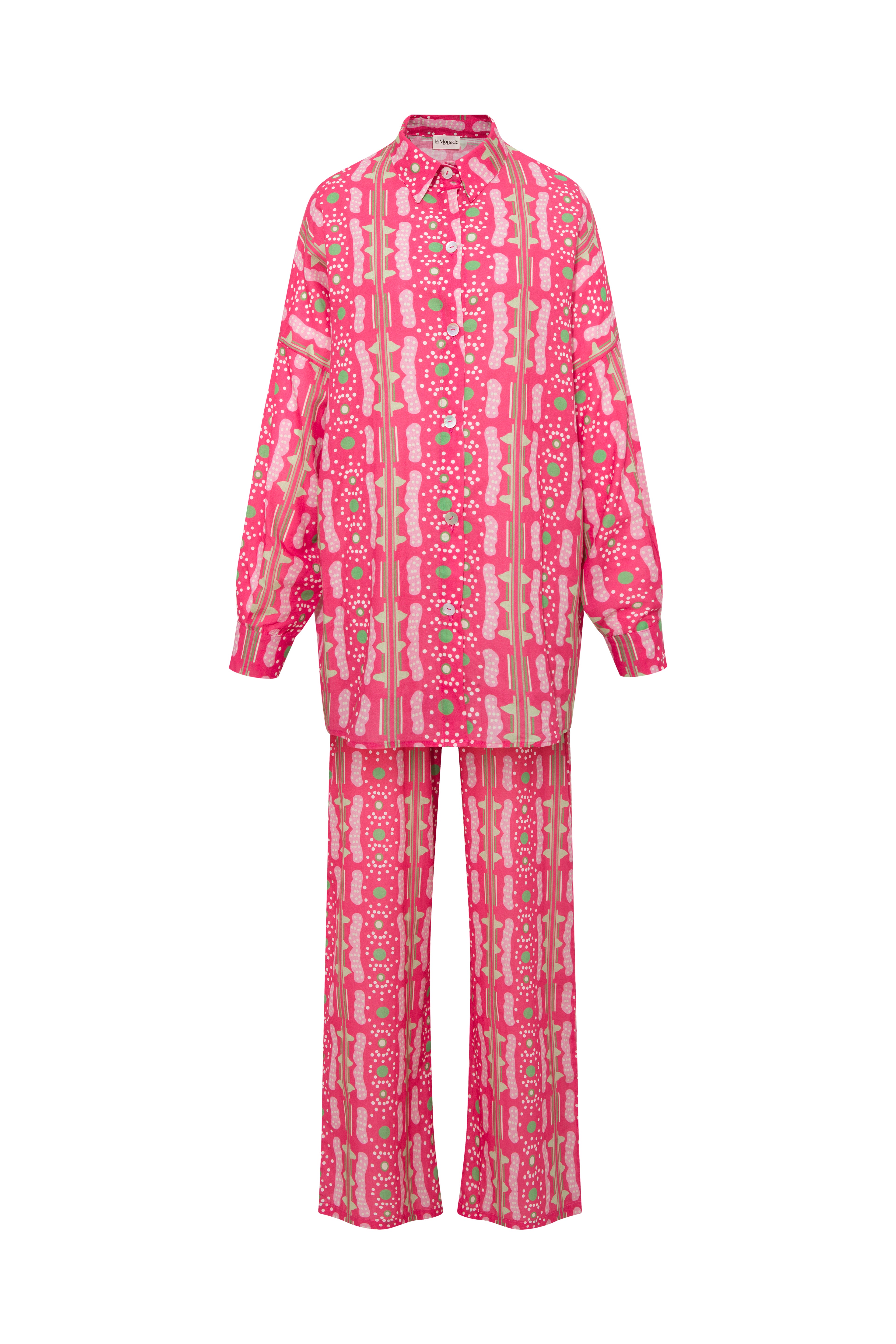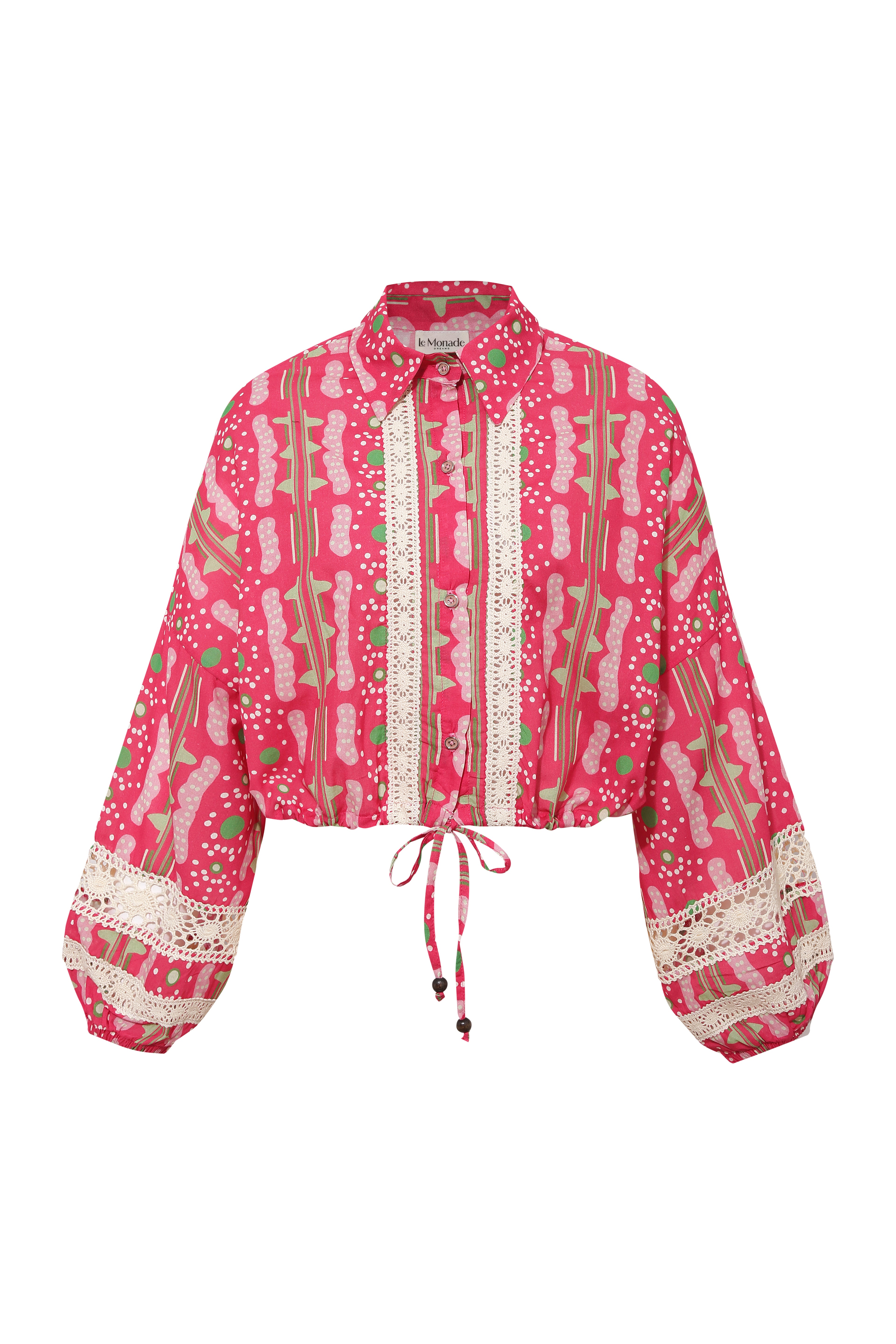 Pembe Bulut Desenli Kopanaki Detaylı Uzun Kol Gömlek