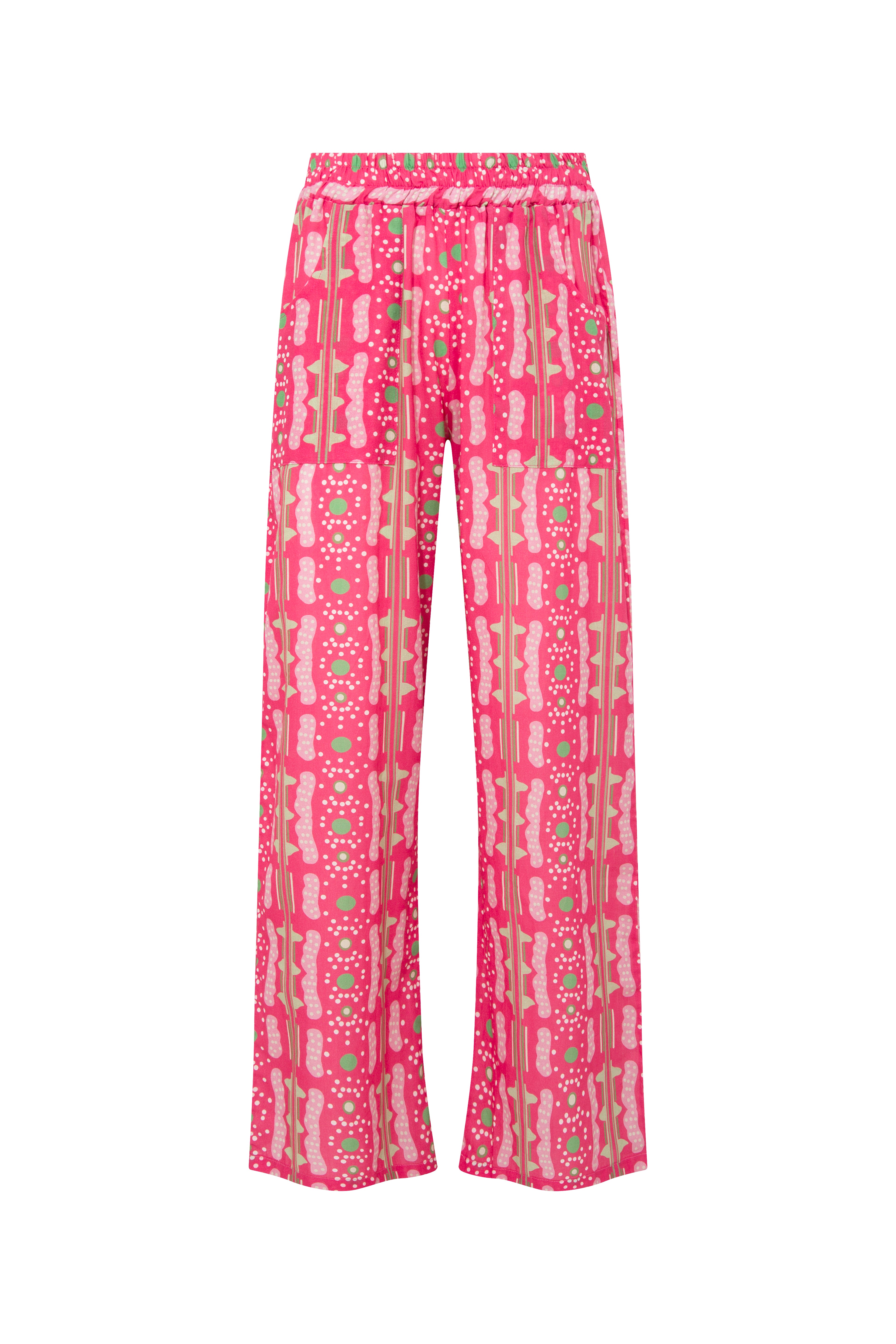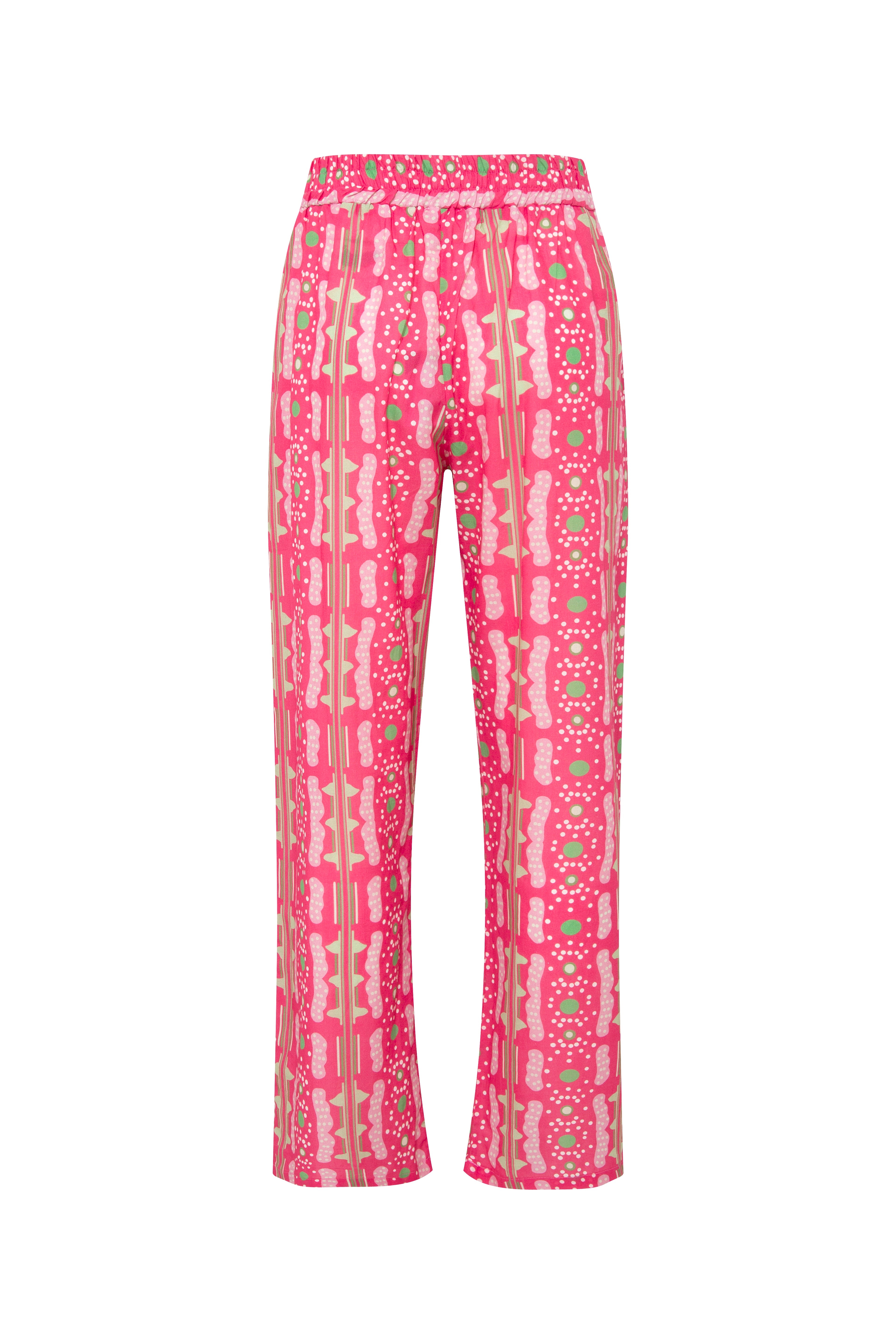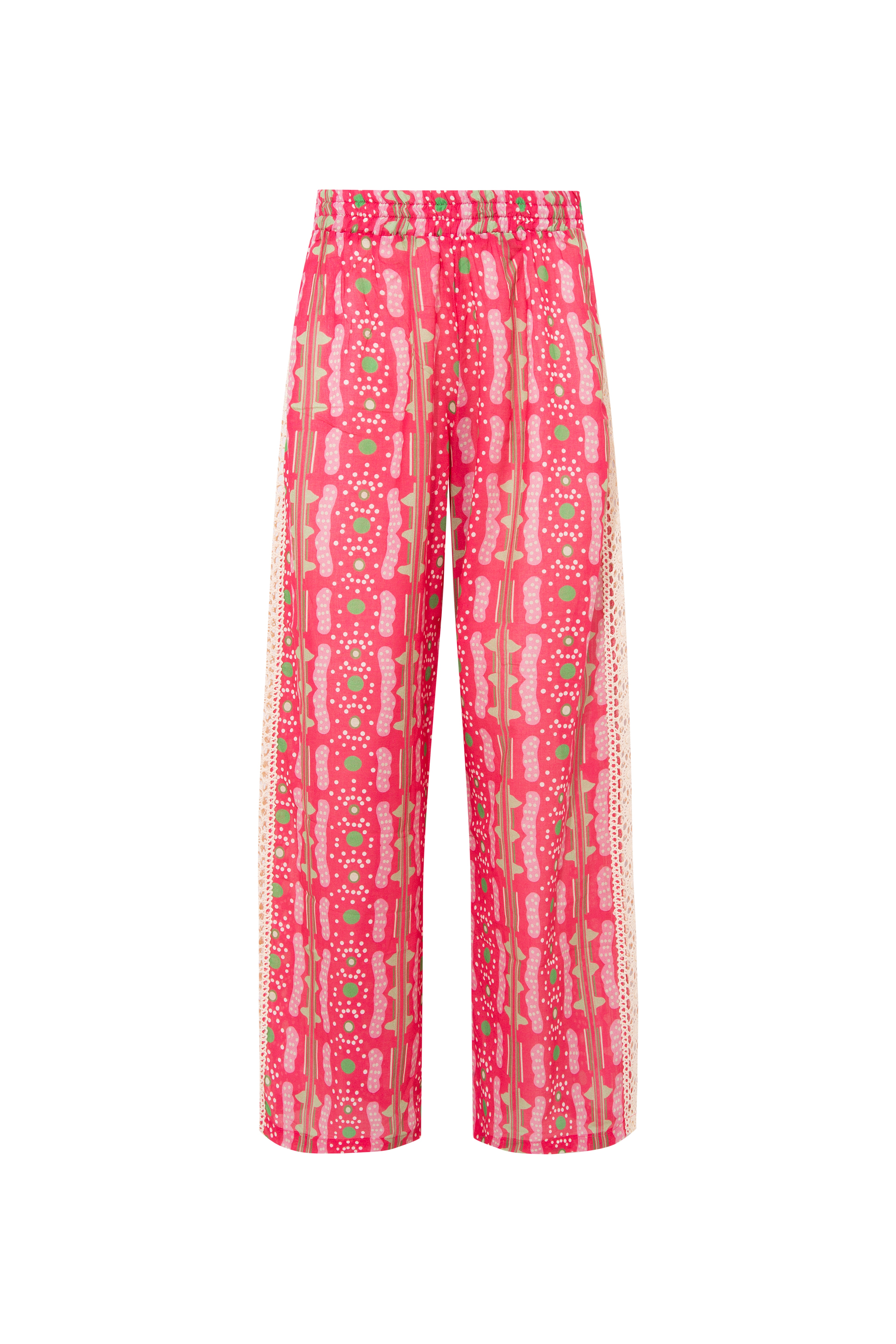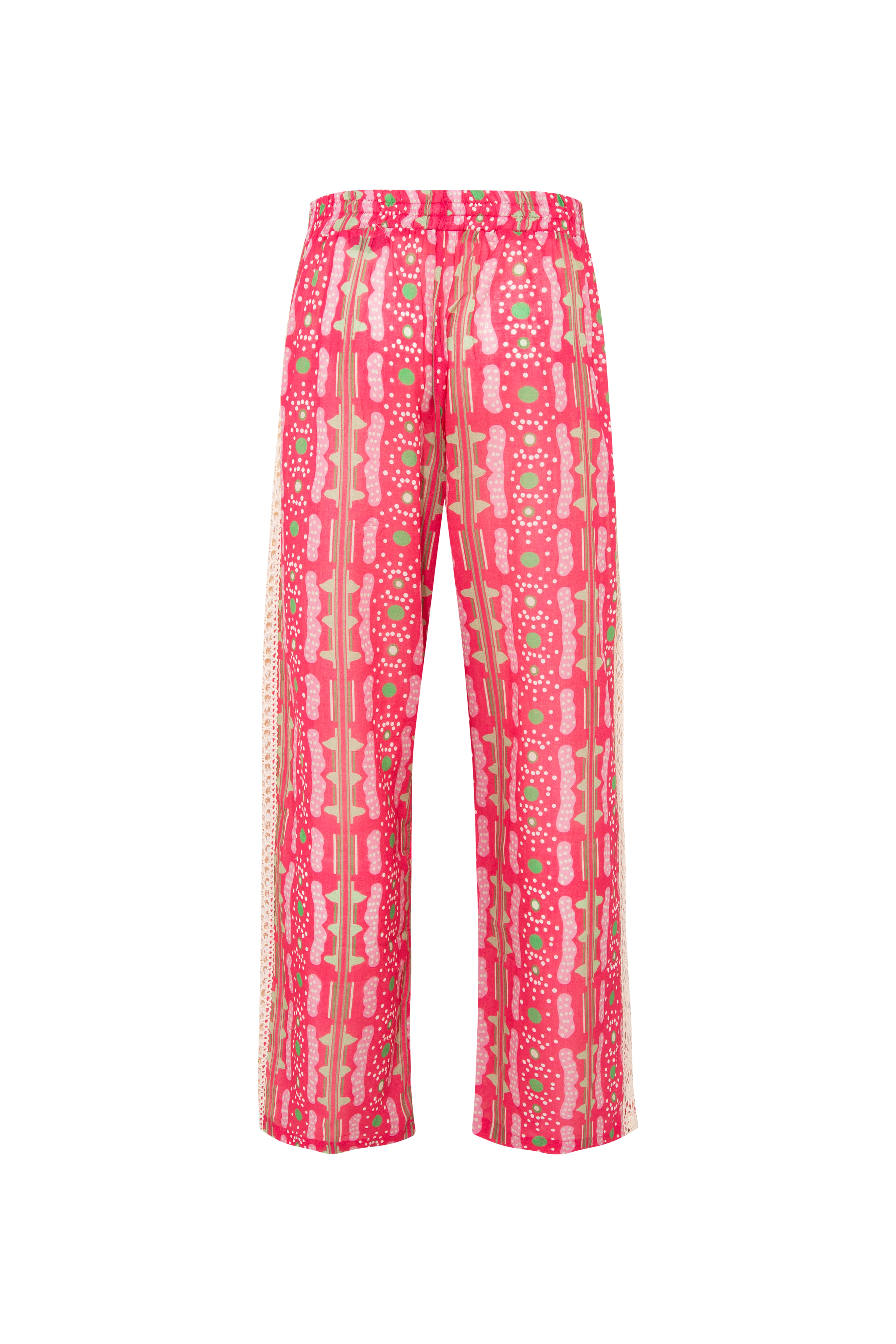 Pembe Bulut Desenli Kopanaki Detaylı Pantolon