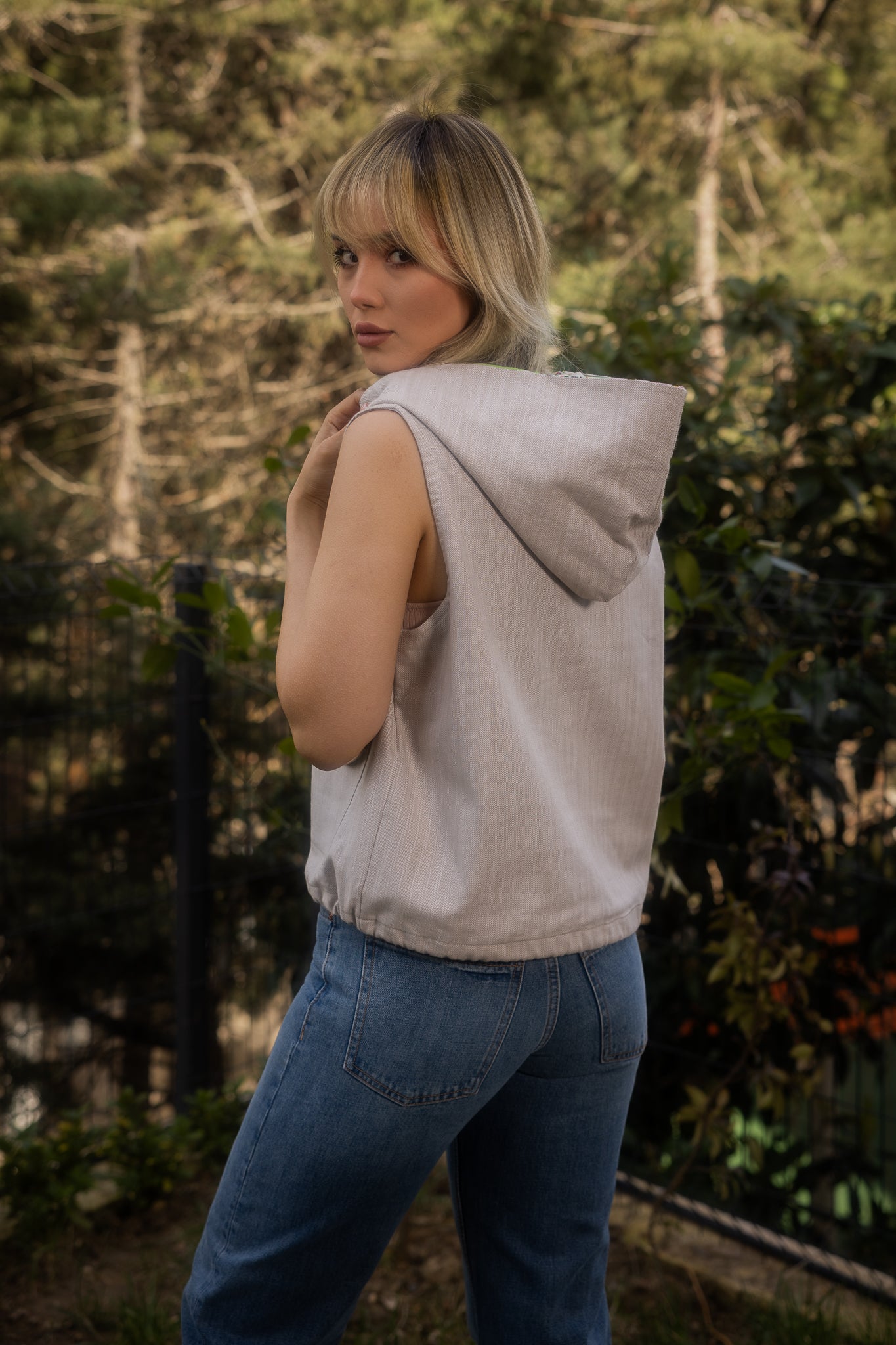 Kapüşon yaka ve önden bağcık detaylı olan ürün patch birleşimleri ile şık bir görünüm sunmaktadır.