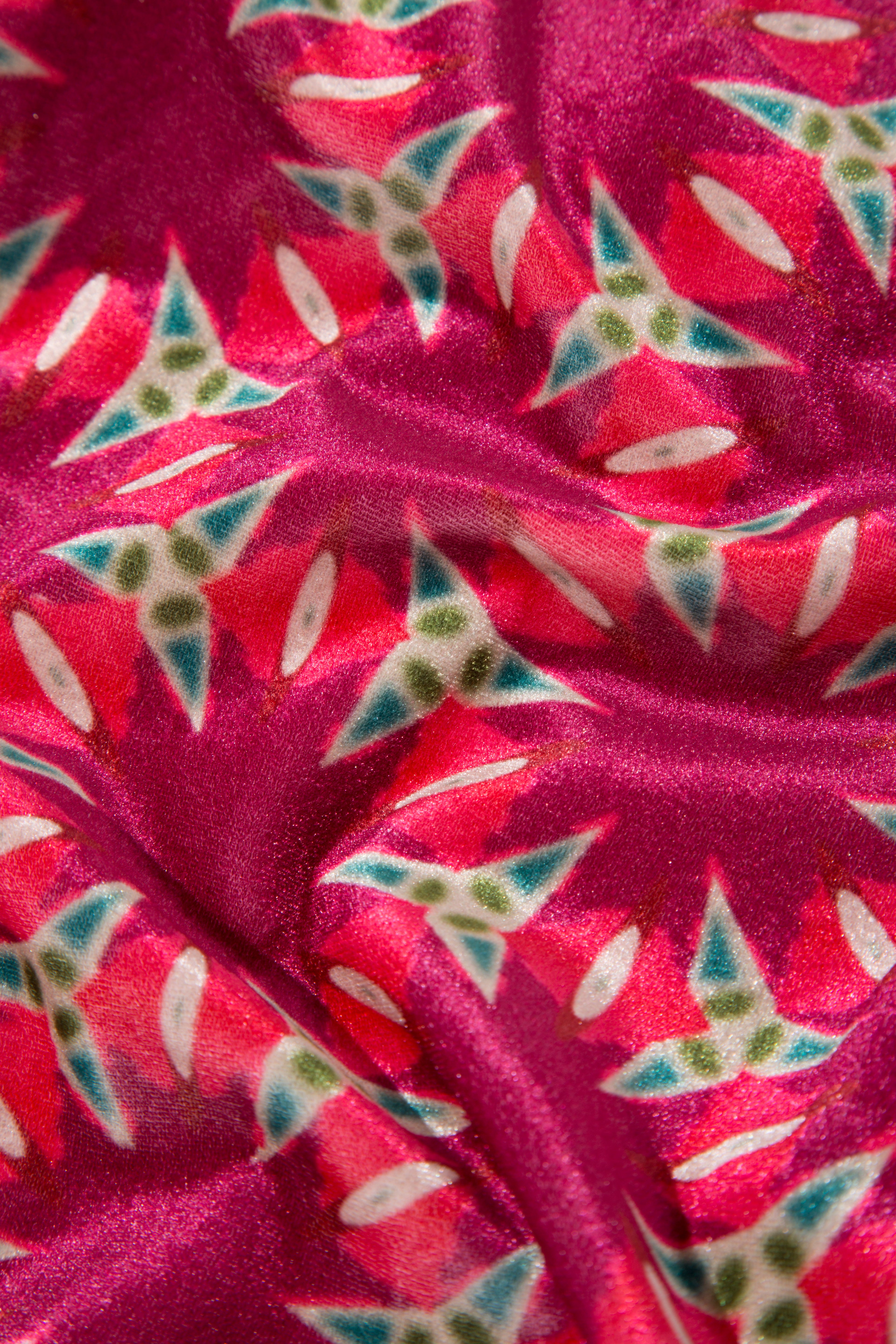 Geometrik desenlerden oluşan eser, kadife kumaş'a dijital baskı yöntemi ile basılmıştır,