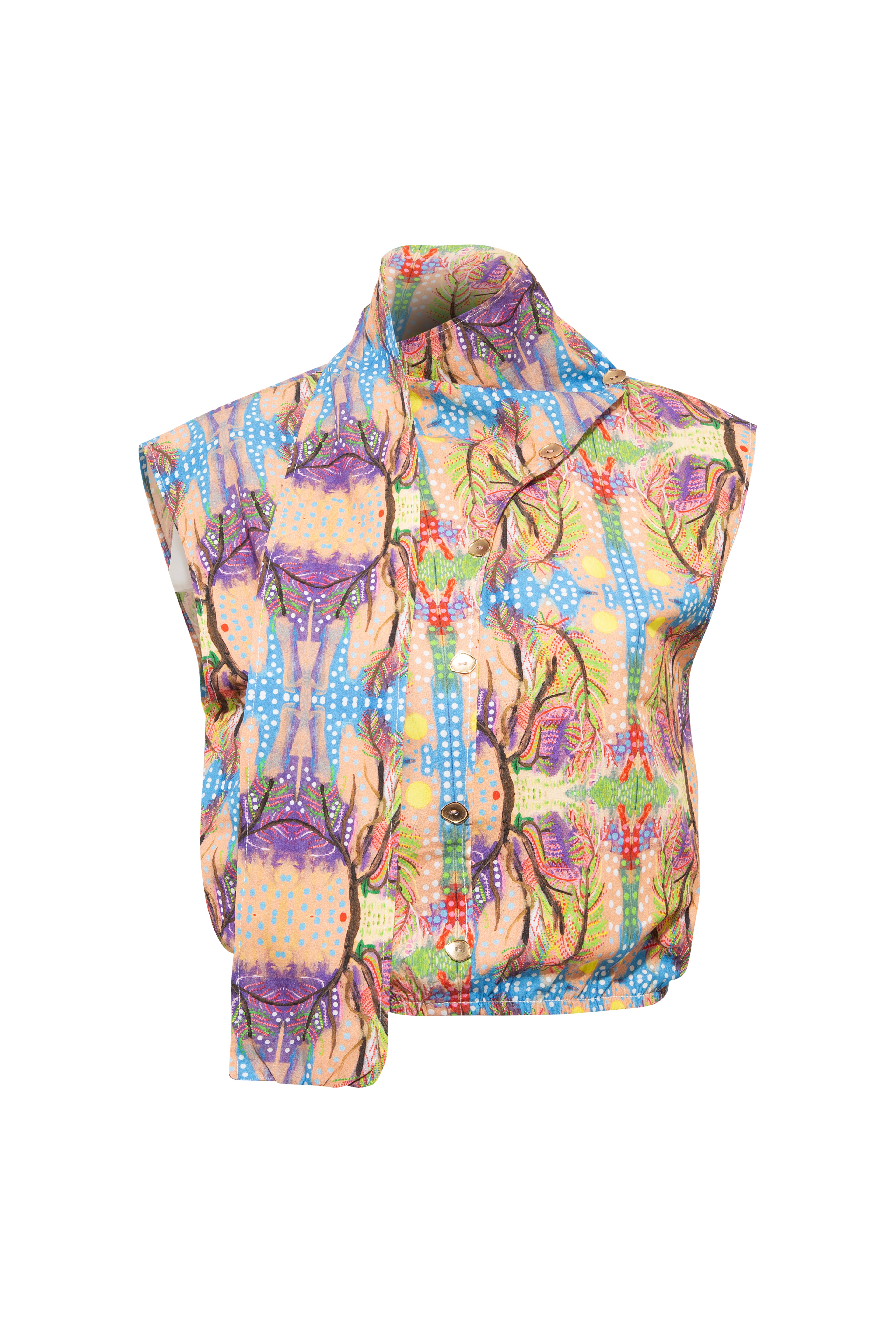 Fular estetiğinden ilham alan ve çapraz ilikleme detayı ile tamamlanan bluz, bel kısmında yer alan ince lastik detayı, vücuda uyum sağlayarak formun dengeli ve rahat durmasını destekler.
