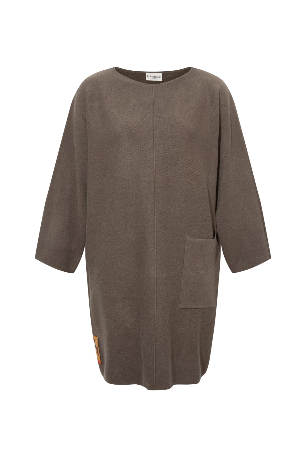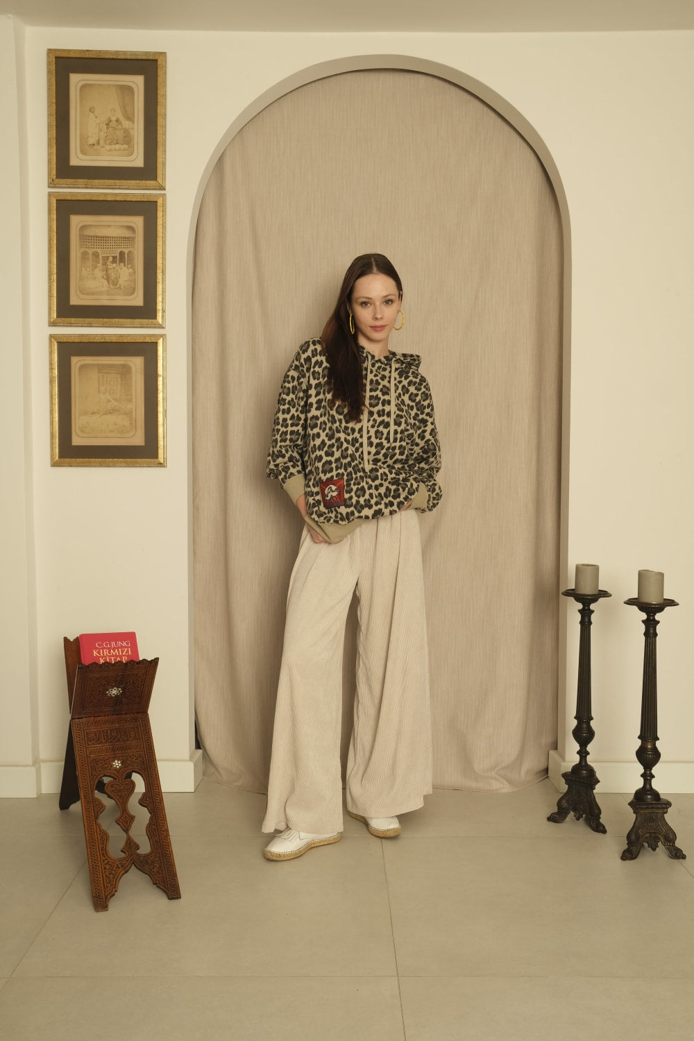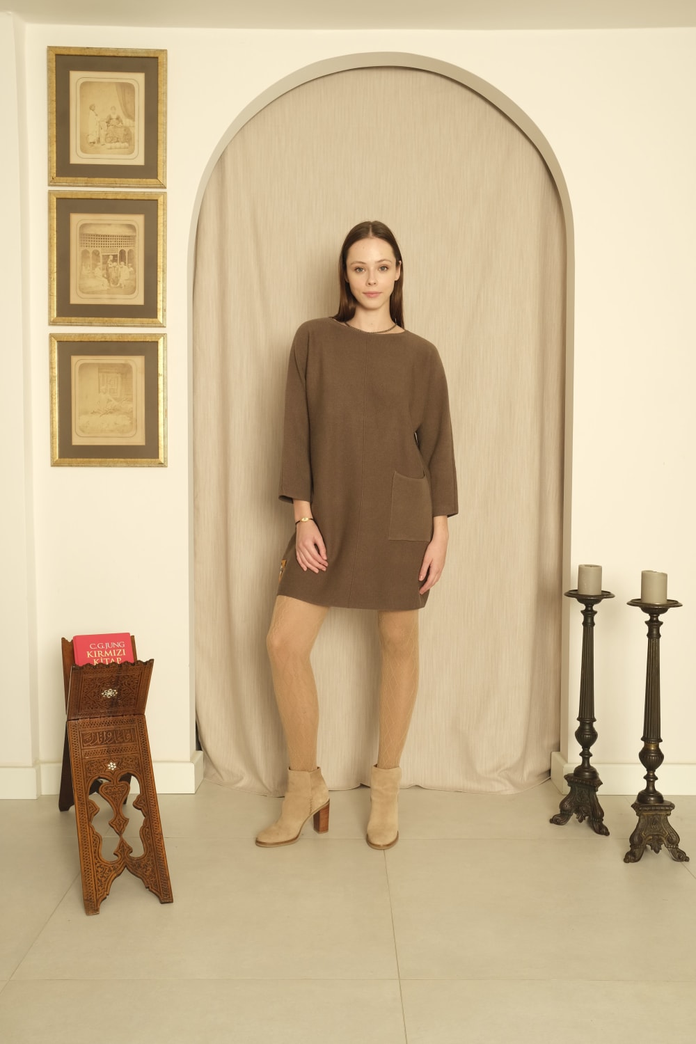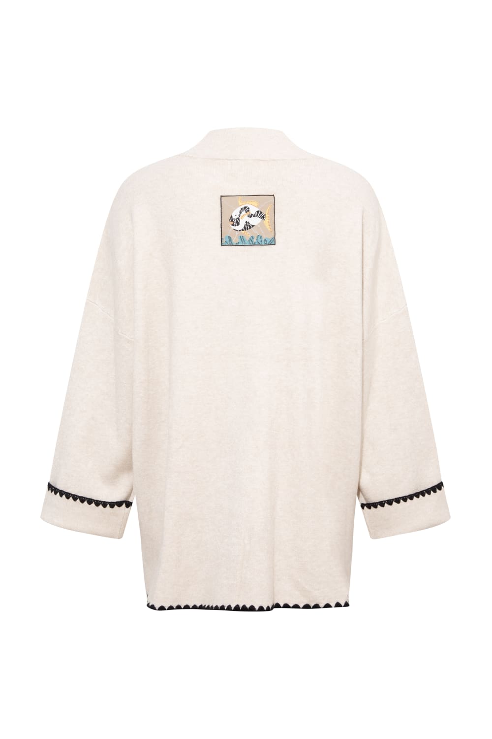 Triko Ekru Siyah Sıçandiş Nakışlı Oversize Tunik