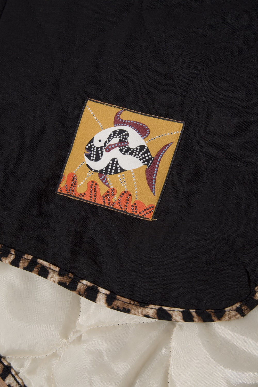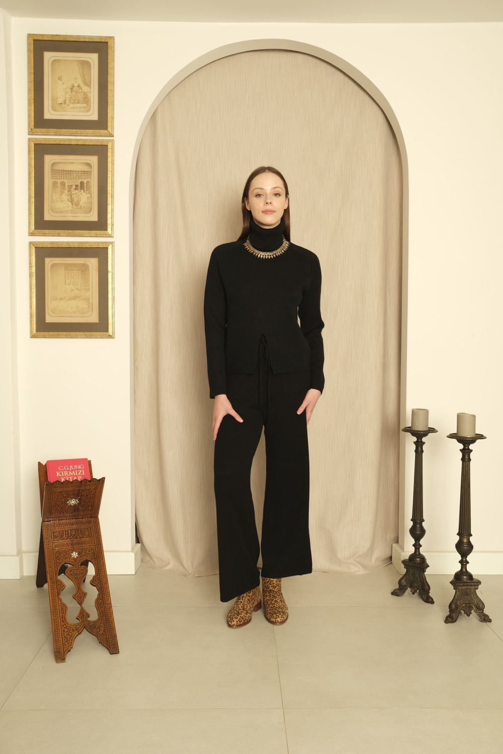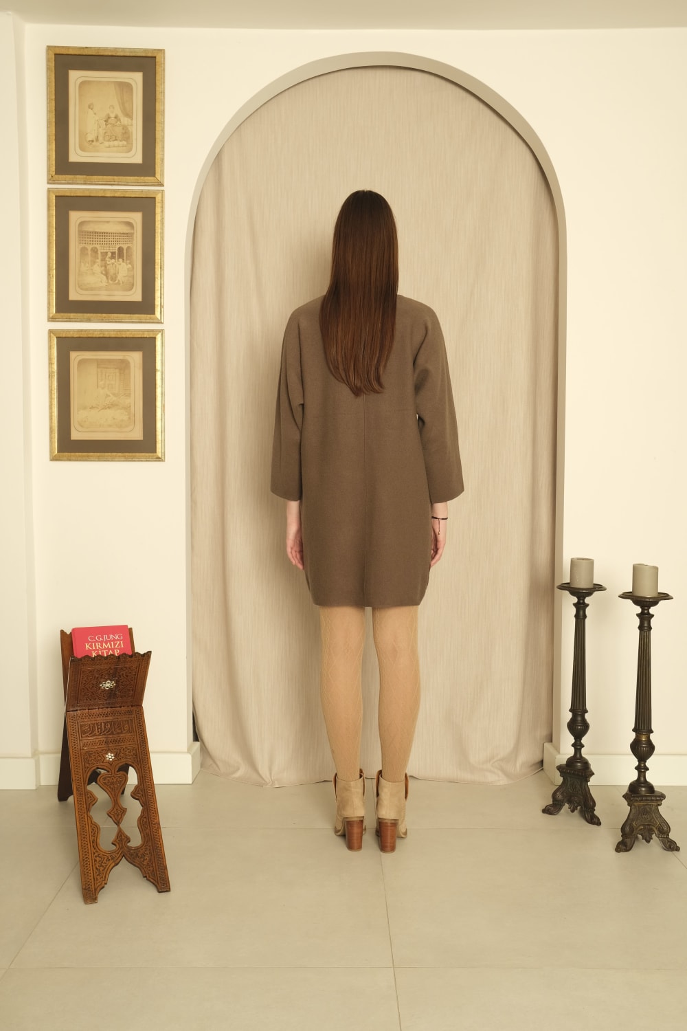Triko Ekru Siyah Sıçandiş Nakışlı Oversize Tunik