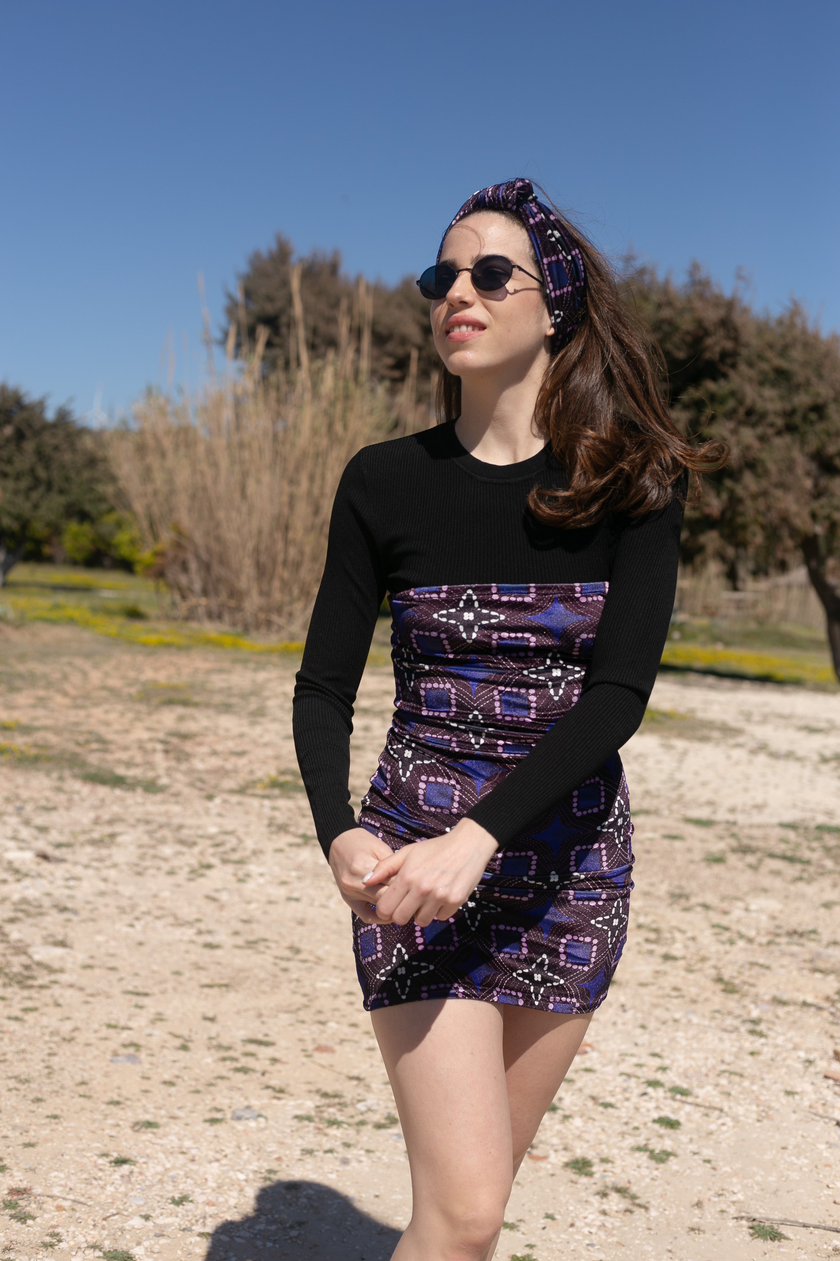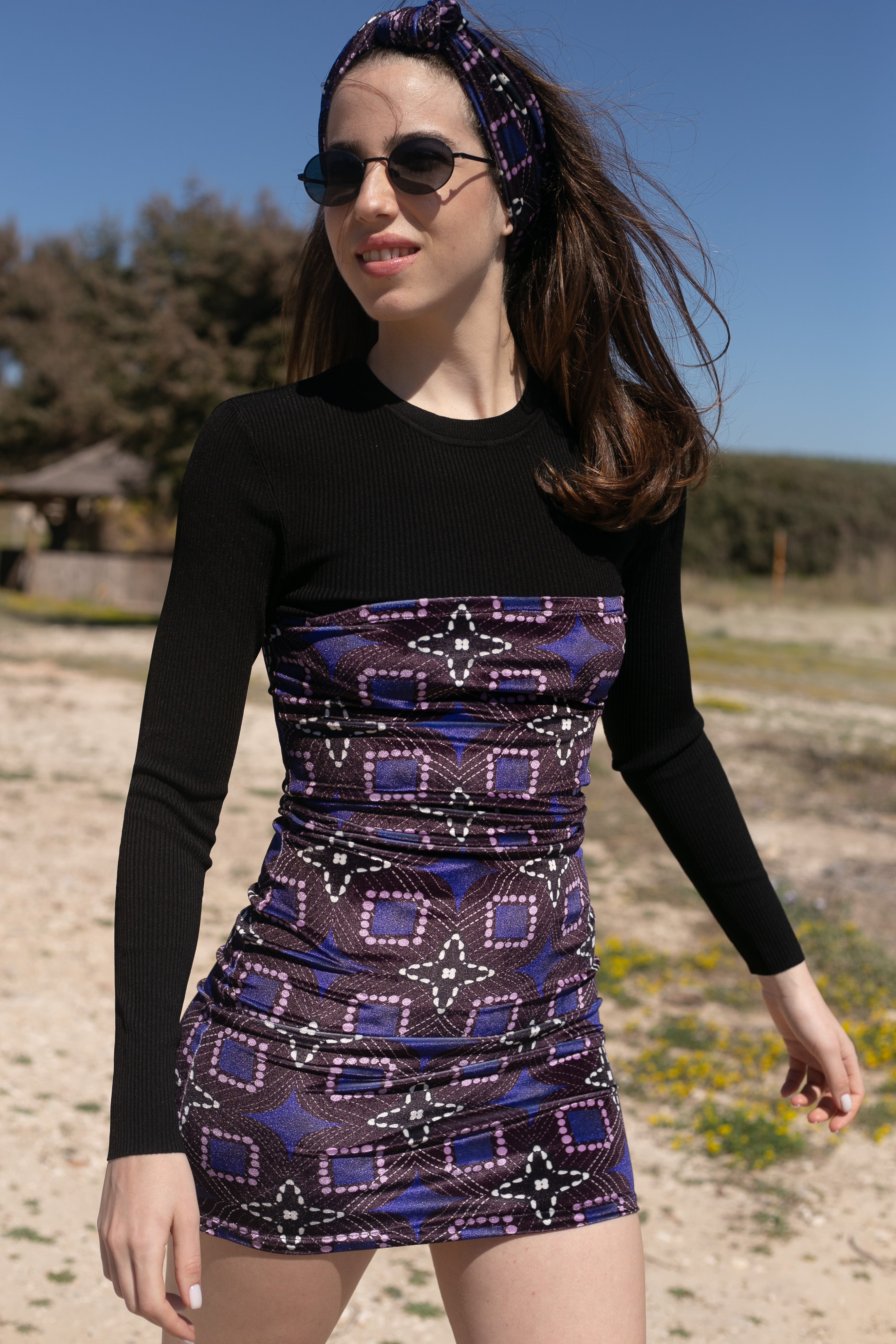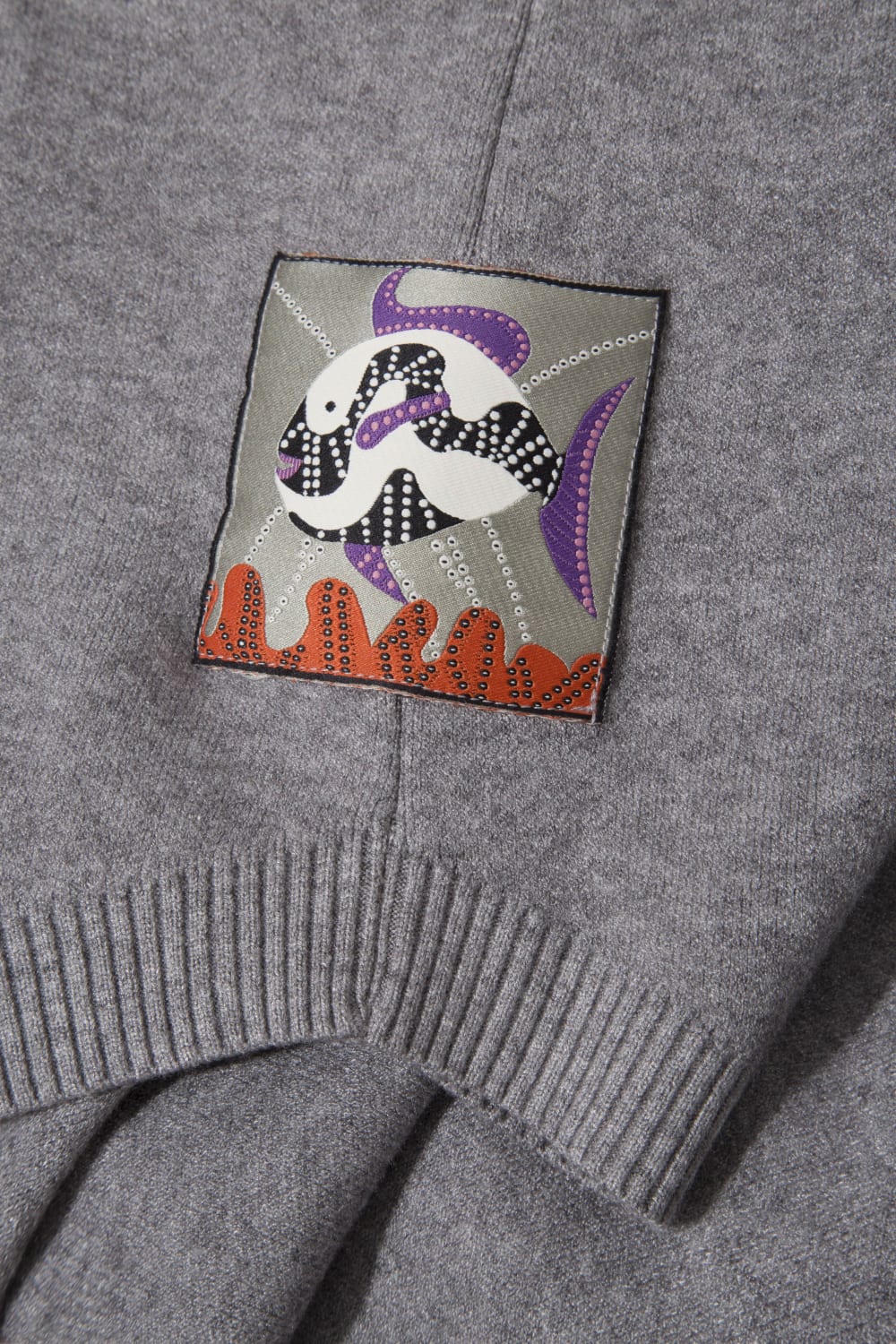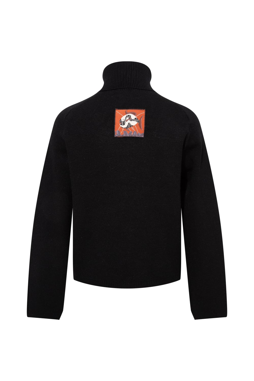 Triko Ekru Siyah Sıçandiş Nakışlı Oversize Tunik