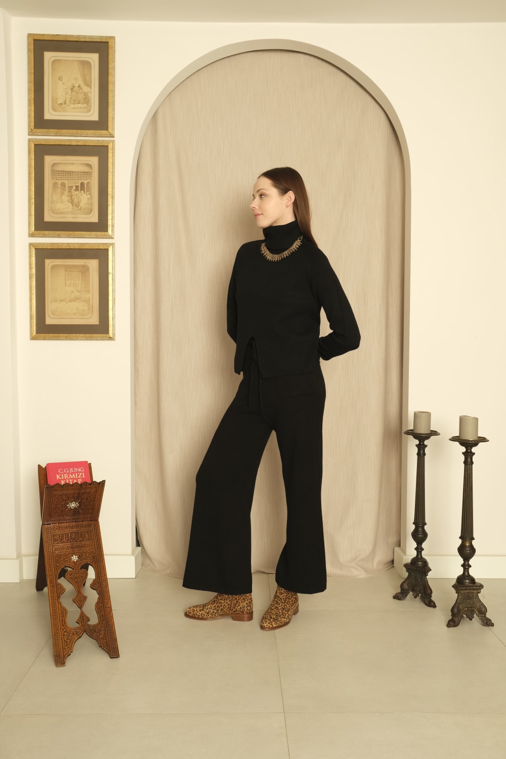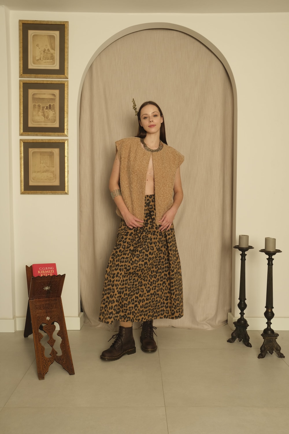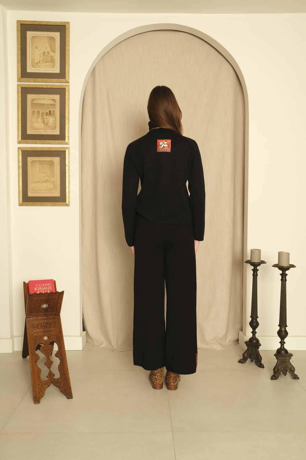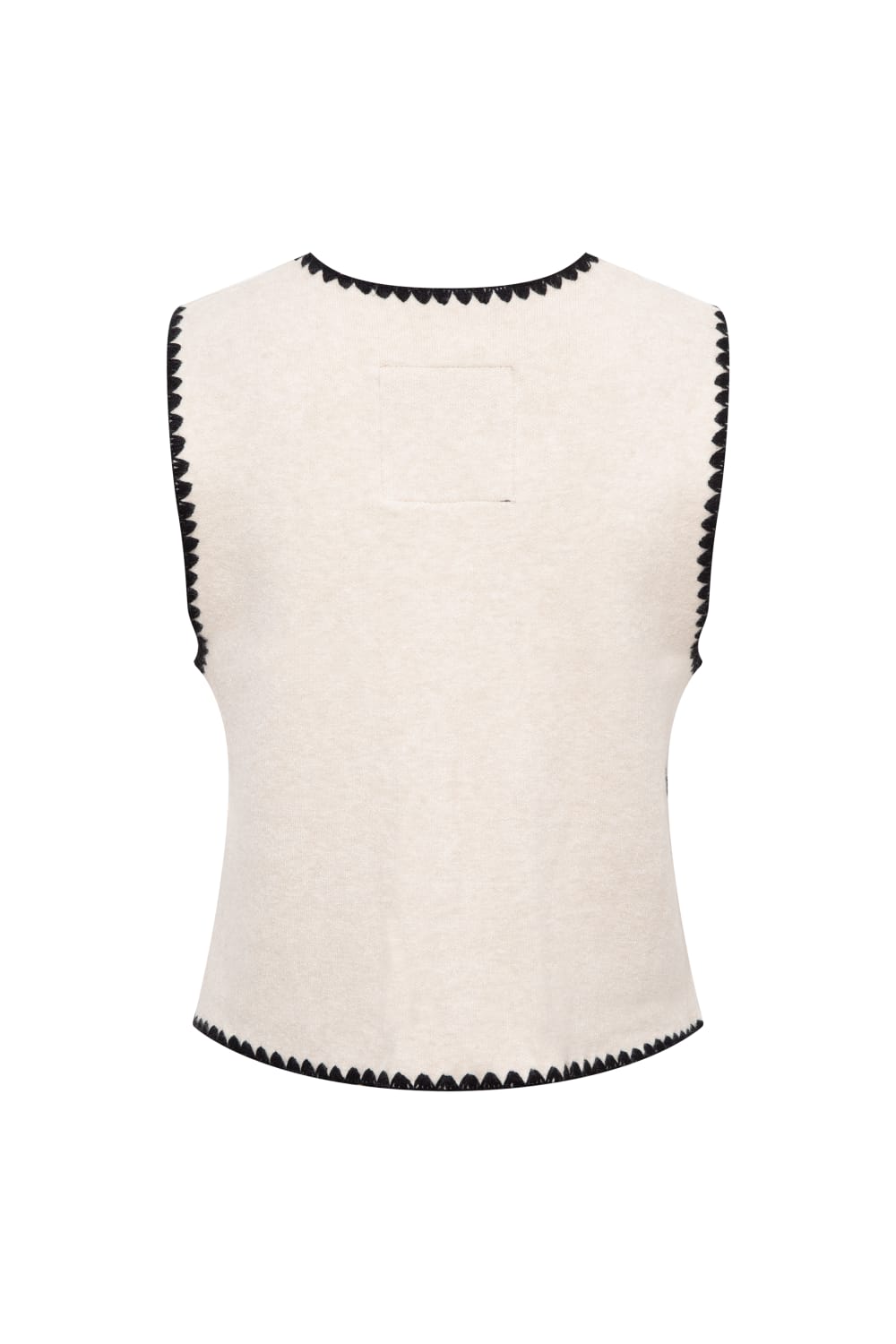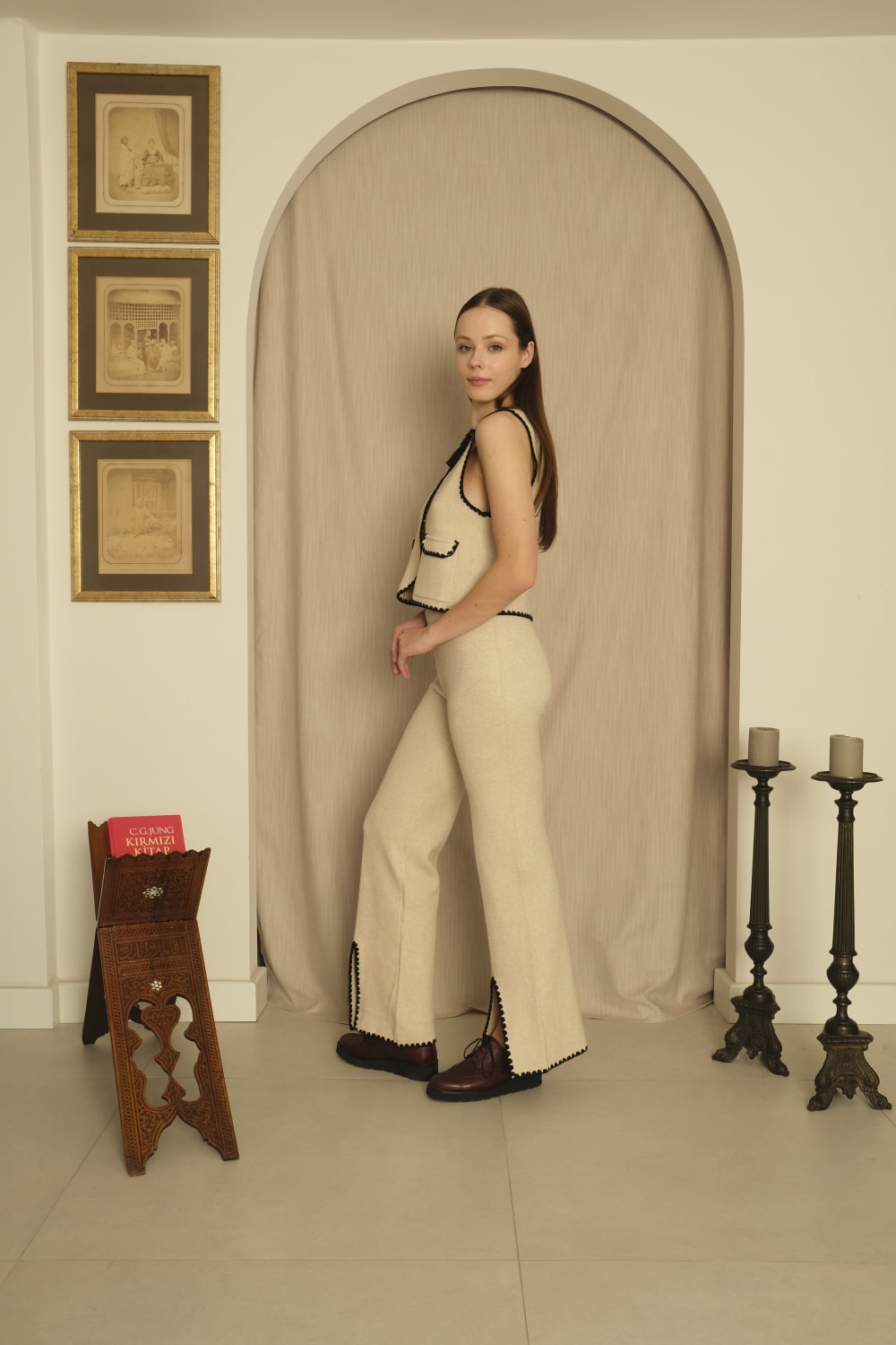 Triko Ekru Siyah Sıçandiş Nakışlı Yelek