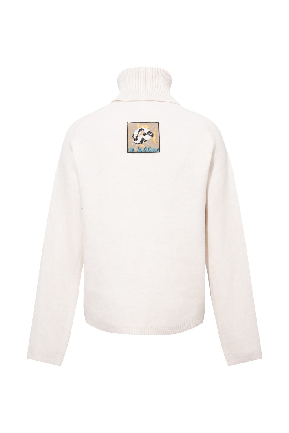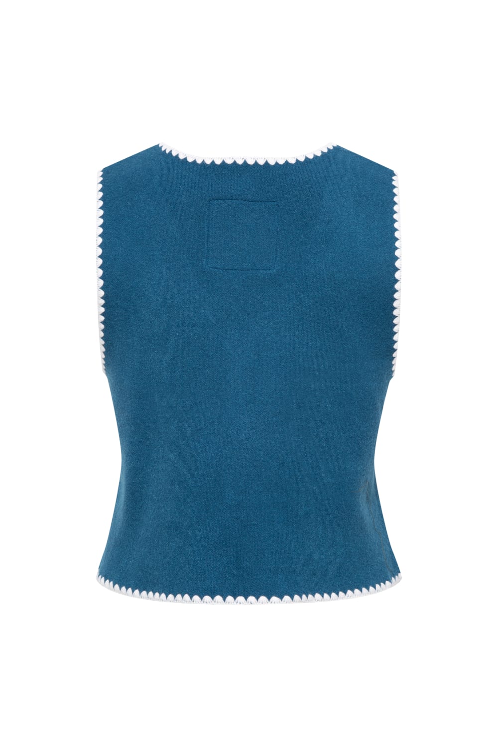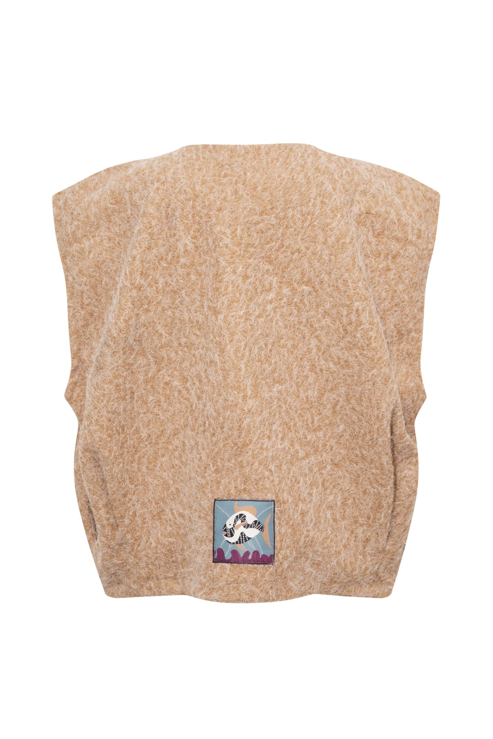 Triko İngido Ekru Sıçandiş Nakışlı Yelek