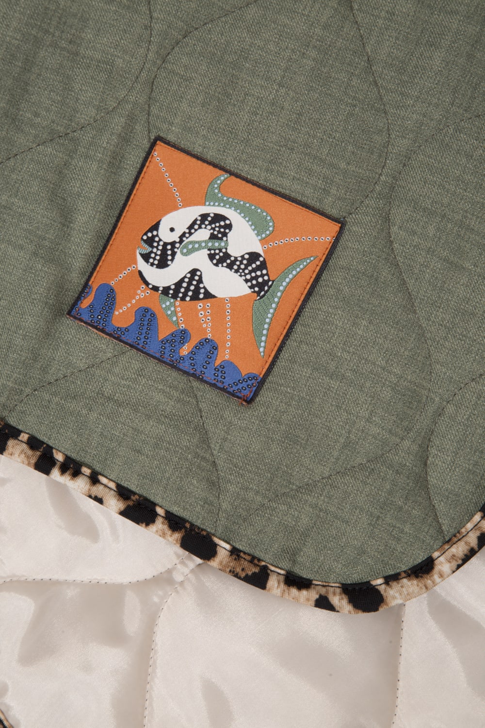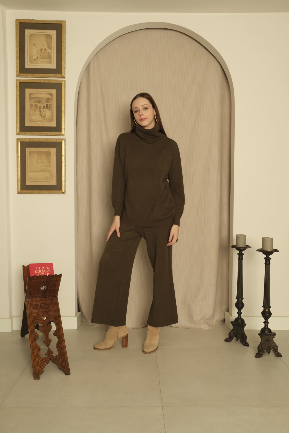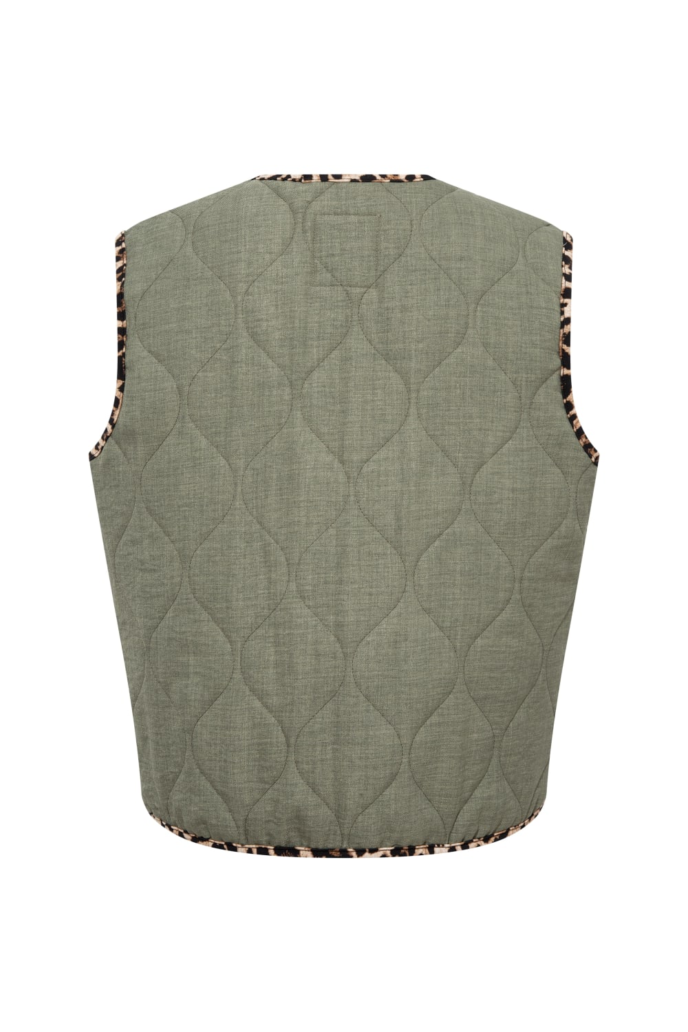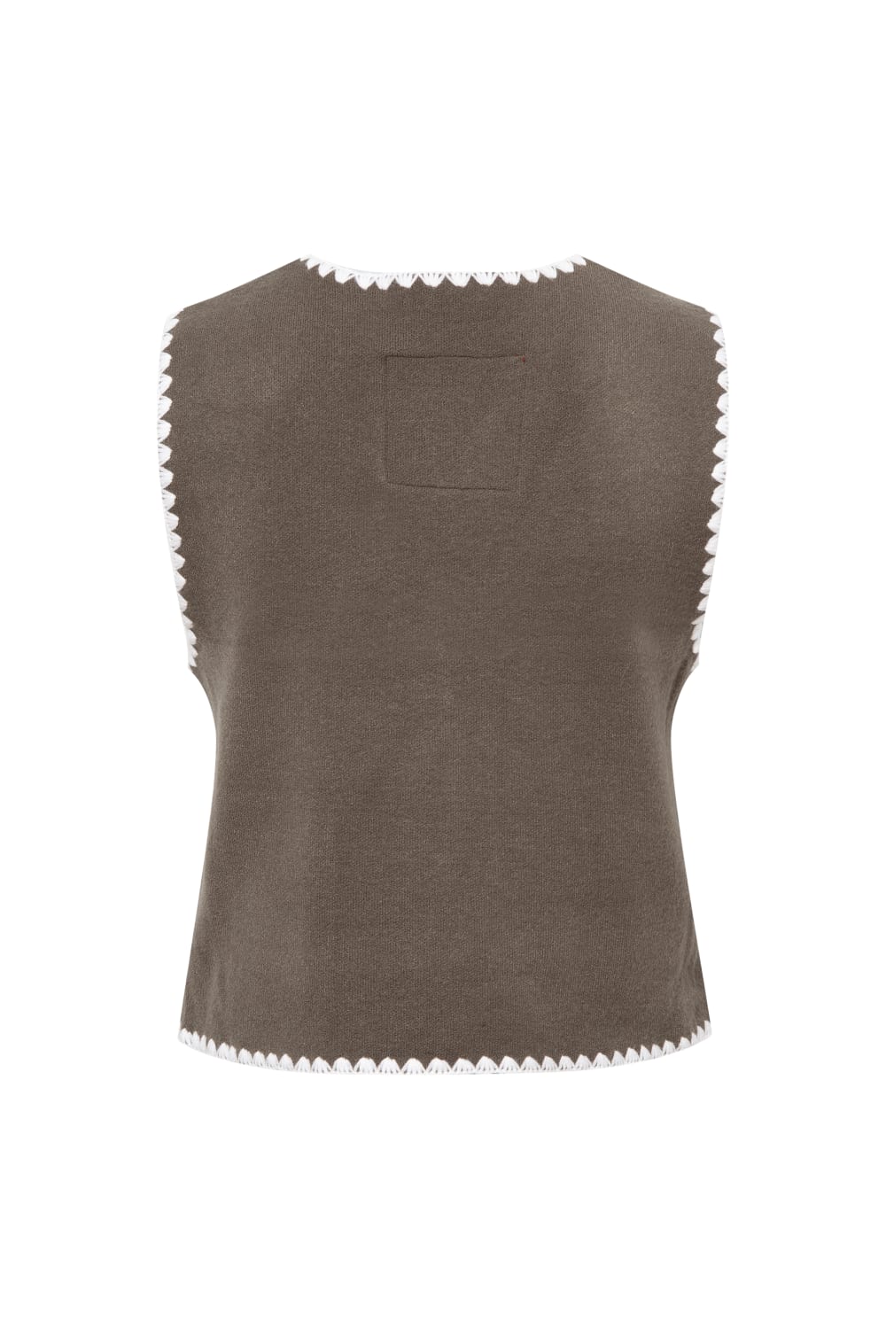 Triko Haki Ekru Sıçandiş Nakışlı Yelek
