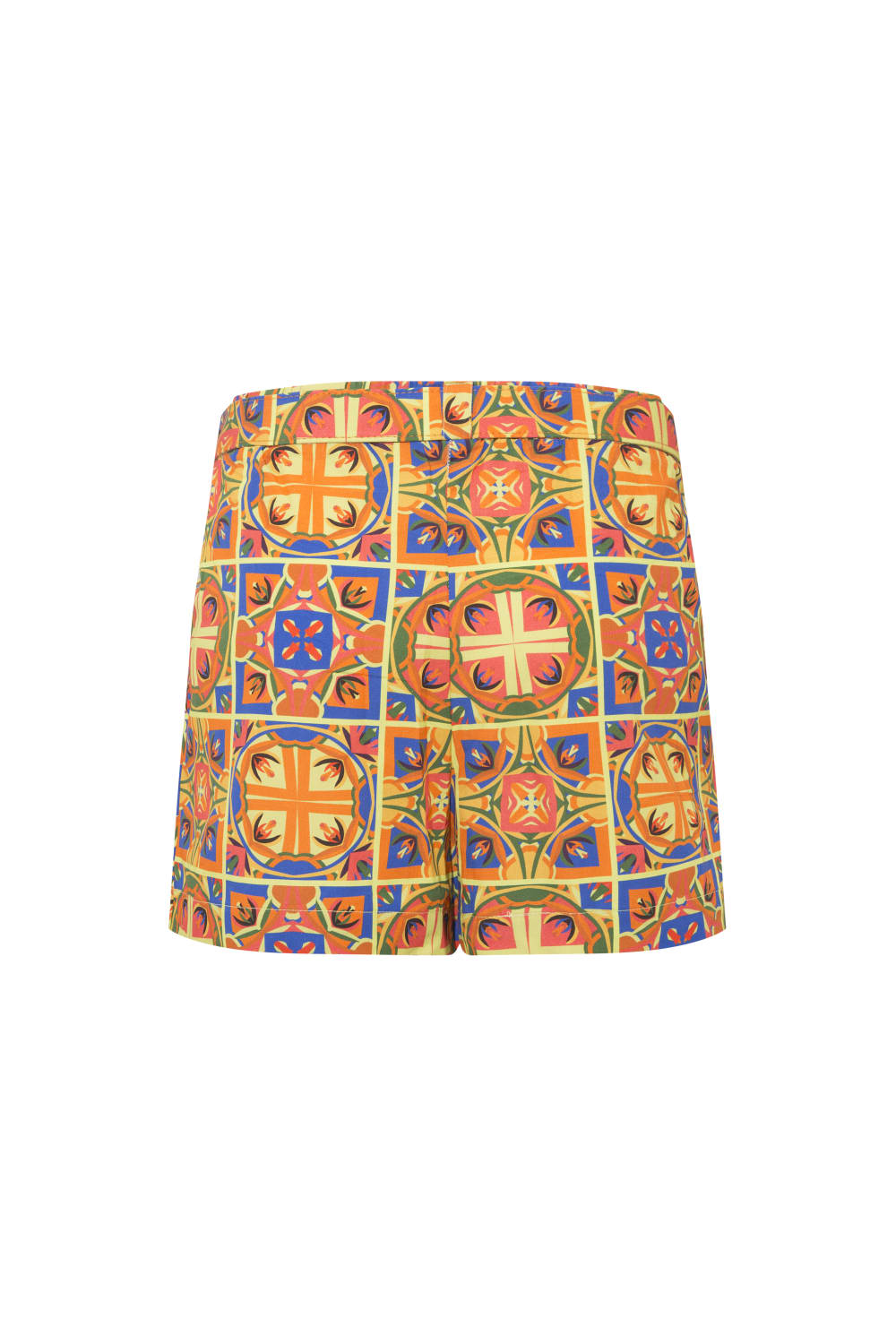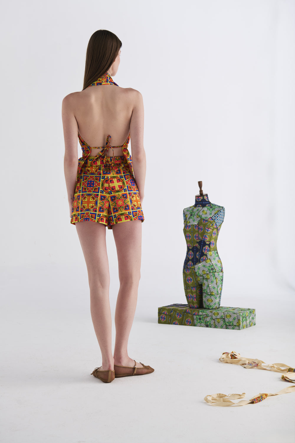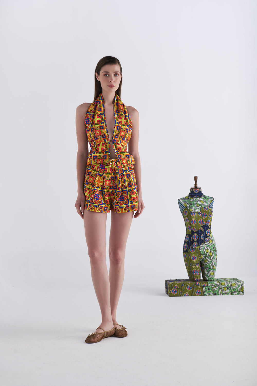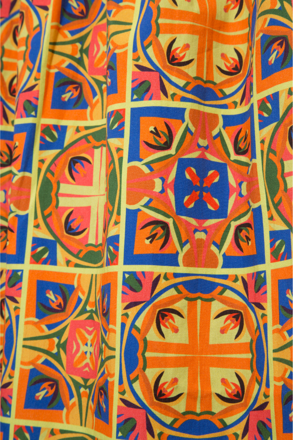 Geometrik desenlerden oluşan eser, poplin kumaş'a dijital baskı yöntemi ile basılmıştır,