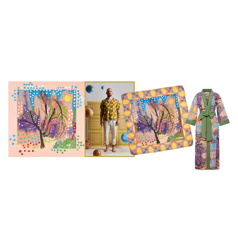 Le Monade Dreams dünyasında Margarita kokteyli, ormanın içinde yapılan bir kına gecesini anlatan begonvil çiçeğidir. Bu desen, canlı pembe ve yeşil tonların dansıyla doğanın enerjisini yansıtırken, aynı zamanda geleneksel ritüellerin coşkusunu modern bir sanat diliyle buluşturur.Begonvillerin coşkulu pembe renkleri, yeşil dokuların tazeliği ve desenin ritmik akışı bir araya gelerek izleyene hem romantik hem de neşeli bir atmosfer sunar.