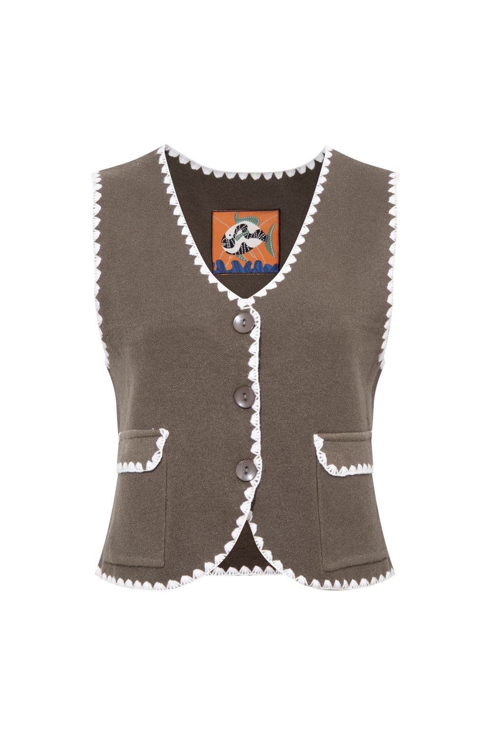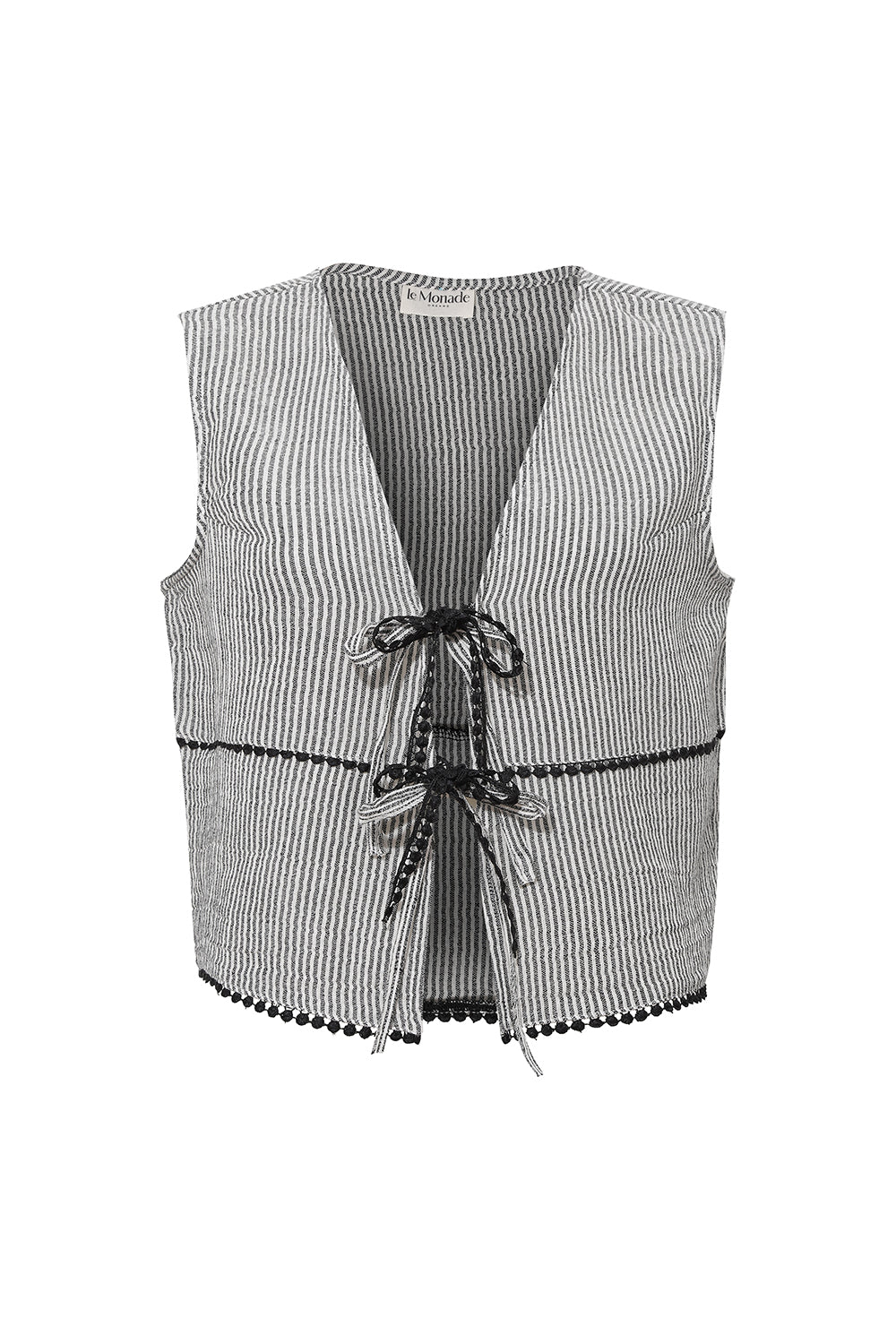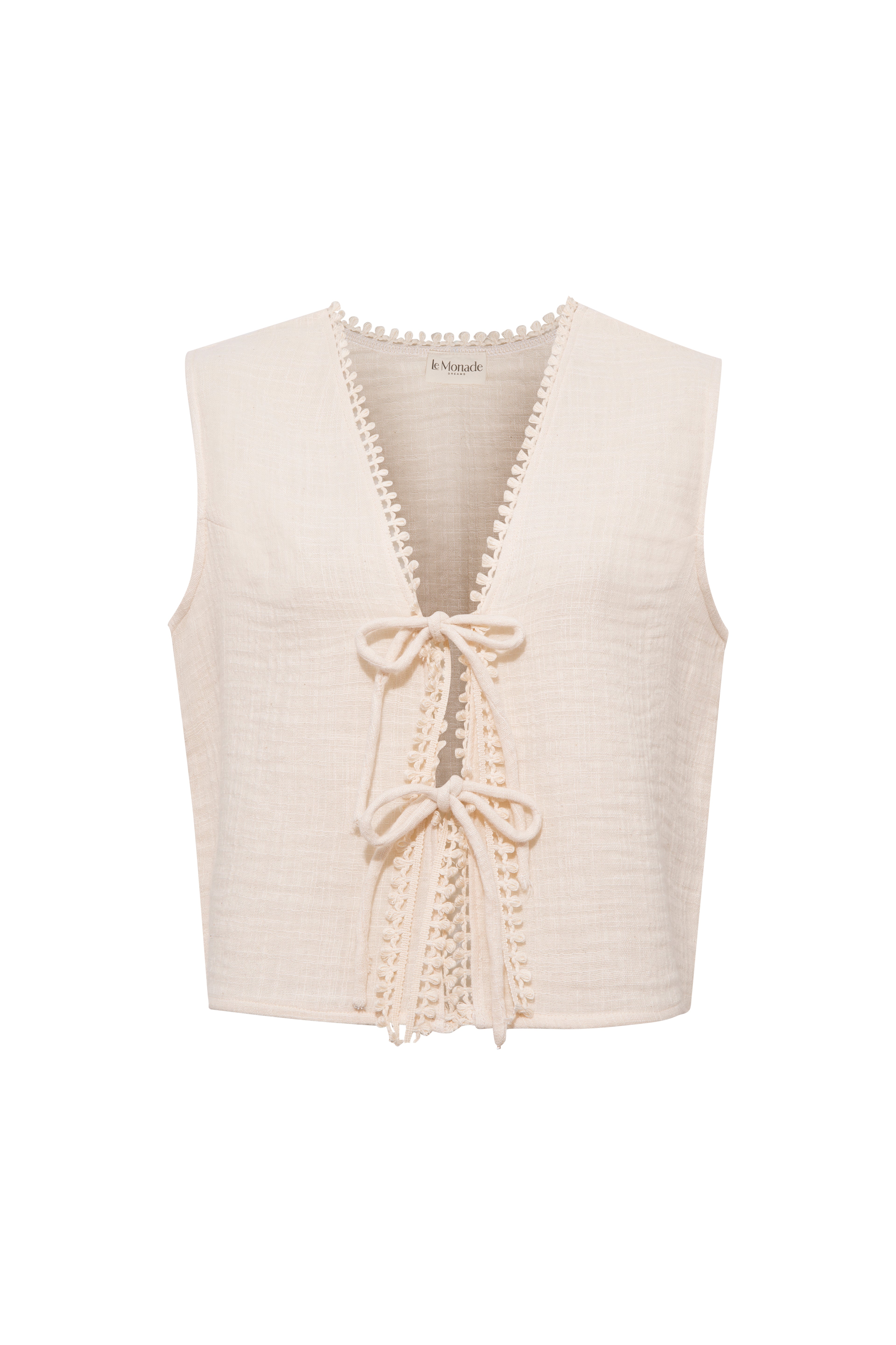 V yaka ve arkadan bağlama detaylı olan ürün patch birleşimleri ile şık bir görünüm sunmaktadır.