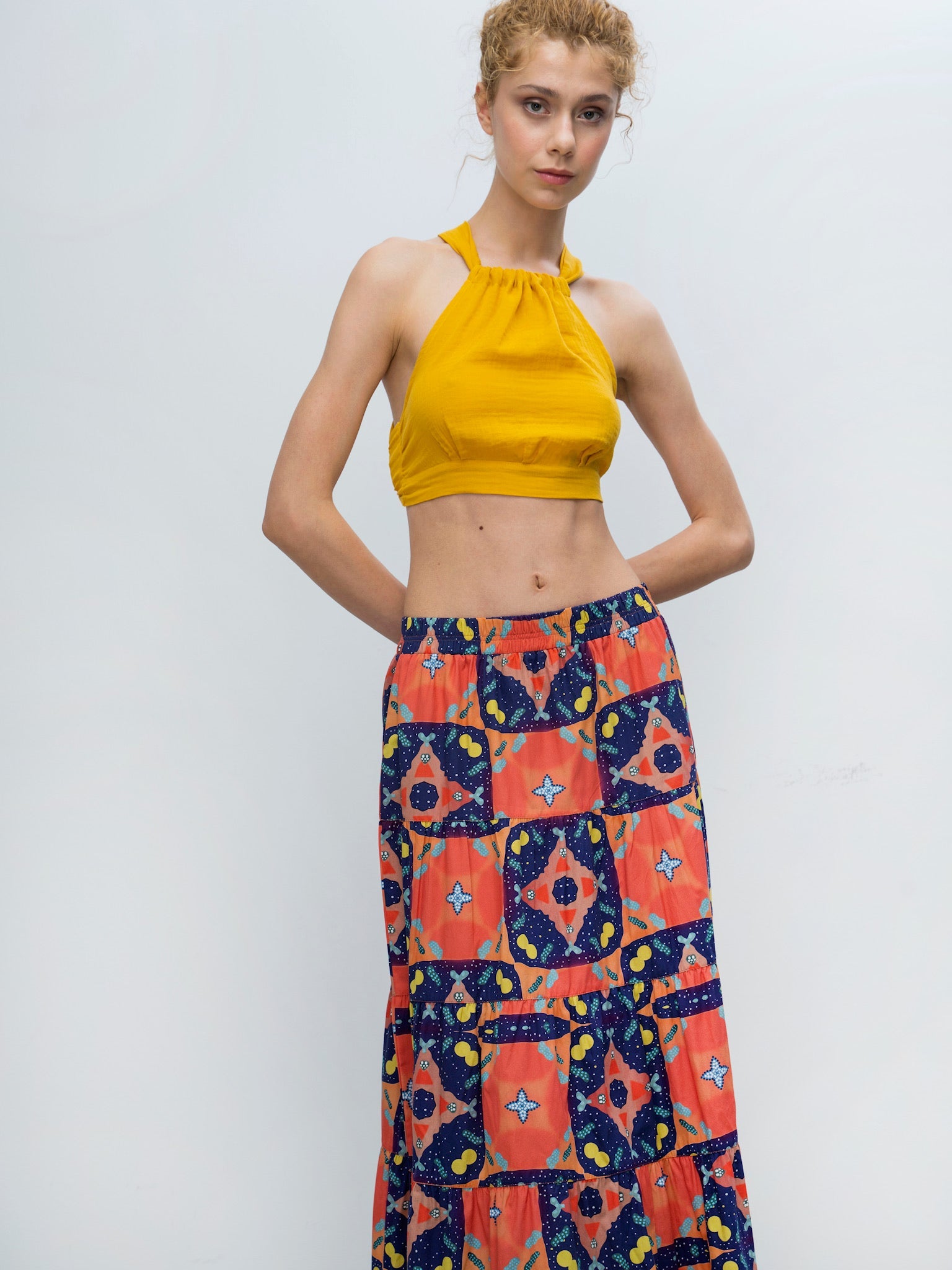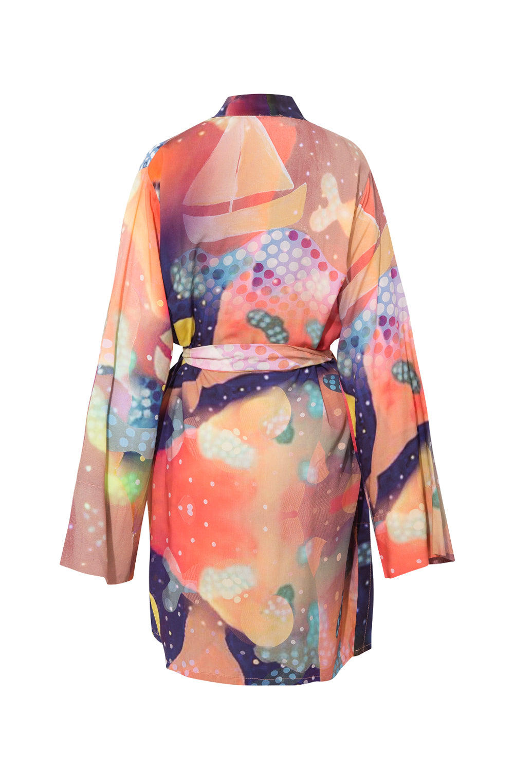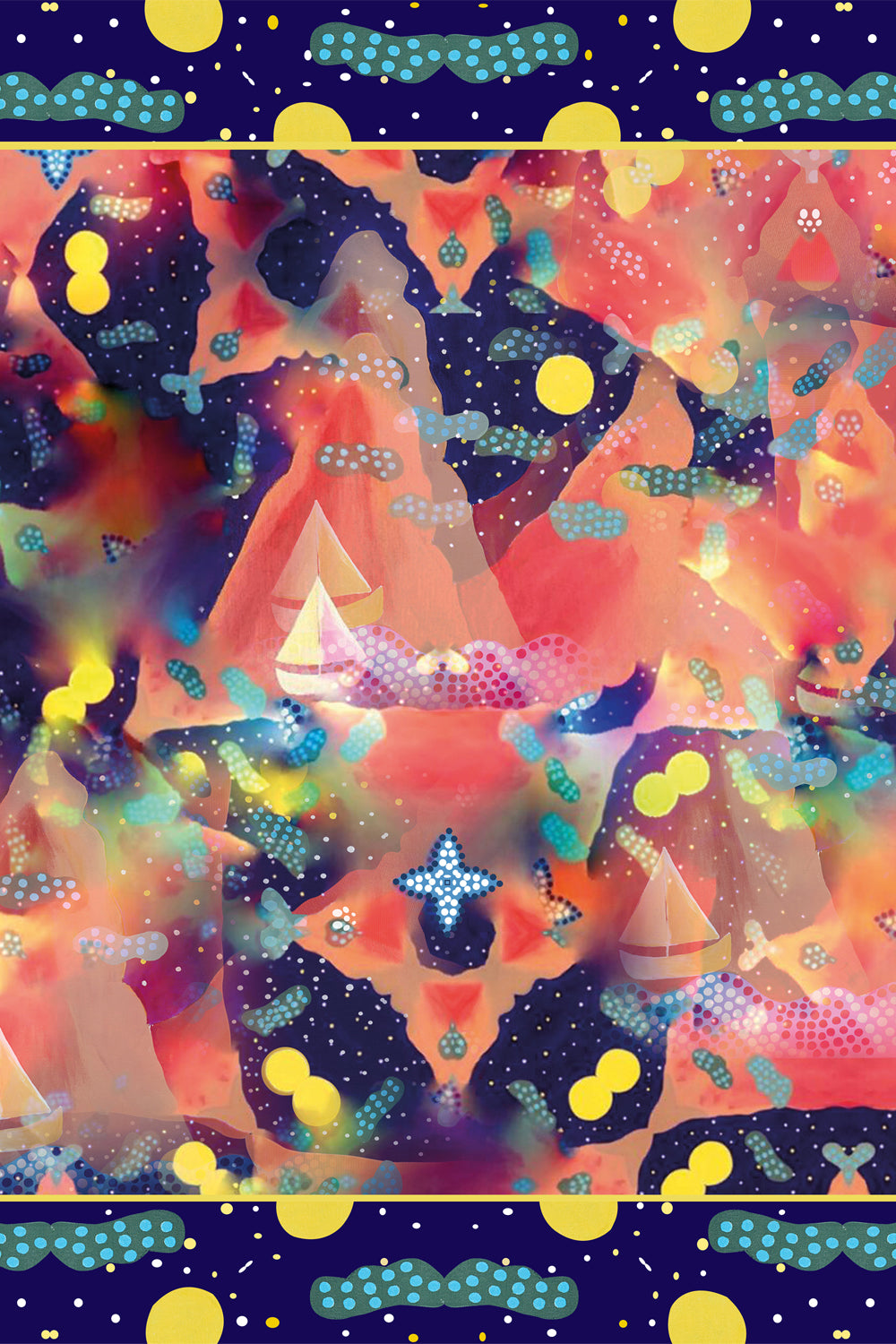 •Turuncu, mavi ve mor tonlarının dansı; sarı ay ve yıldız detaylarıyla birleşerek romantik ve özgün bir görünüm sunar,