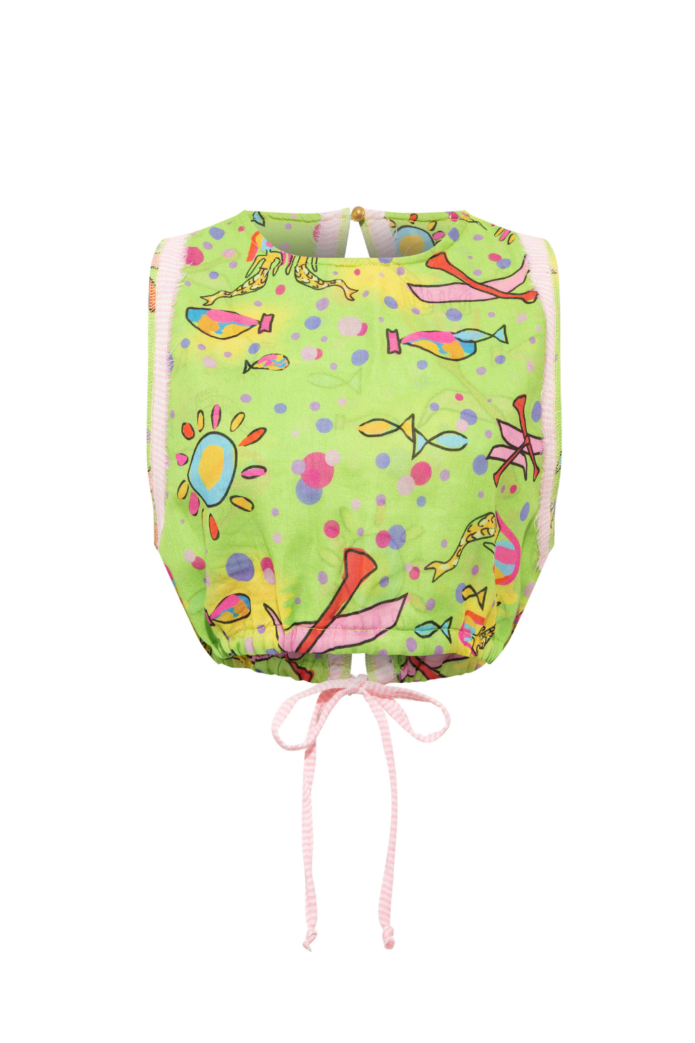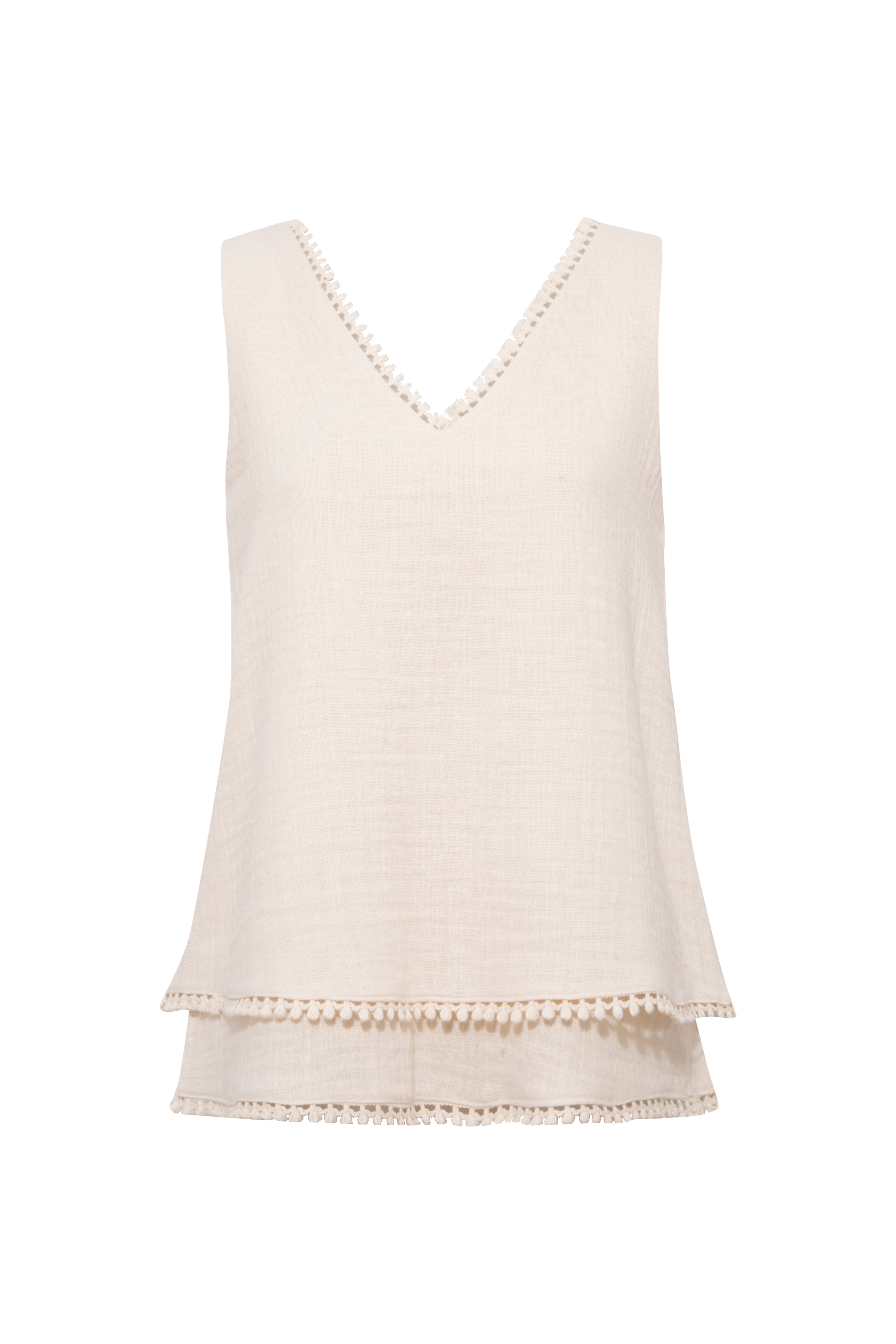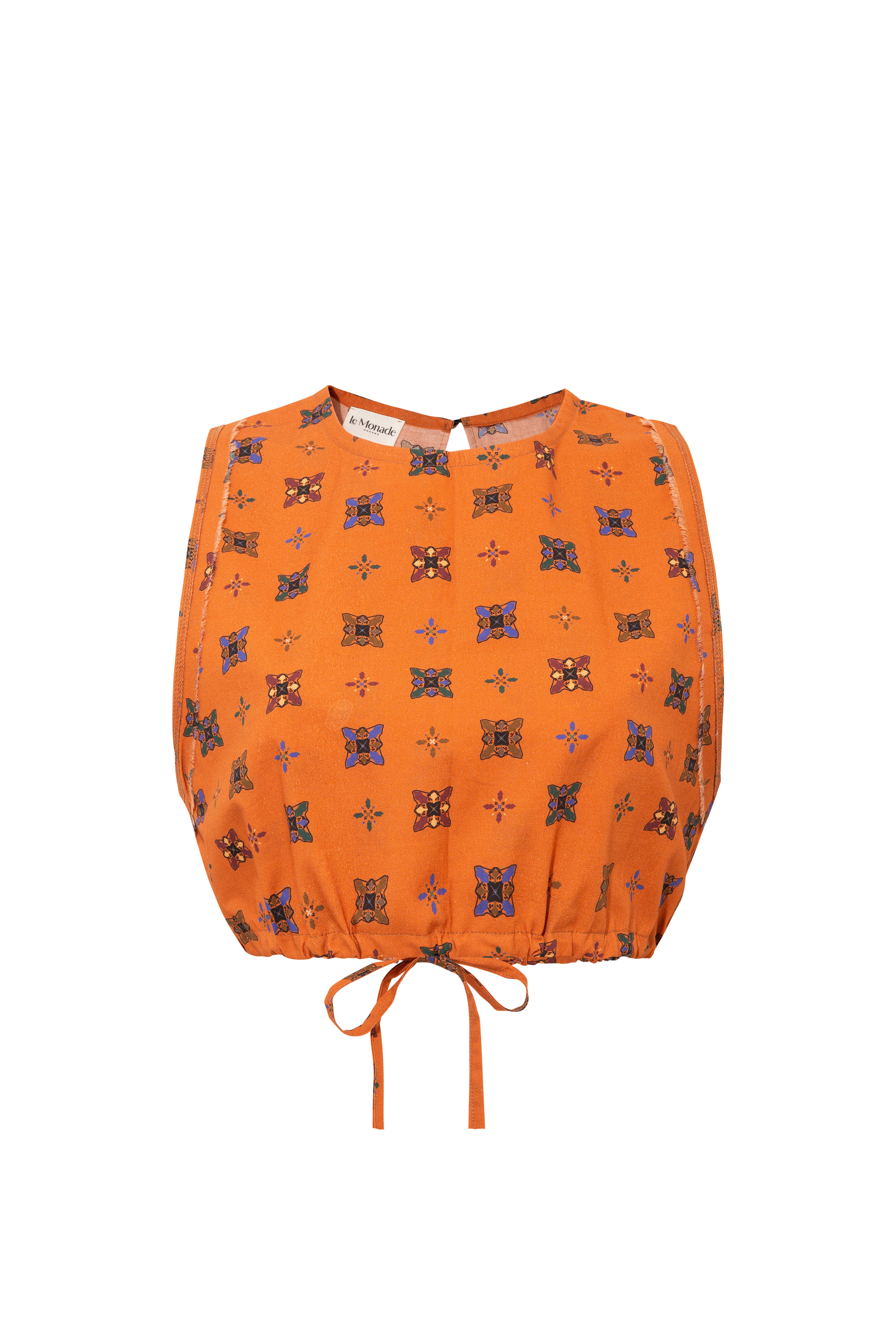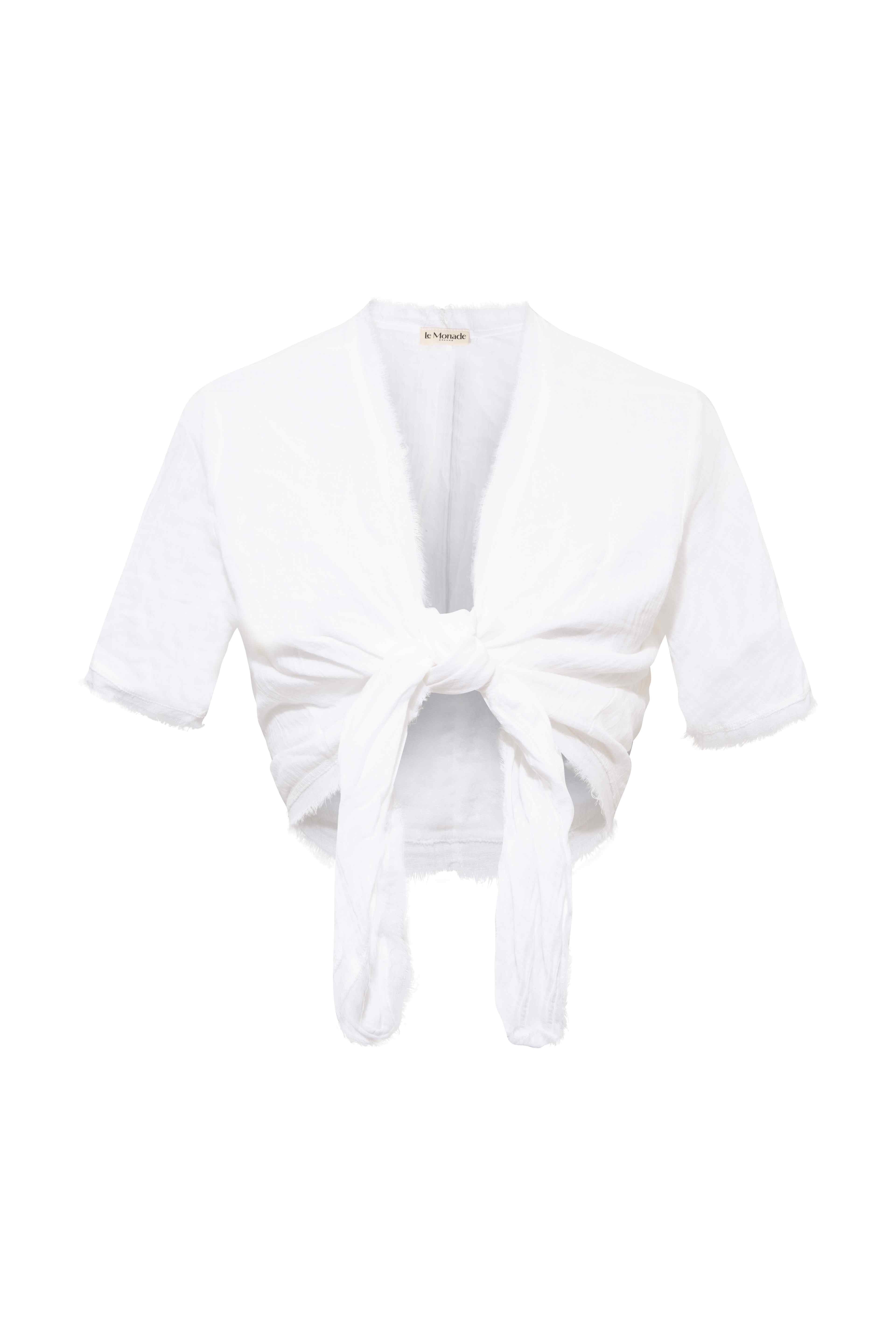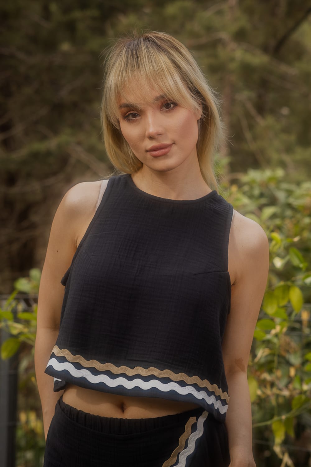 Bisiklet yaka olan bluz önü yarım pat ve sırtı saçak detayı ile şık bir görünüm sunmaktadır.