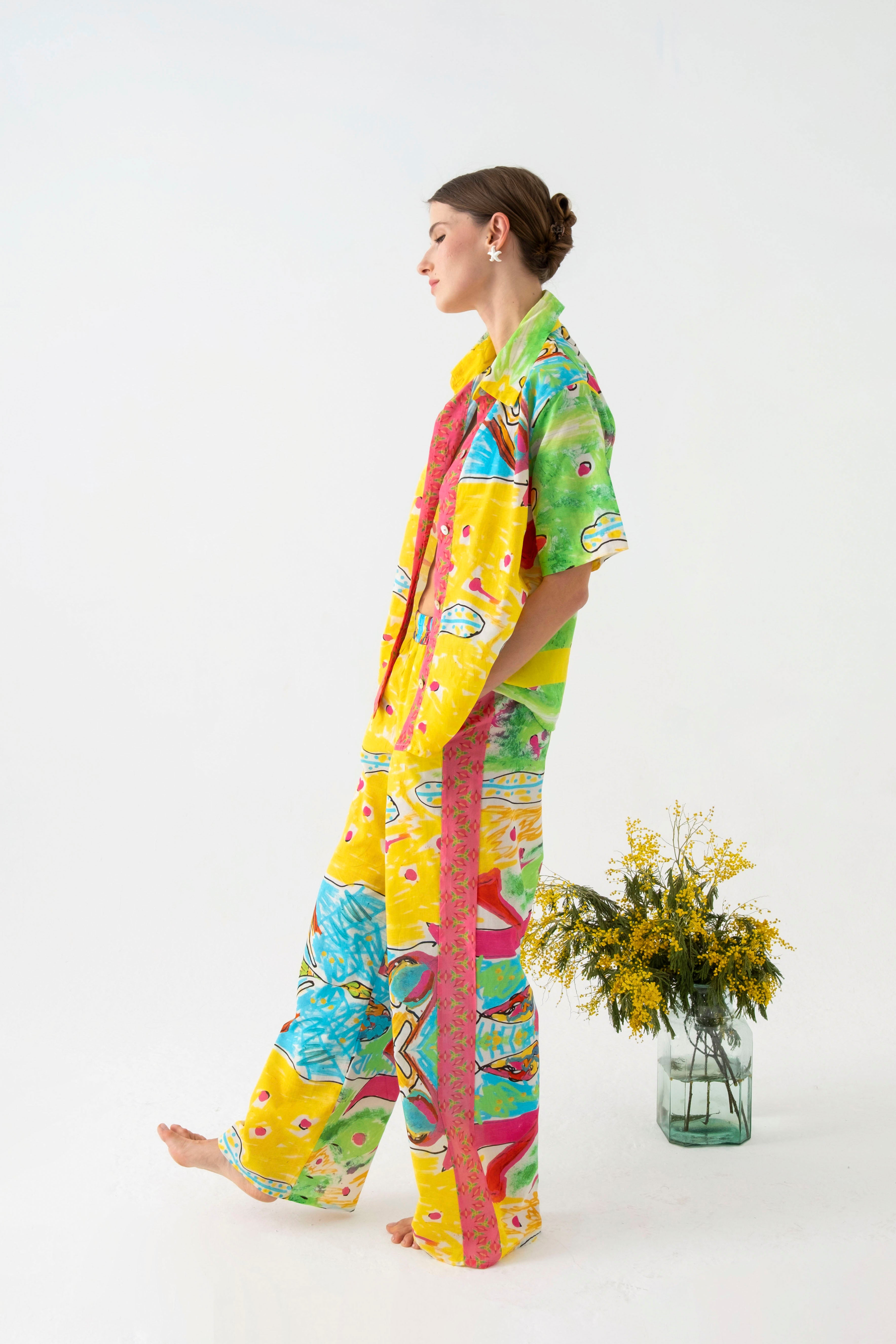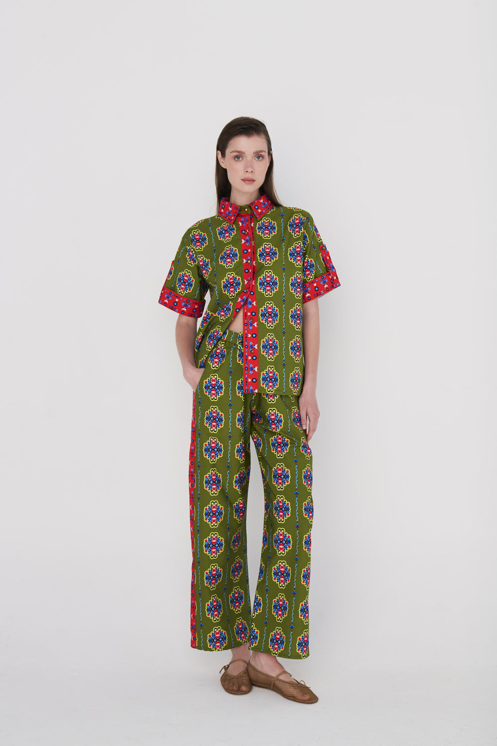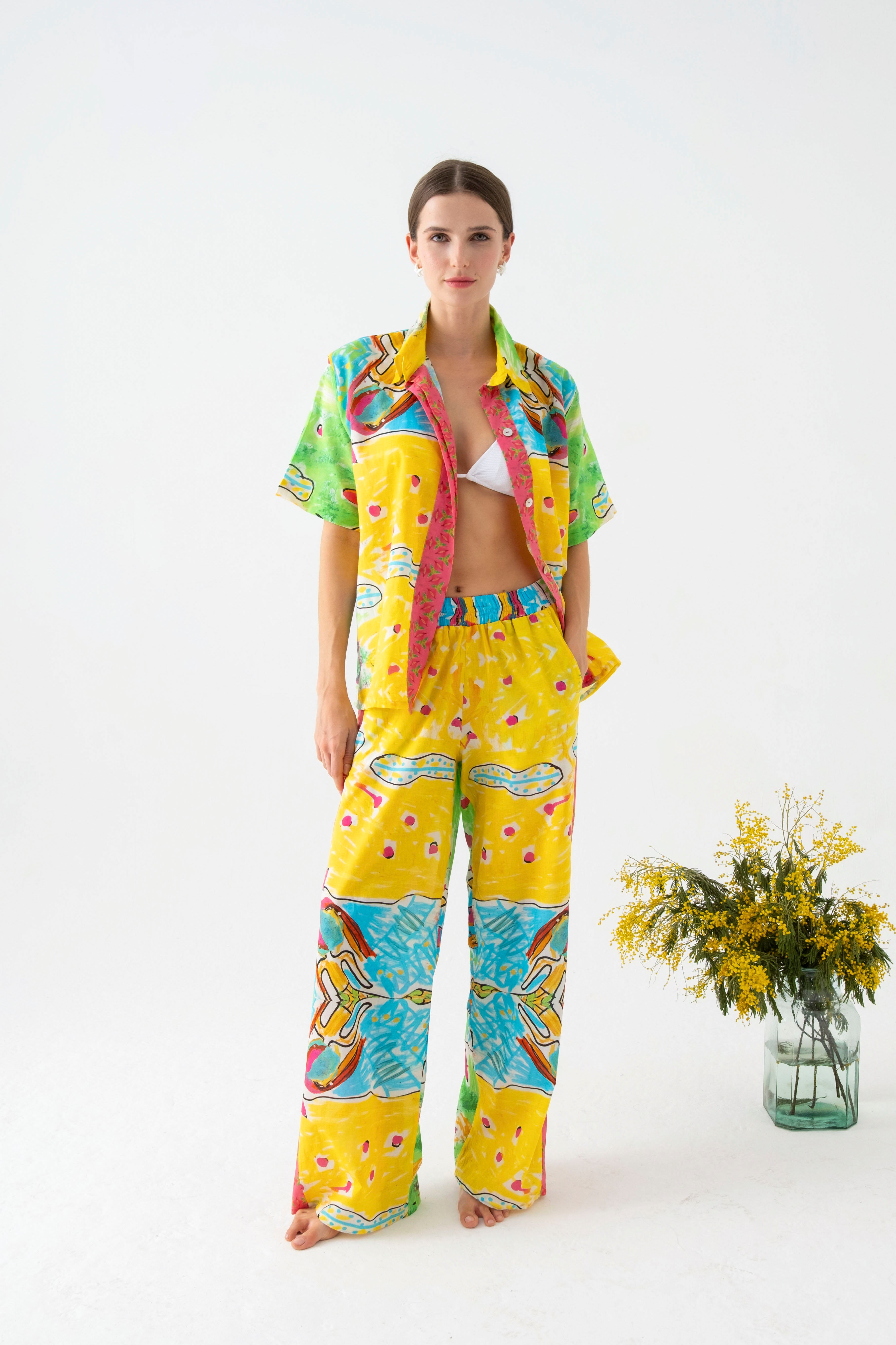 Lastikli yüksel bel ve salaş bir görünümü olan pantolon pile detayları ile şık bir görünüm sunmaktadır.
