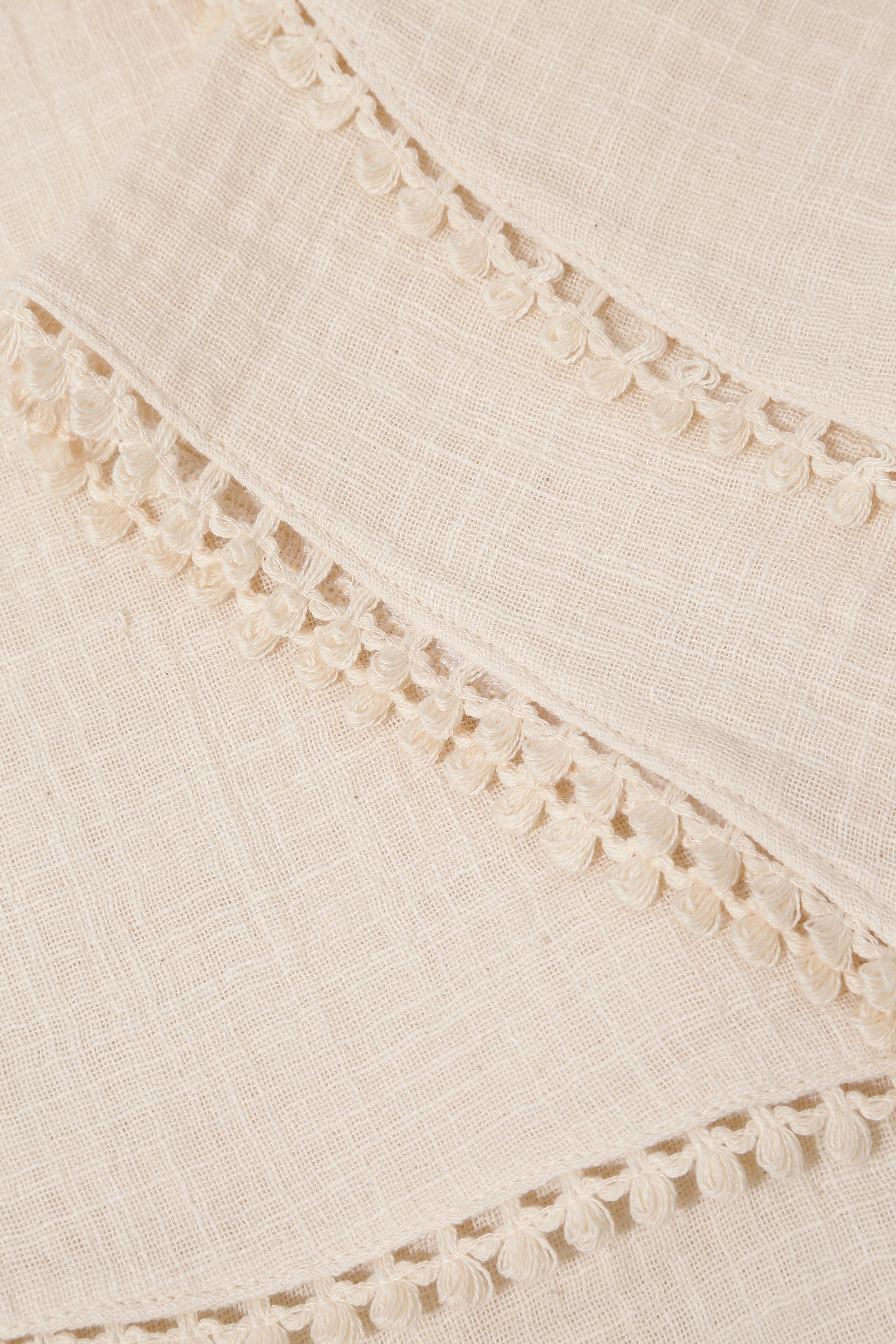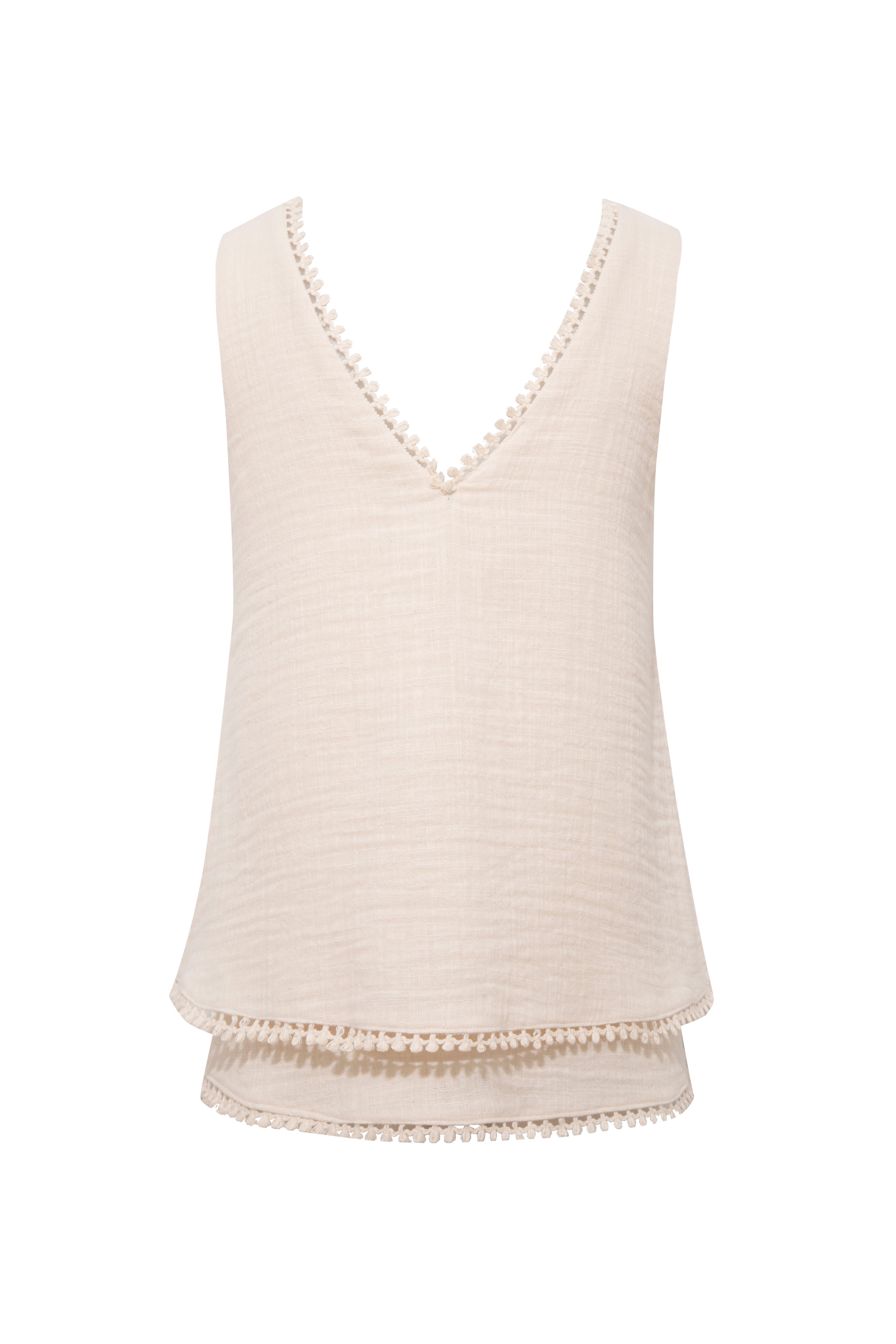 Keten Dokulu Kenar Detaylı Çift Kat Ekru Bluz