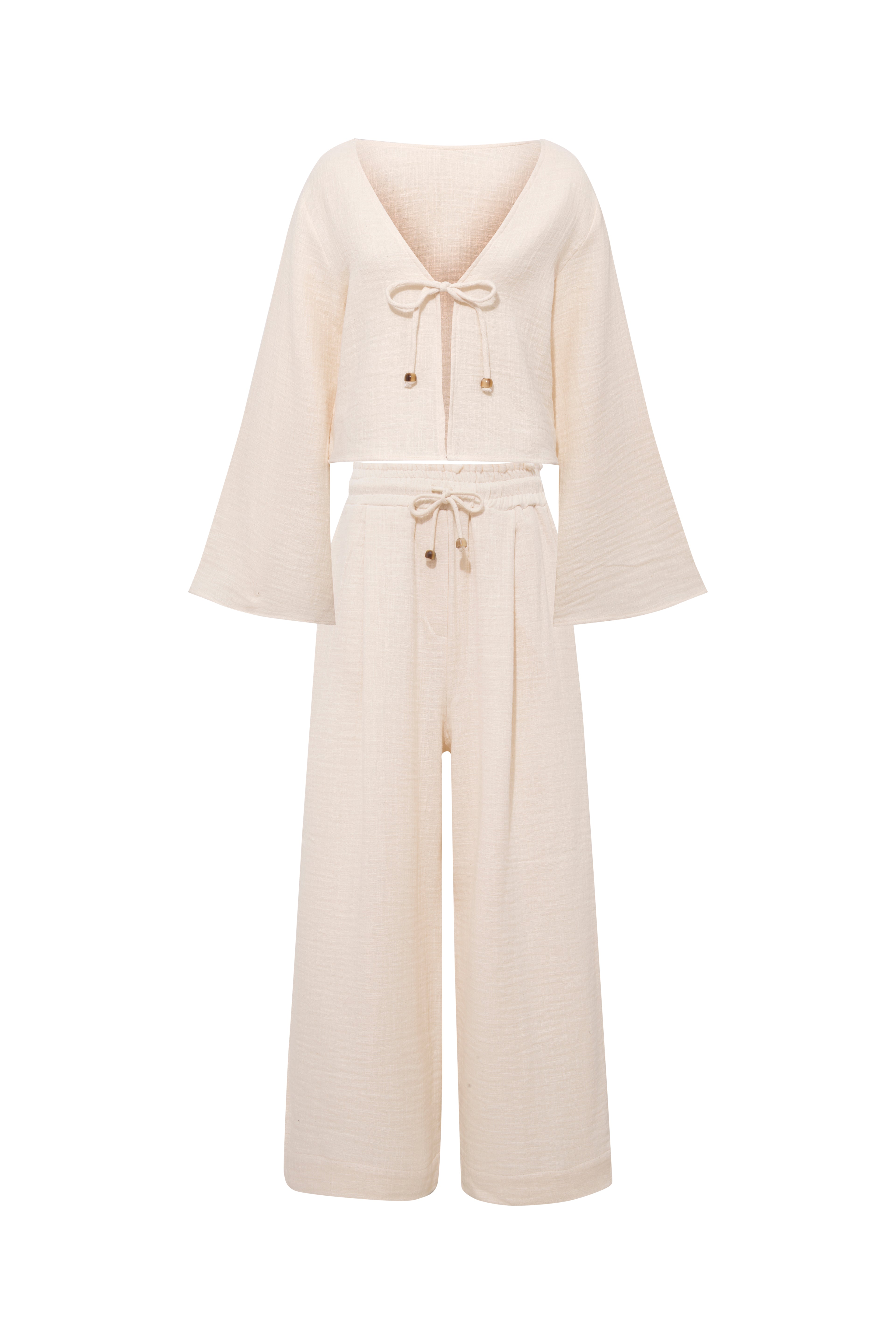 Cildi serin tutan, nefes alabilen yapısıyla yaz aylarının favorisi keten kumaş tercih edilmiştir,